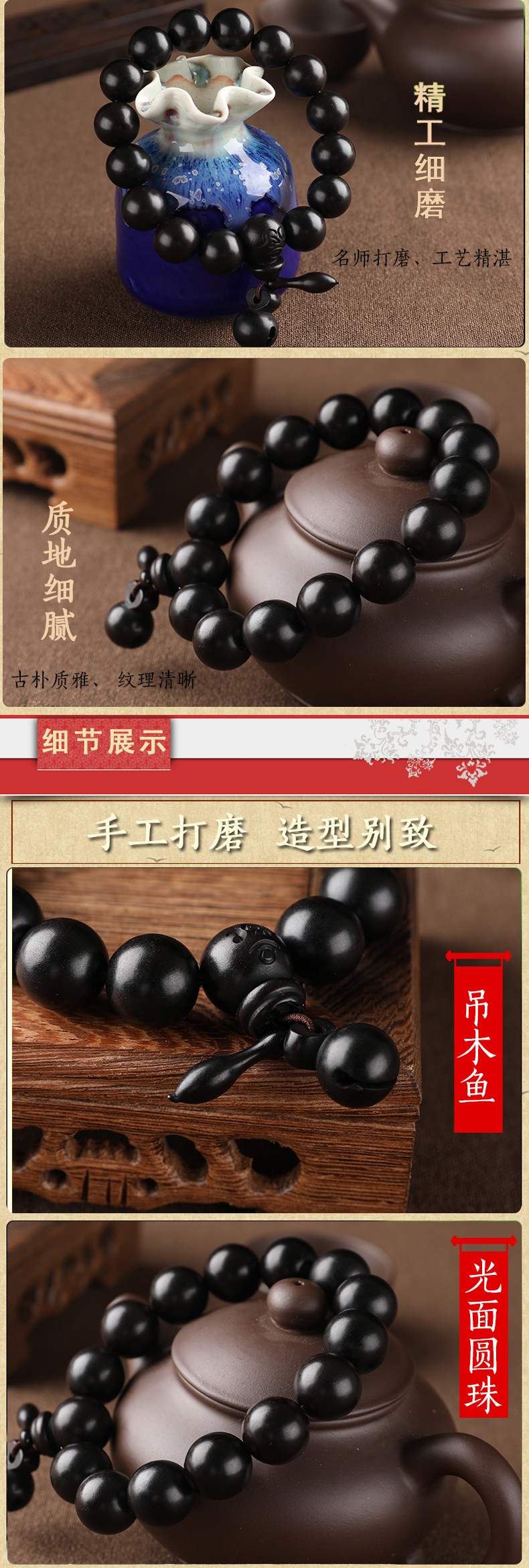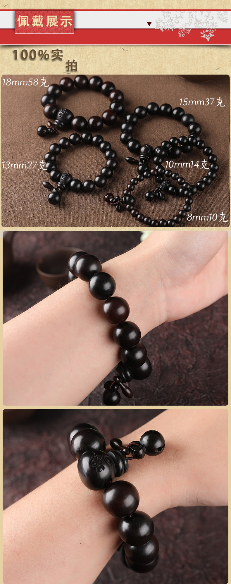 雷击枣木手串批发劈桃木雷击木文玩佛珠手链寺庙结缘礼品古风首饰