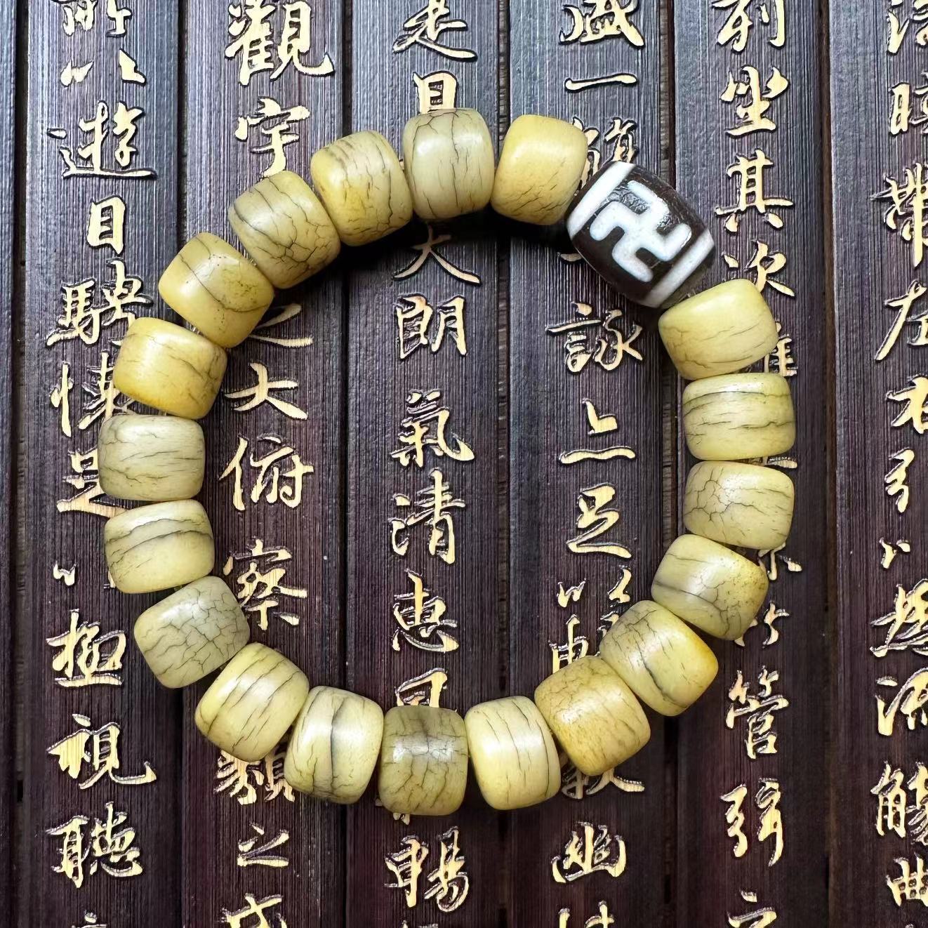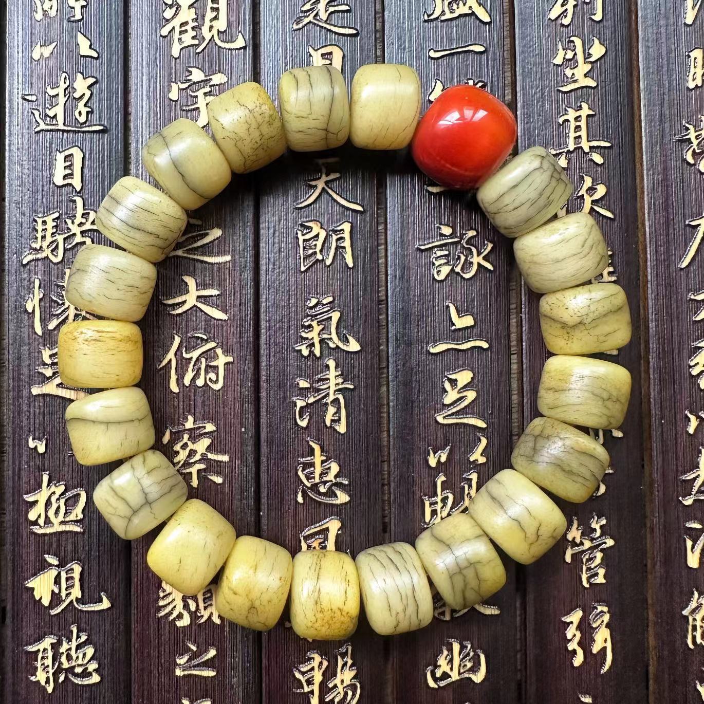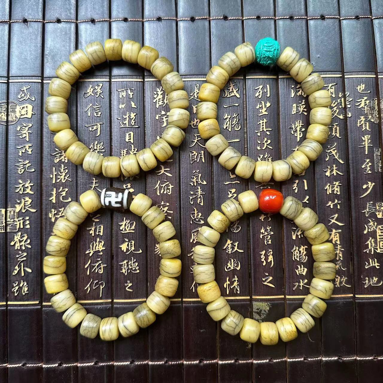 天然老骆驼骨手串桶珠藏式牦牛骨佛珠文玩手串男天珠玛瑙直播货源
