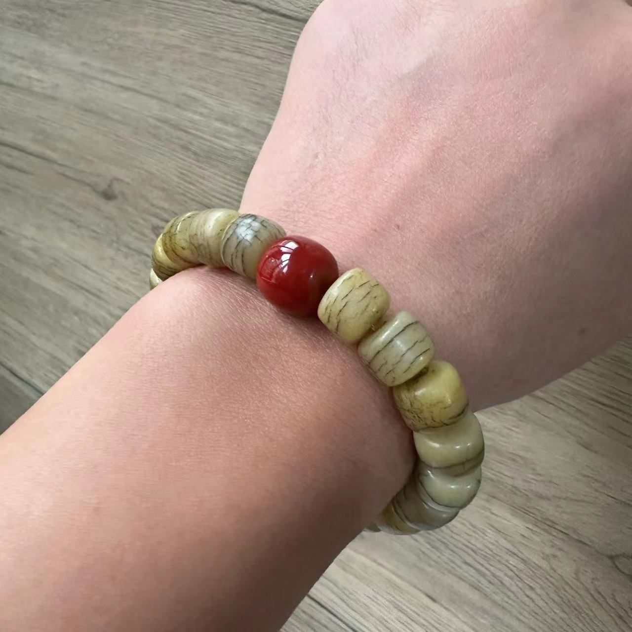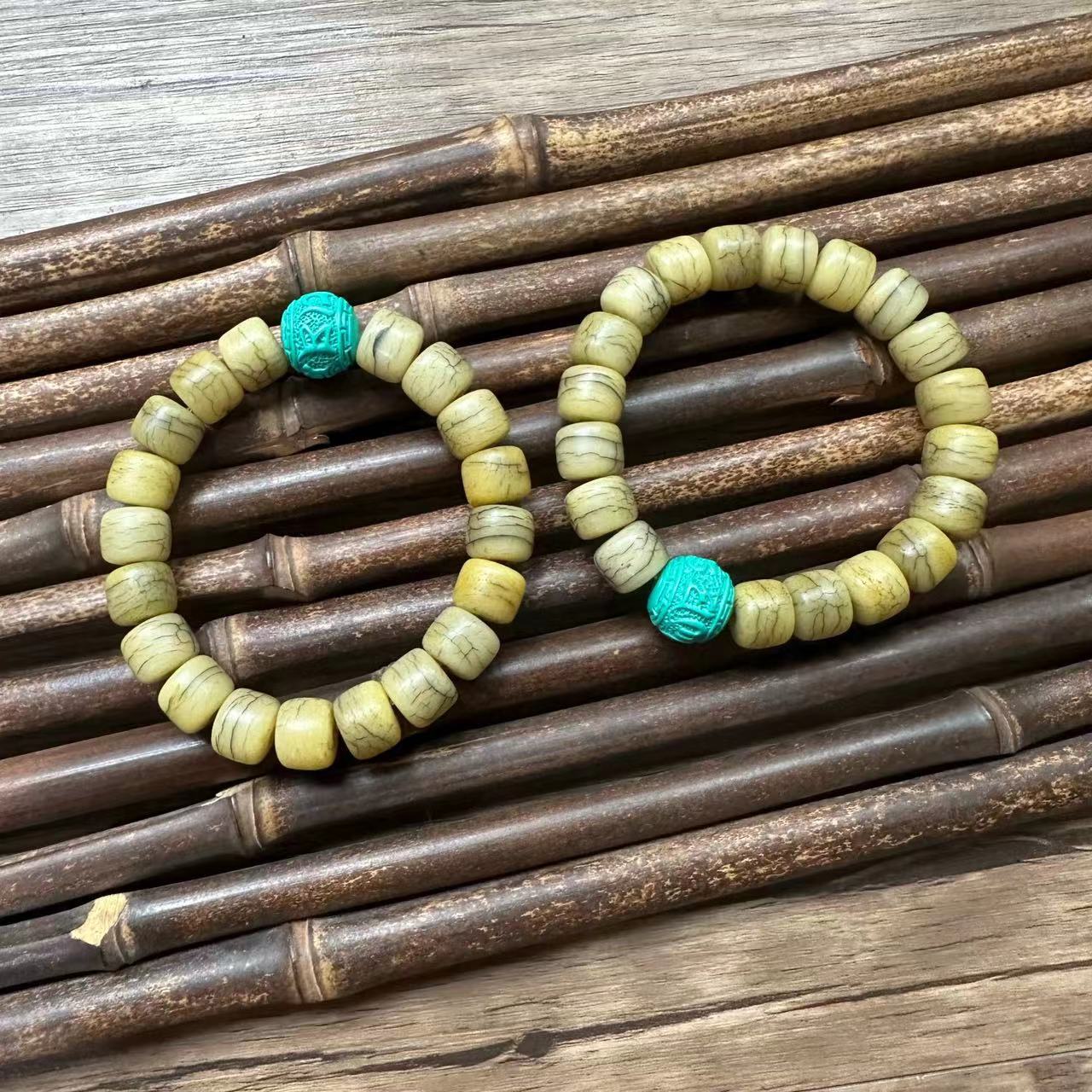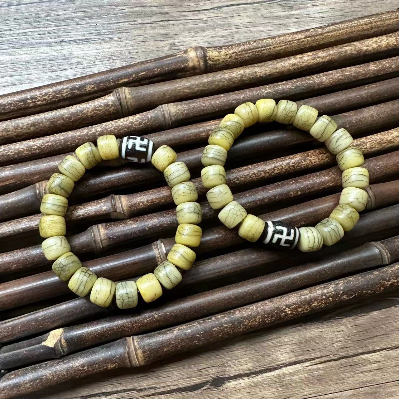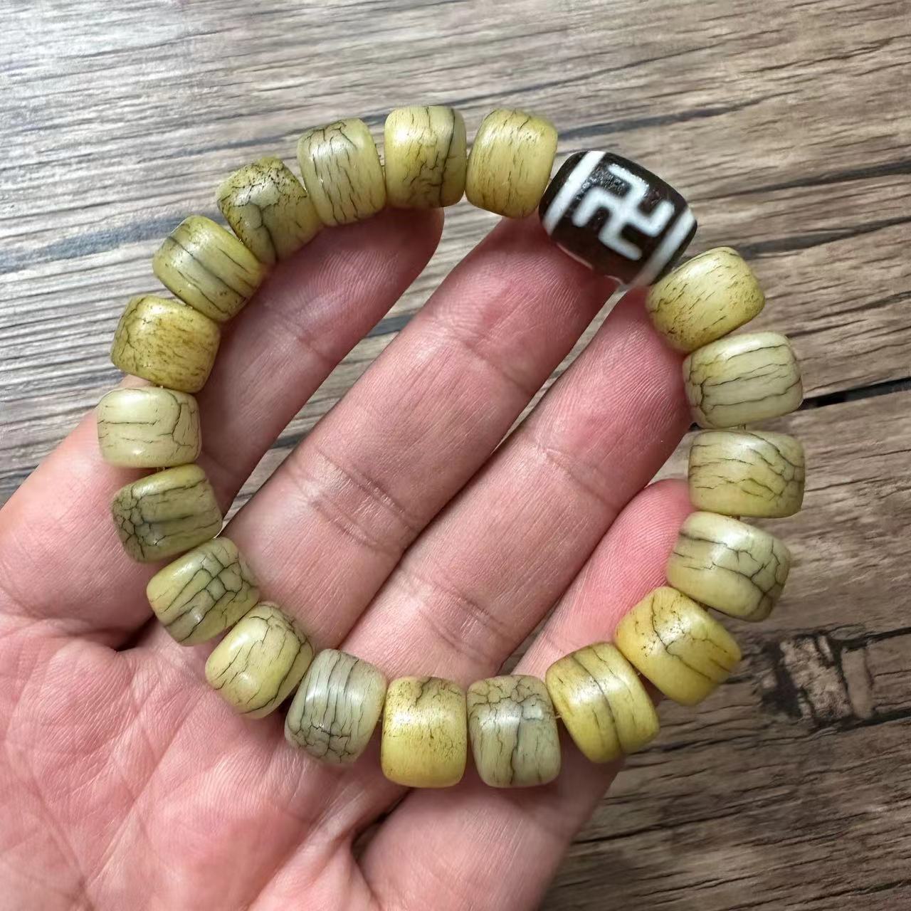 天然老骆驼骨手串桶珠藏式牦牛骨佛珠文玩手串男天珠玛瑙直播货源
