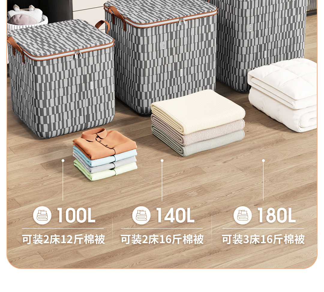 棉被收纳袋大容量装被子衣服整理袋可折叠灰条纹加厚布艺收纳袋