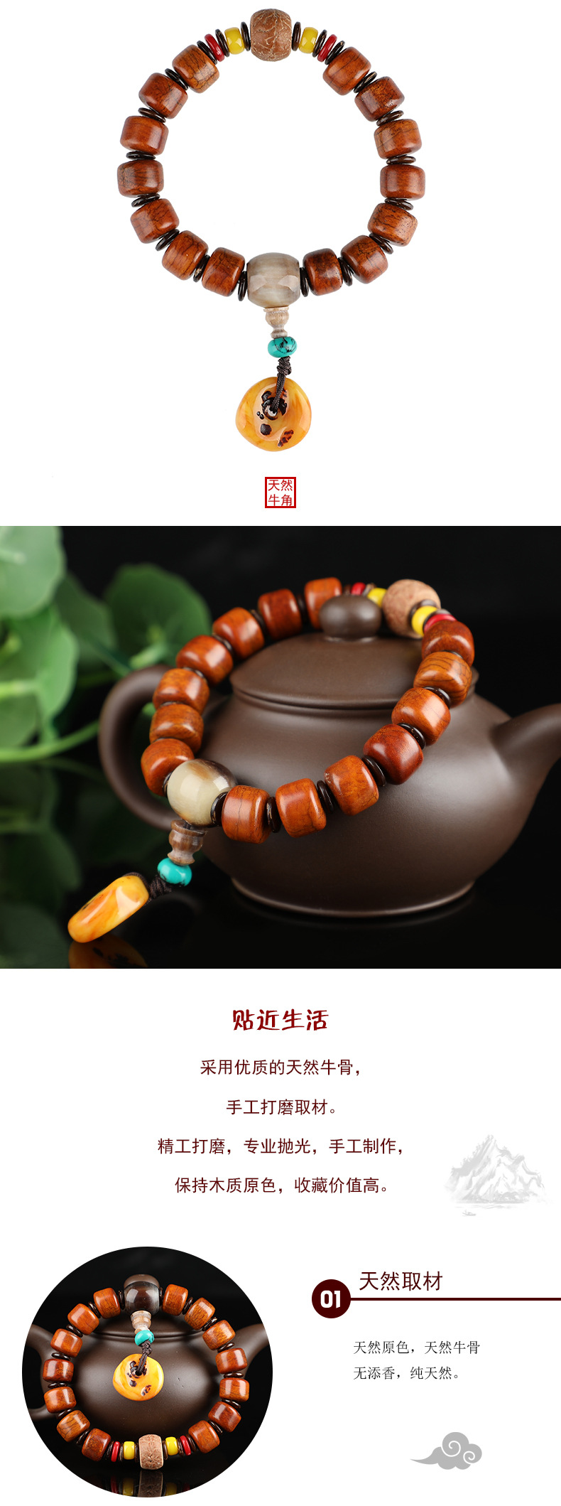 藏式牦牛骨手串西藏驼骨佛珠天然做旧骨质手链批发文玩民族风饰品