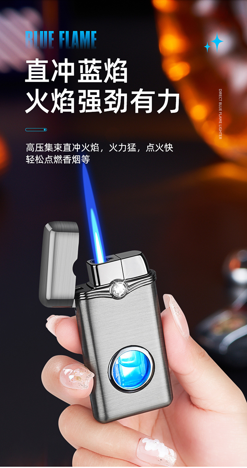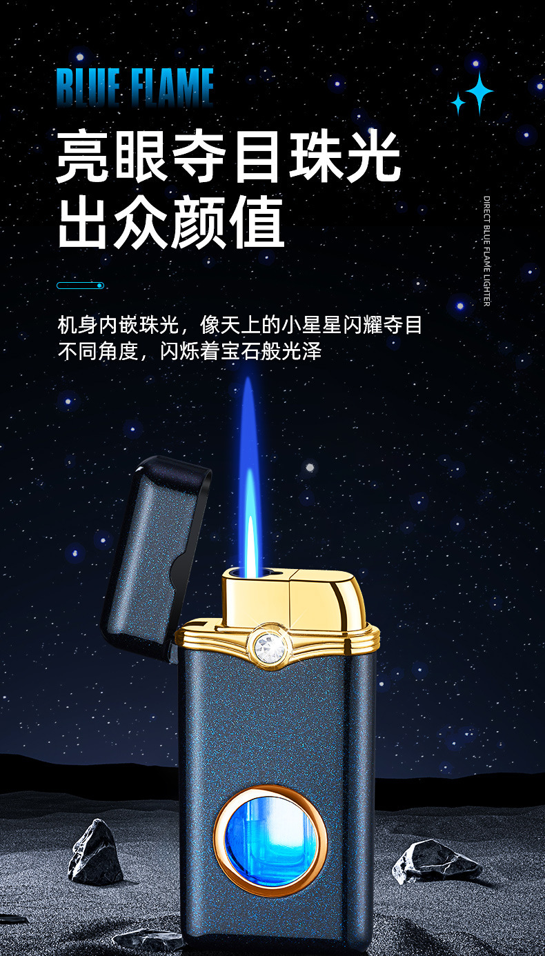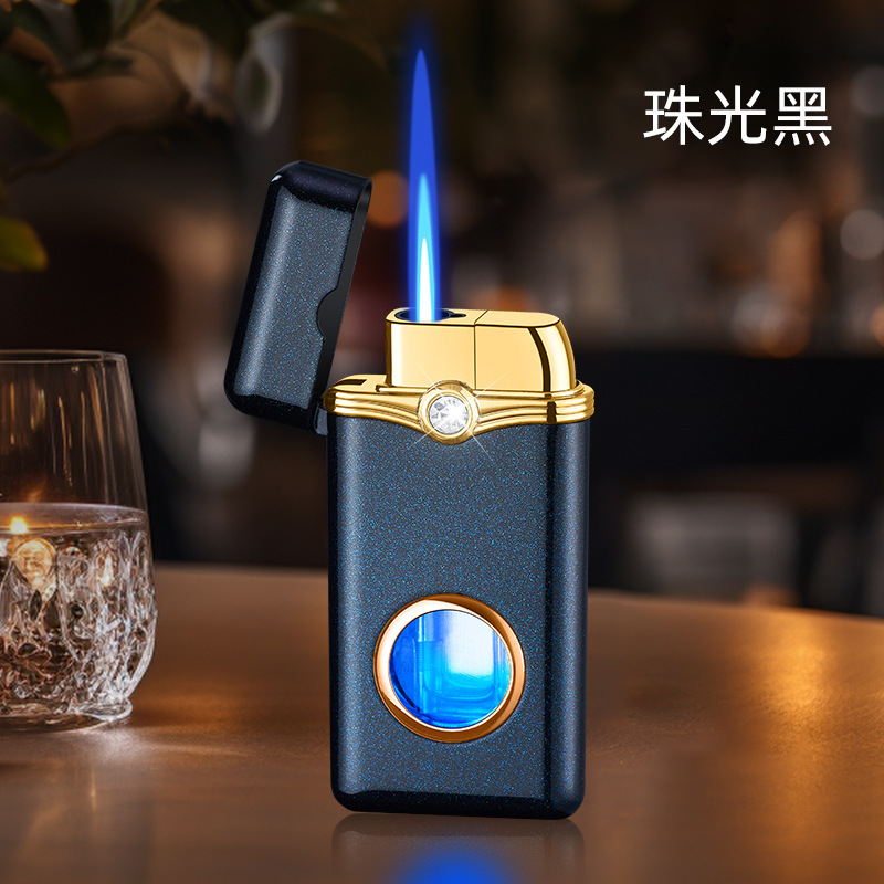 金属可视气窗充气防风直冲打火机家用雪茄男士点火器跨境