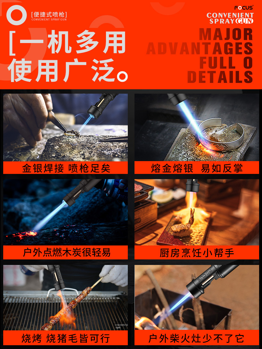 抖音爆款手持大火力焊枪蓝焰充气防风创意打火机高温喷枪家用便携