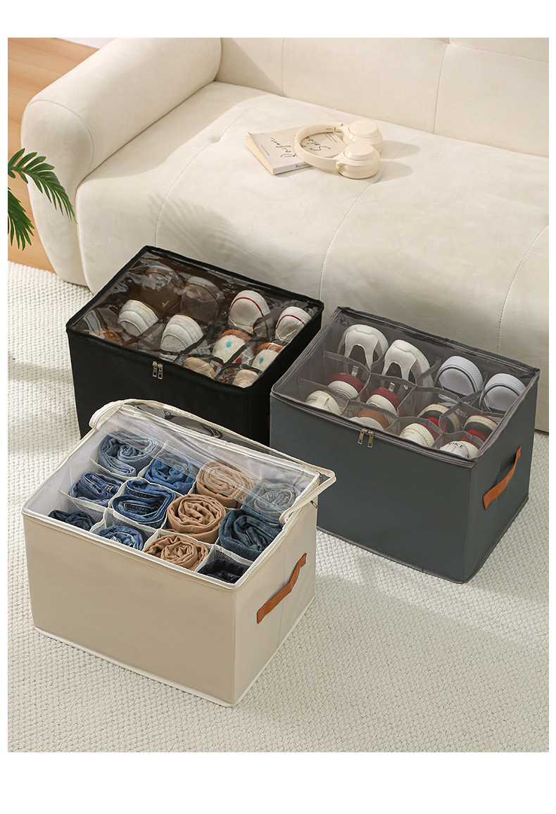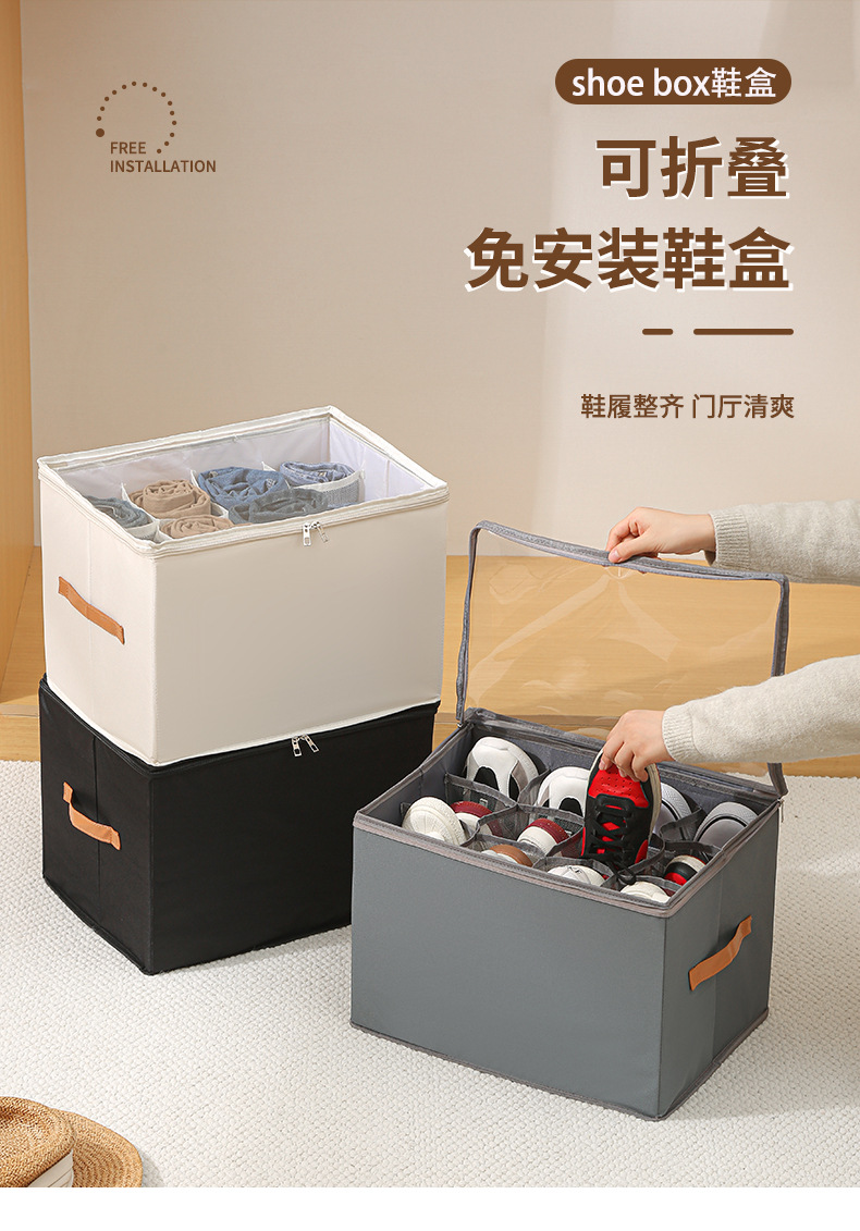 带盖鞋盒家用牛津布分格潮鞋收纳箱衣柜可折叠防尘鞋子收纳盒