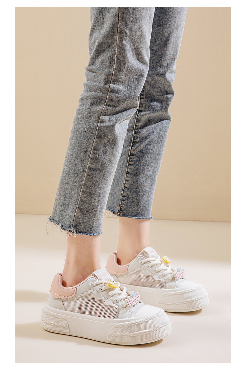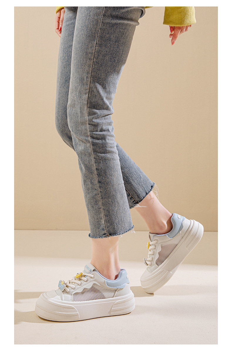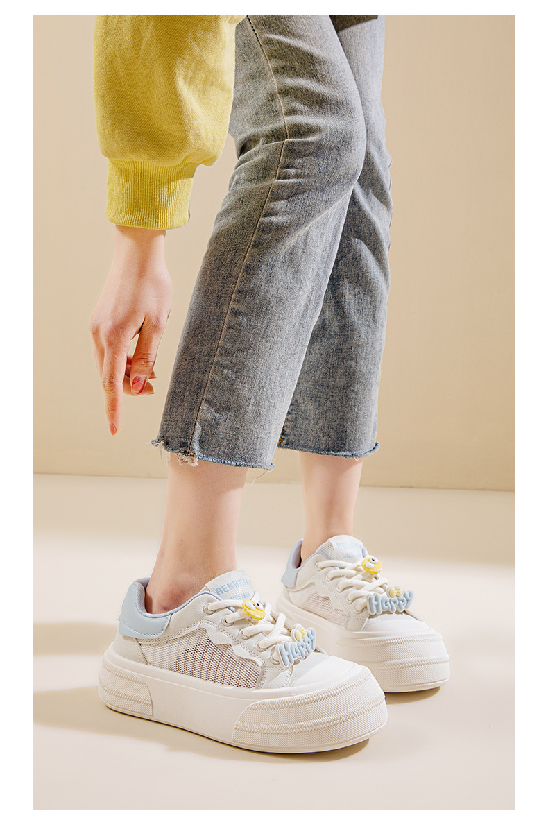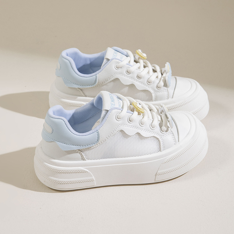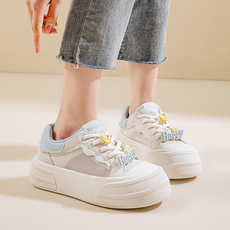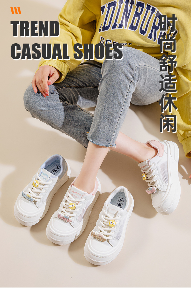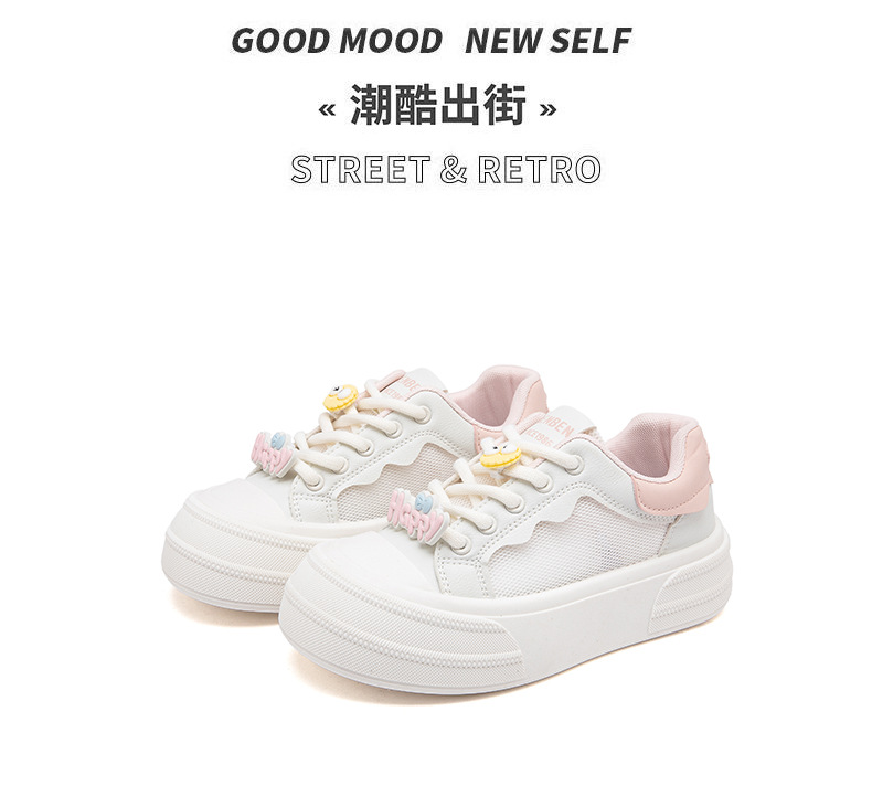 夏季网面透气大头小白鞋女2025新款爆款百搭休闲运动鞋厚底板鞋潮
