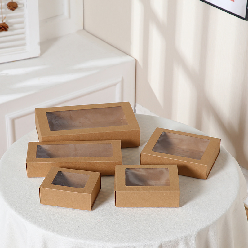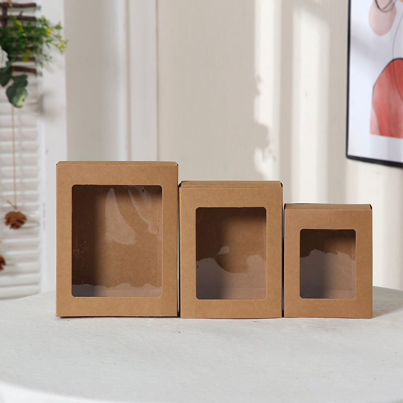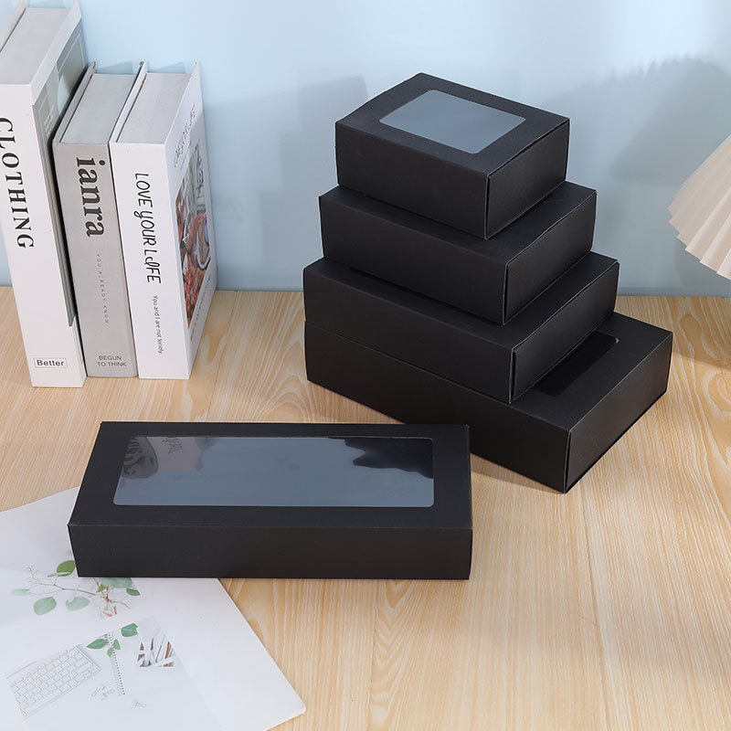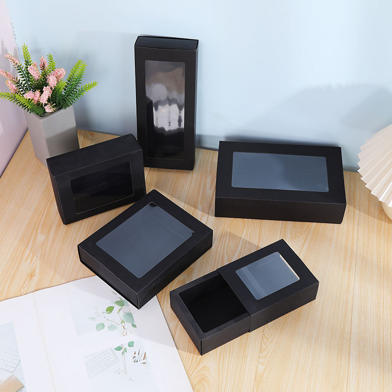 亚马逊开窗抽屉盒节日礼品包装袋抽拉式礼品盒简约纯色牛皮纸盒子