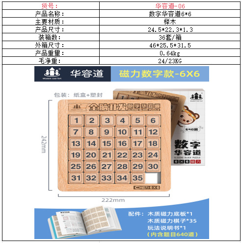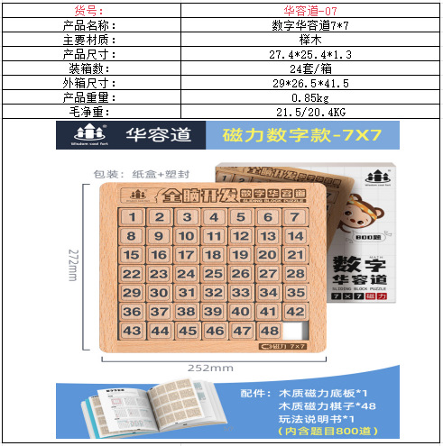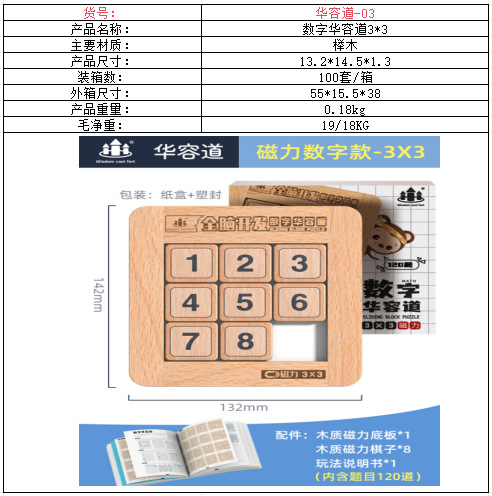 儿童木制积木磁力数字华容道小学生儿童成人拼图木质益智玩具批发