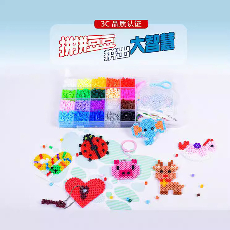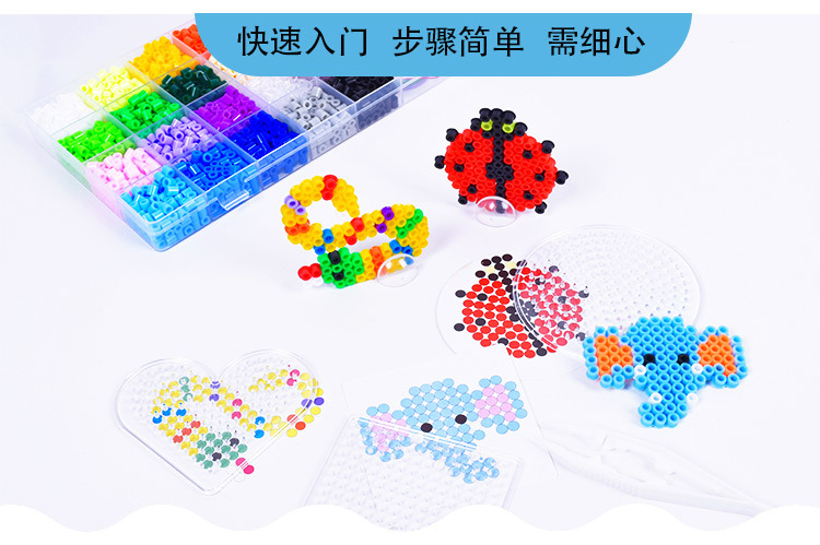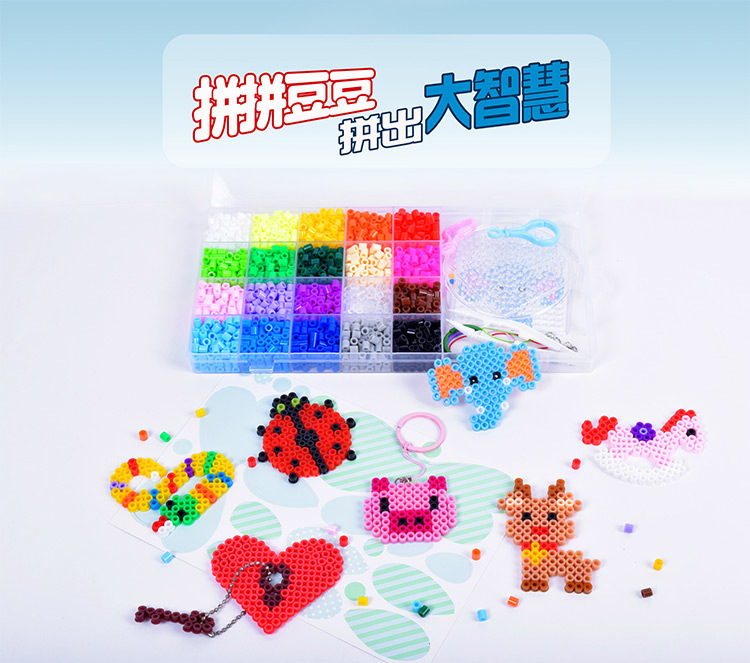 拼豆豆5mm手工DIY套装2000粒材料拼豆益智力玩具拼图拼板融合豆