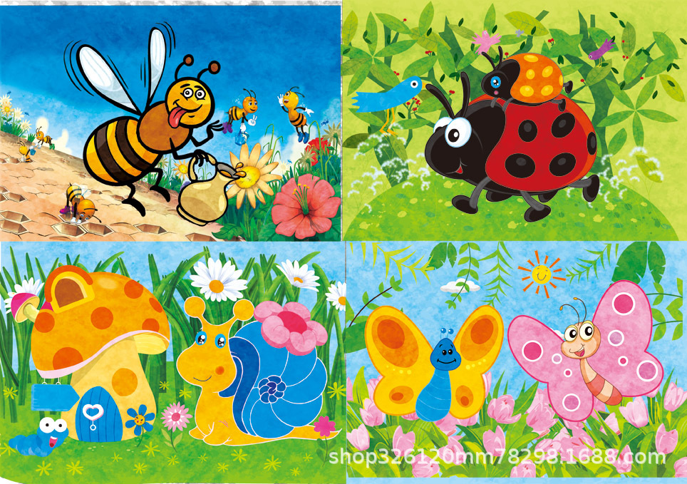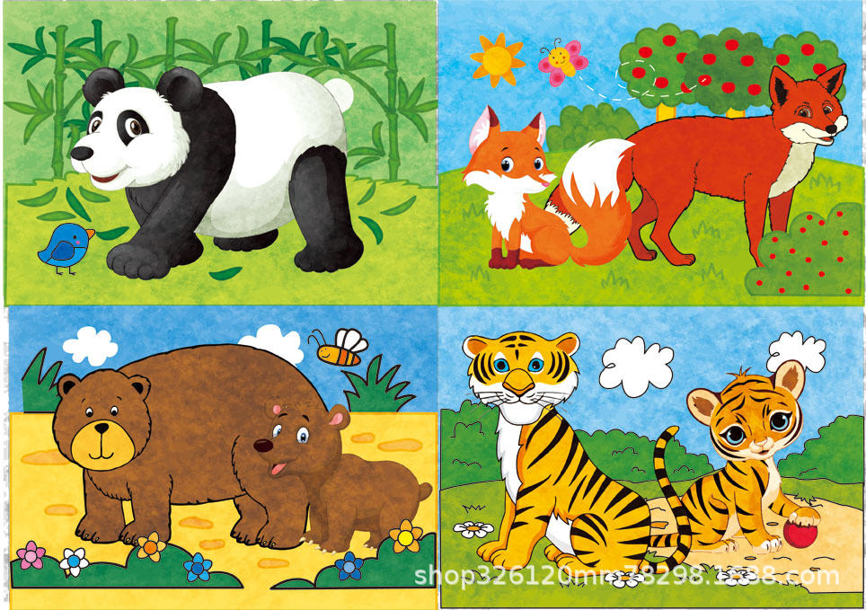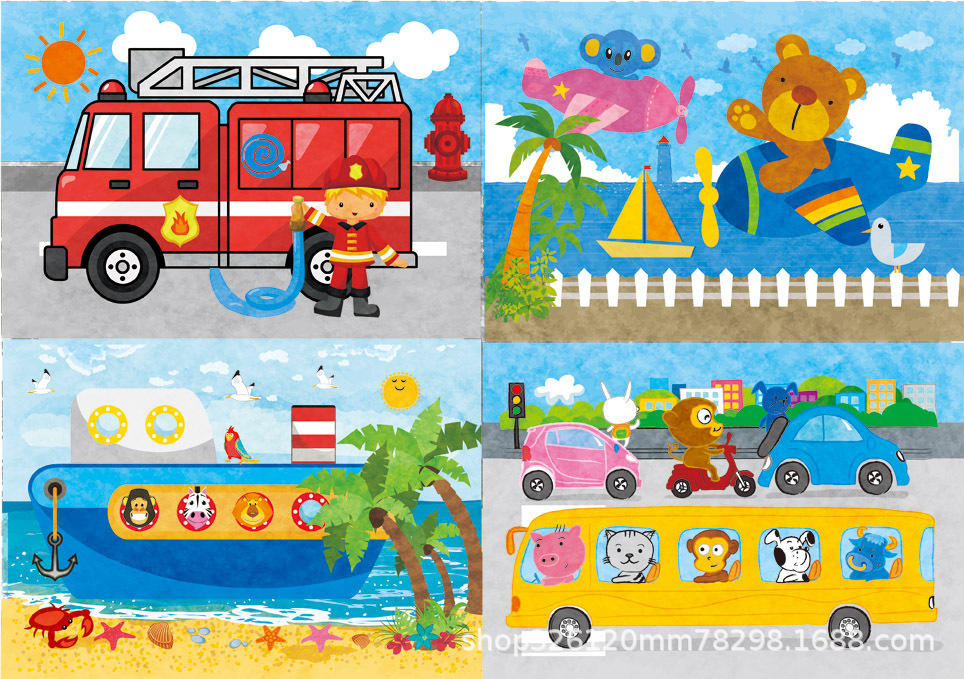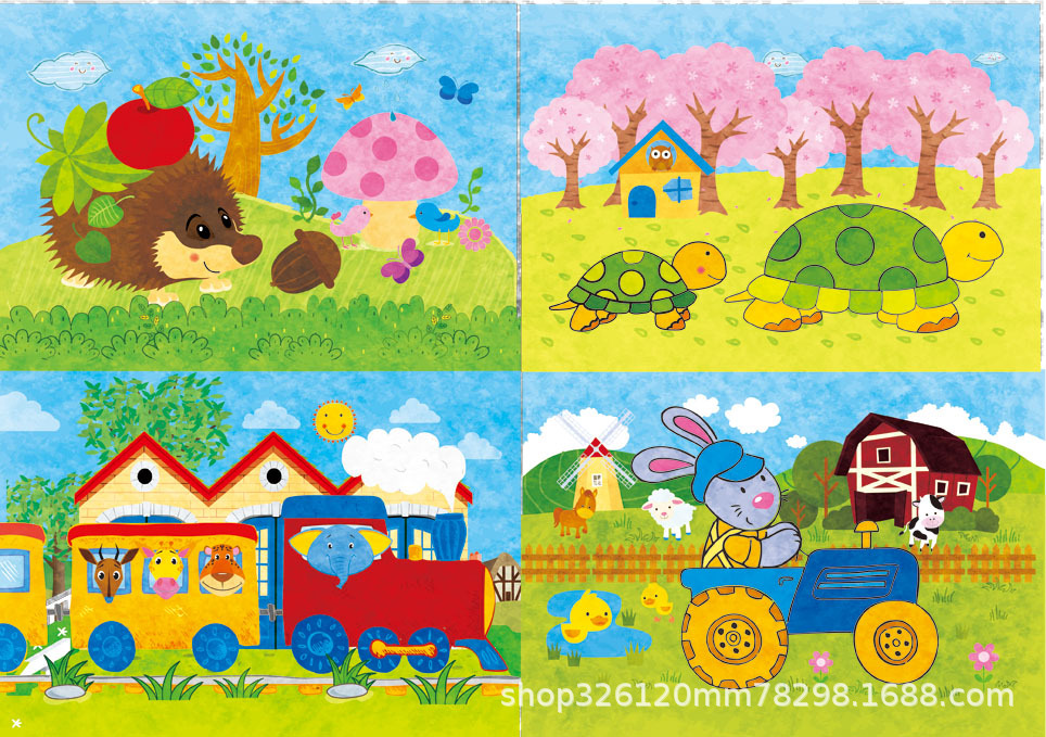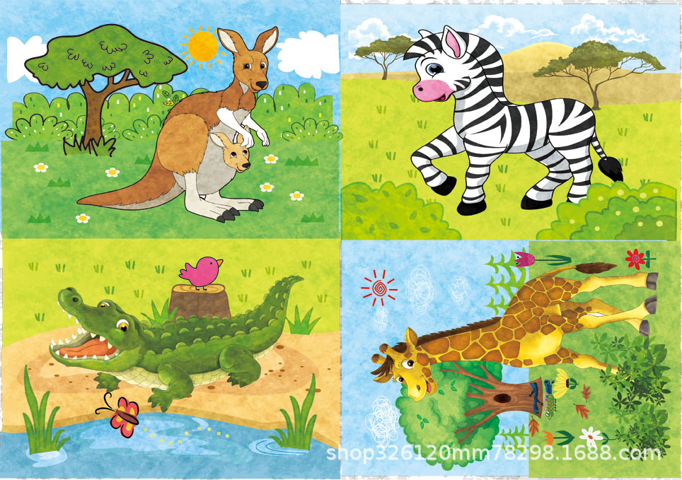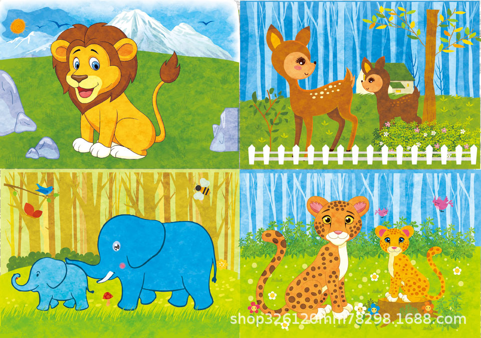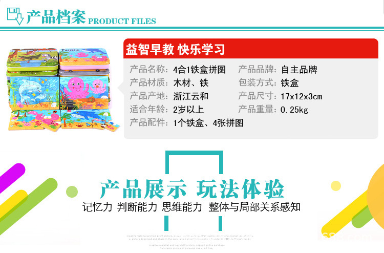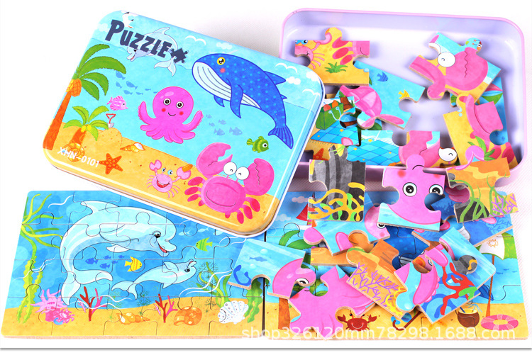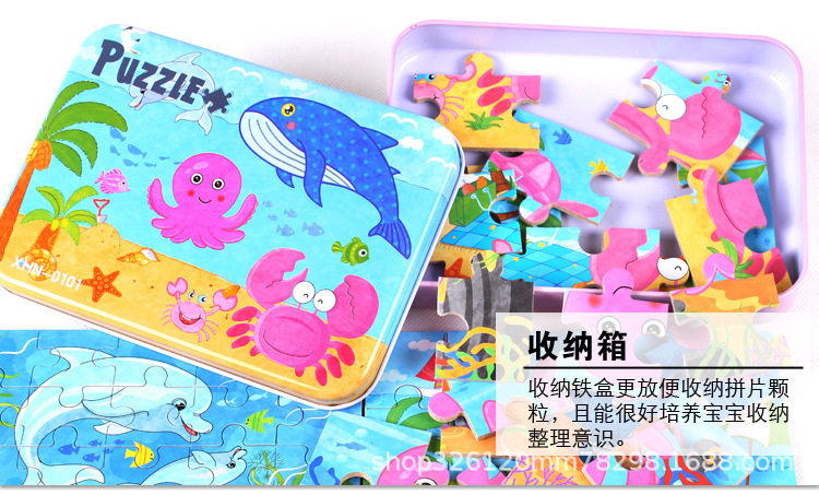 儿童铁盒拼图四合一幼儿园宝宝益智启蒙早教木制平面拼图拼板玩具