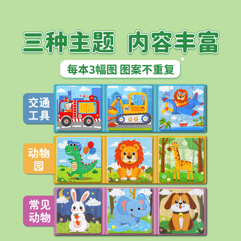 儿童磁力拼图3到6岁汽车宝宝0-3益智磁性平图幼儿园早教玩具拼板