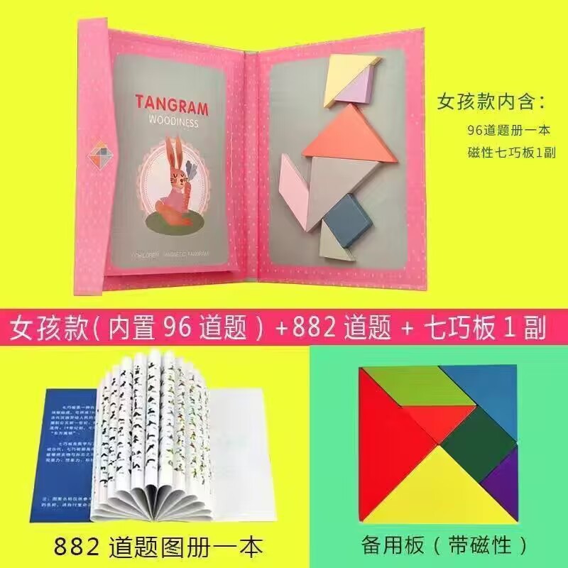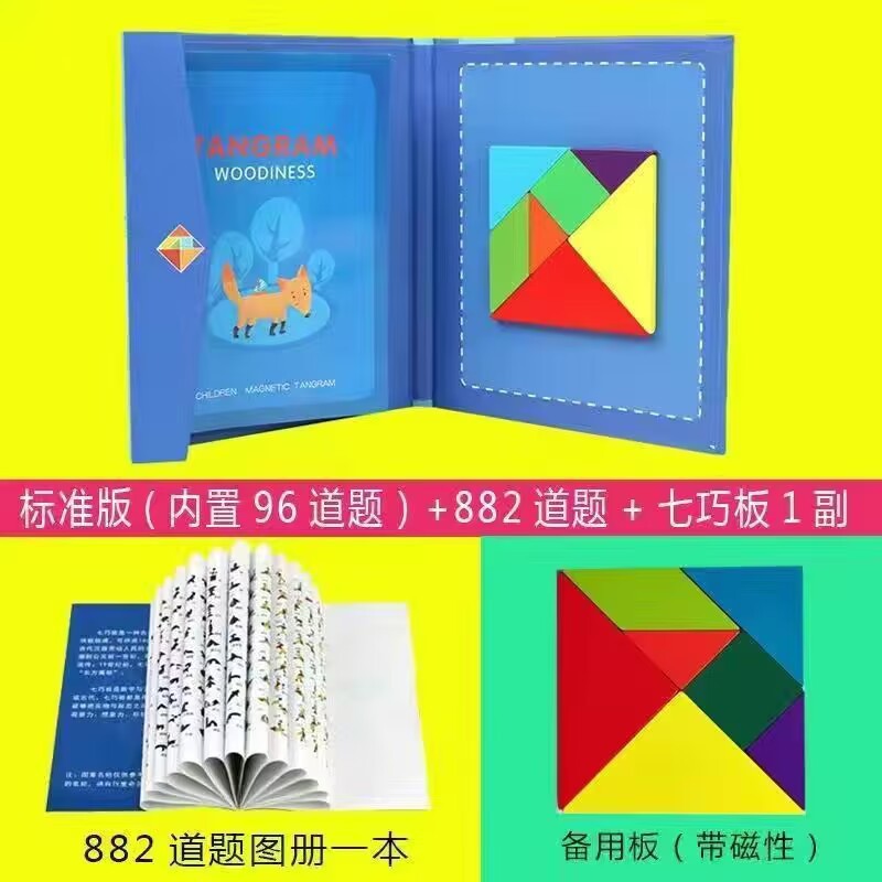 磁性七巧板儿童小学生拼图一年级七彩拼板木制玩具幼儿园早教益智