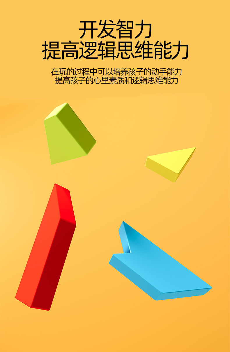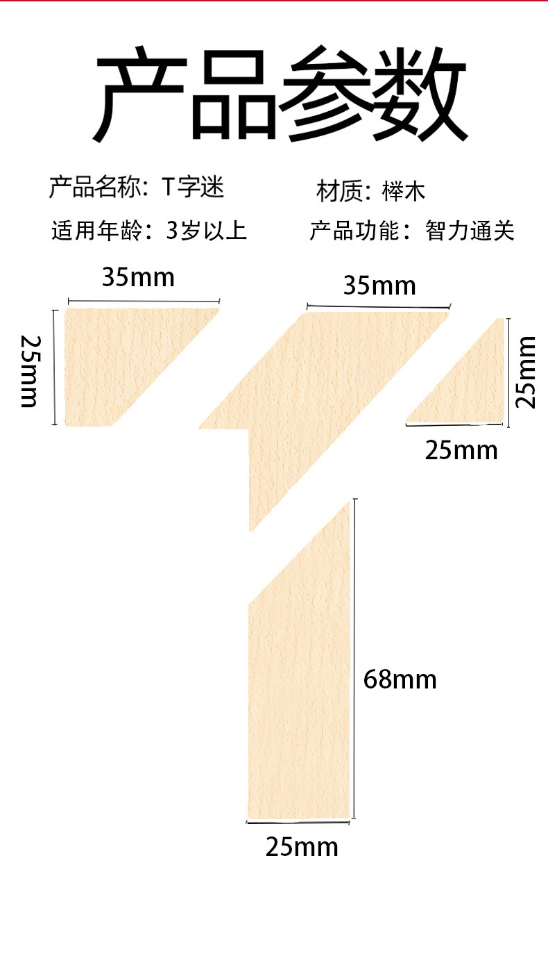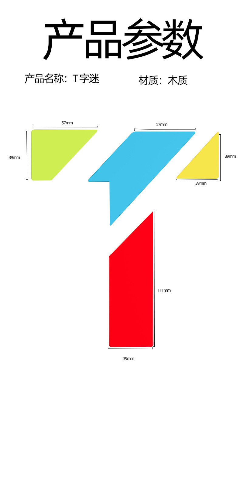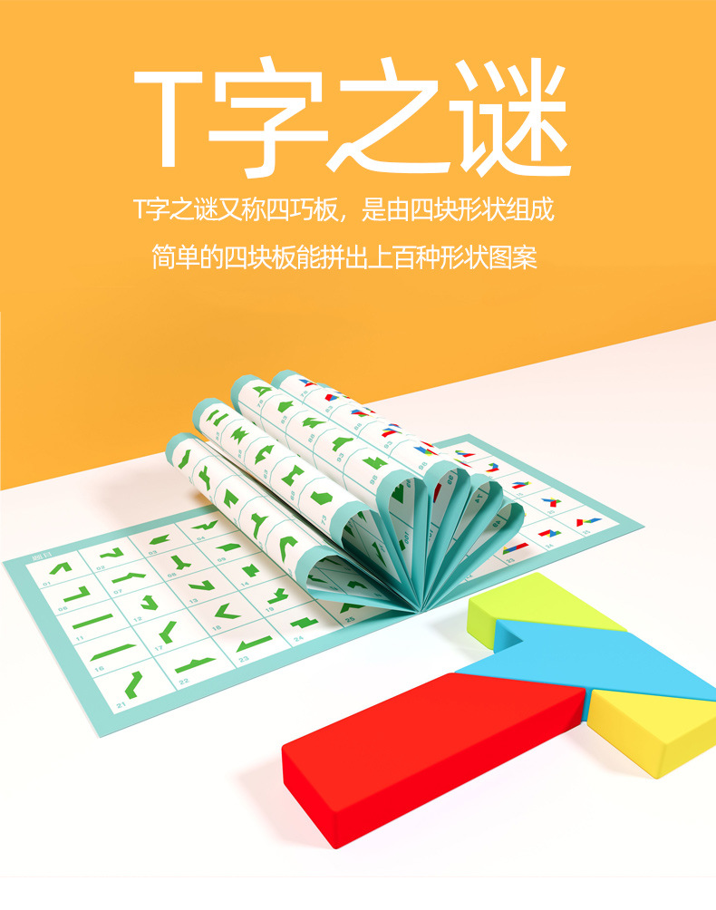 木制百变T字之谜拼图记忆早教益智古典玩具礼物四巧板小学生专用