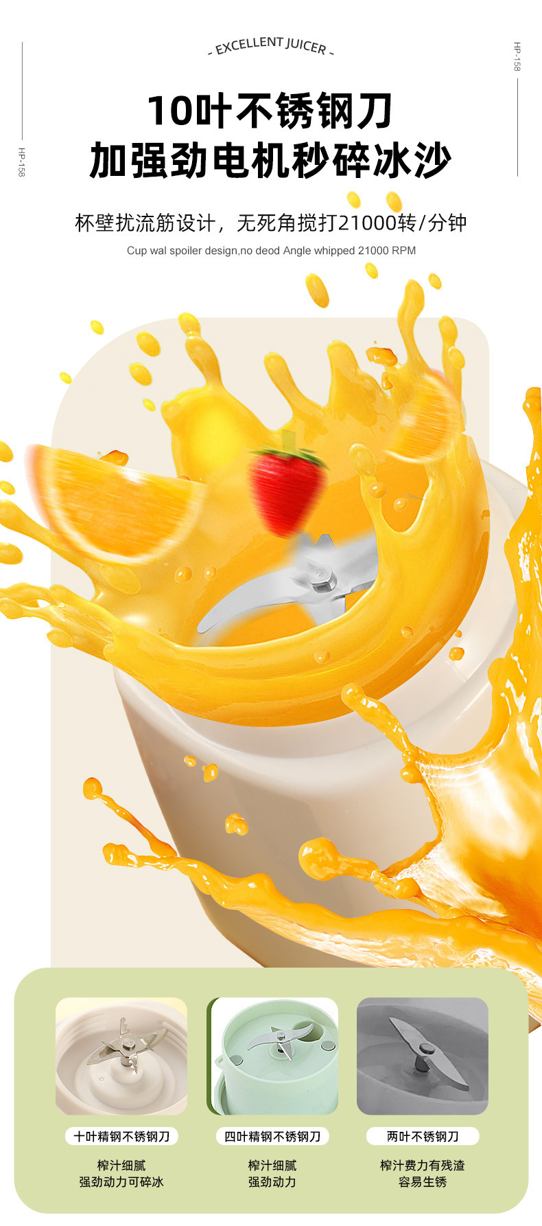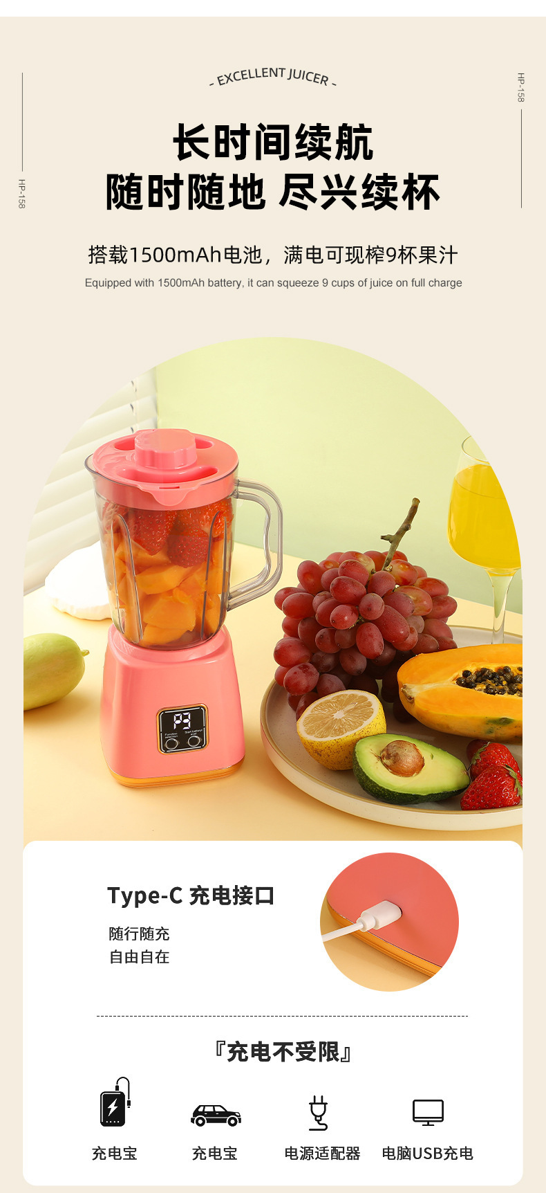 跨境新款充电榨汁机家用多功能料理机辅食搅拌机果汁机果蔬料理机