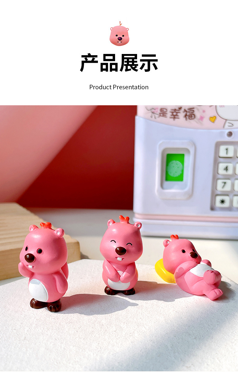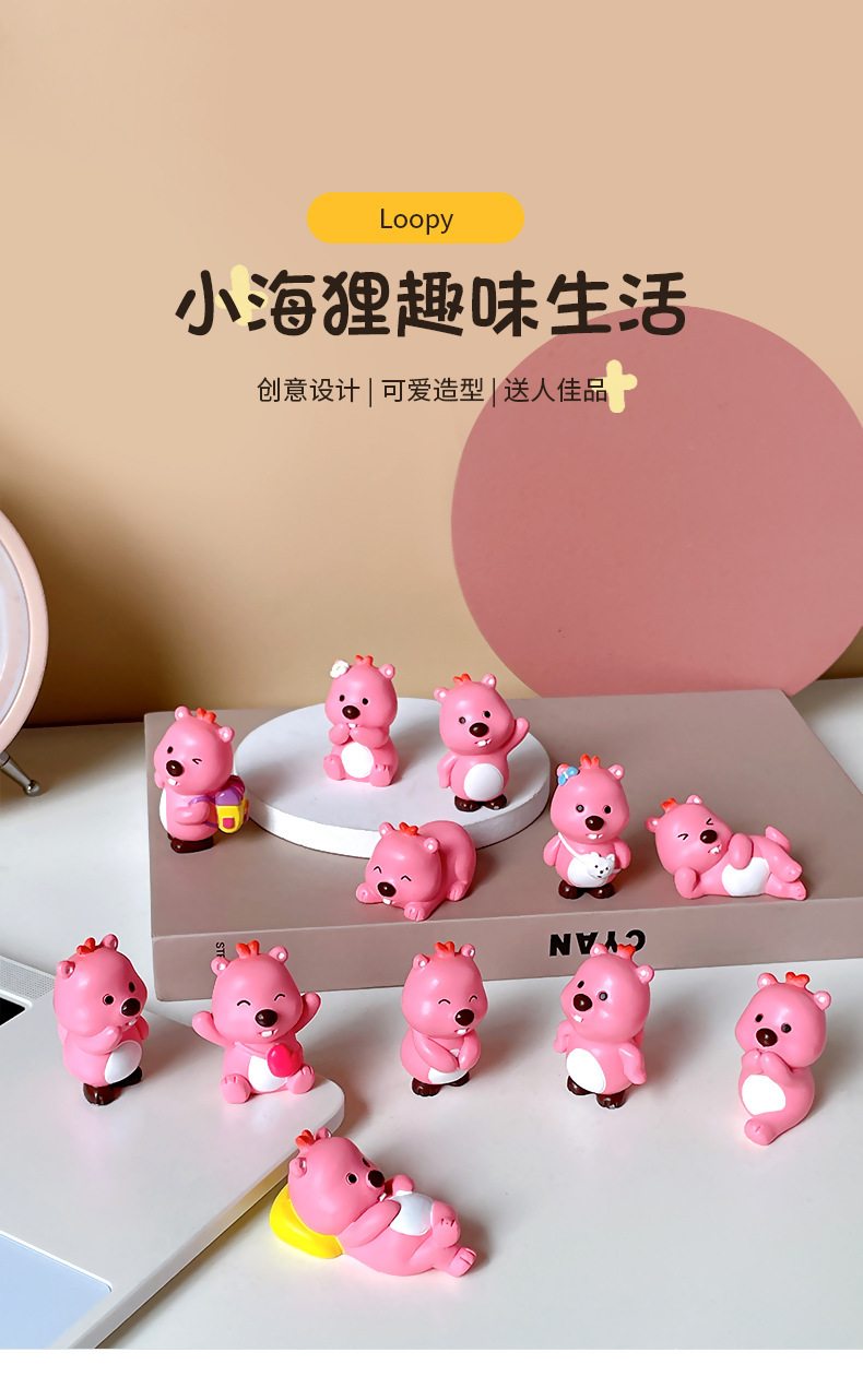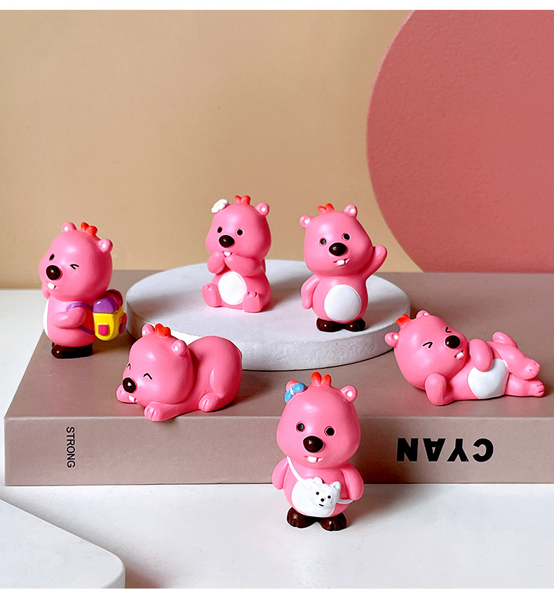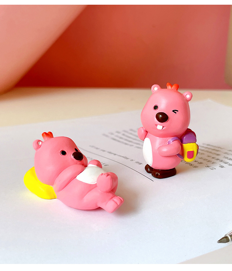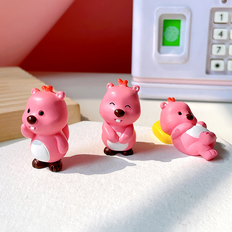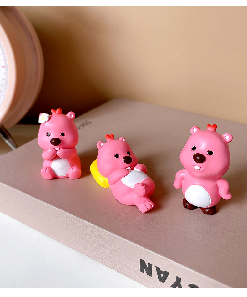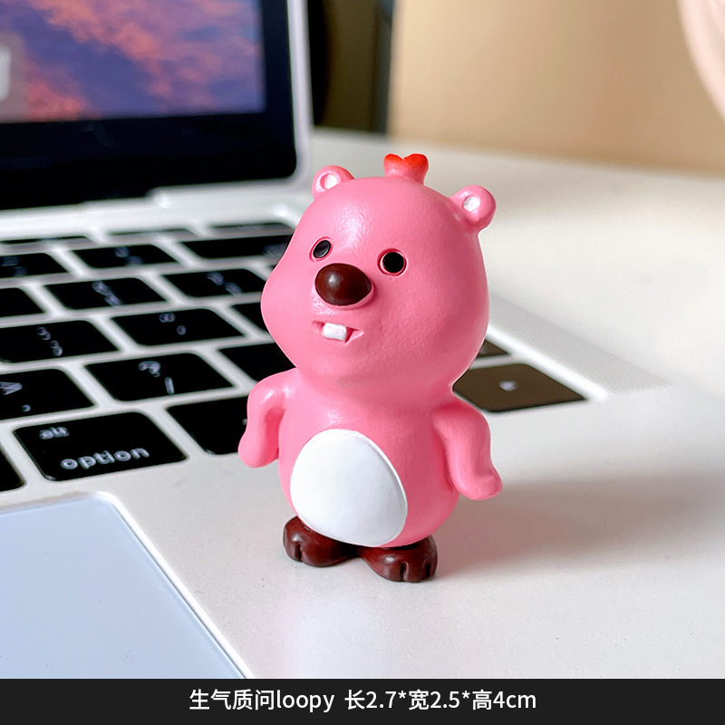 小海狸摆件露比风家居装饰潮玩办公室萌粒蛋糕车载桌面树脂小摆件
