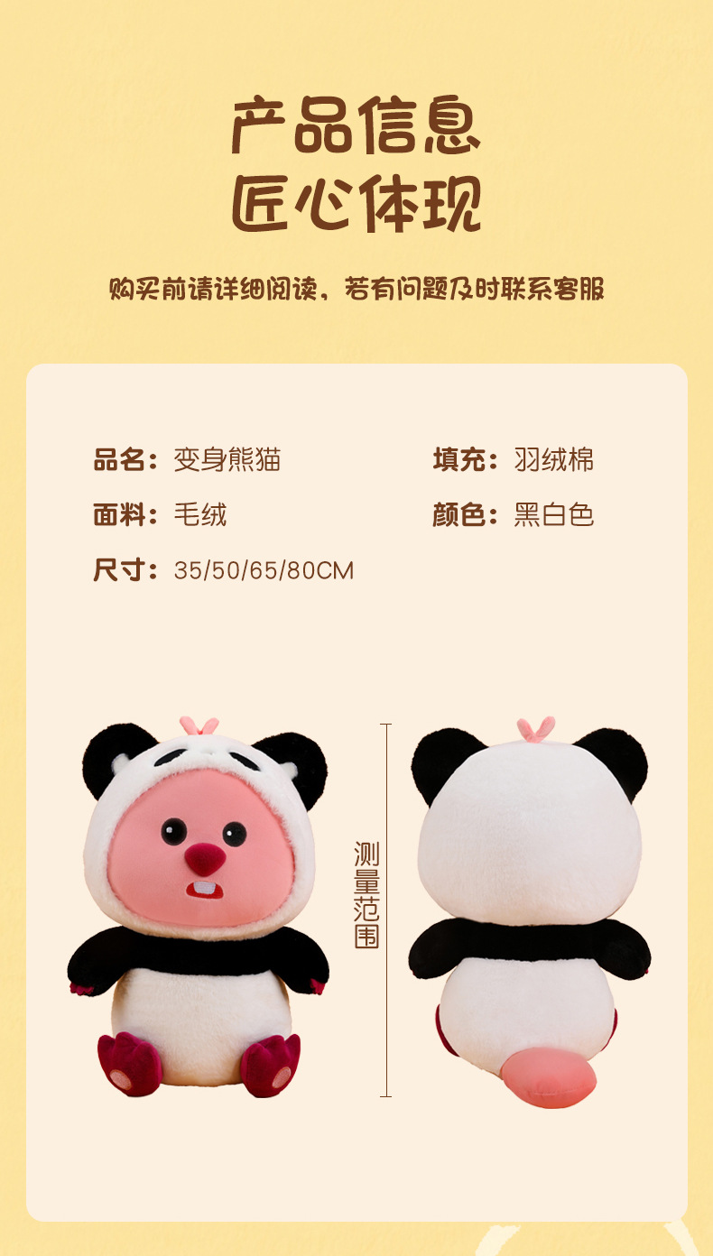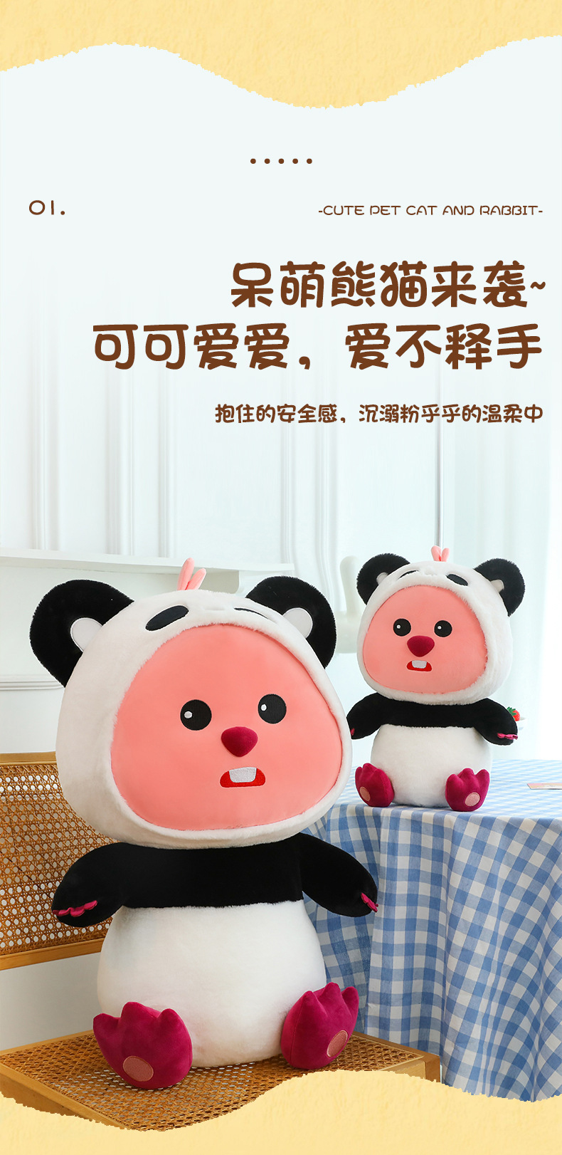 新款熊猫变身卢比公仔陪睡娃娃毛绒玩具卡通玩偶女孩礼物厂家批发
