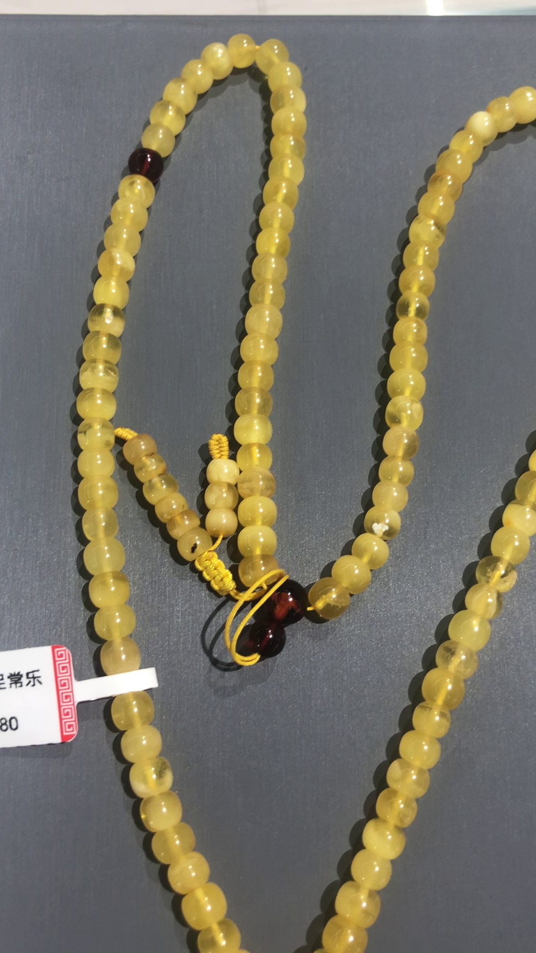 俄罗斯老矿蜜蜡鸡油黄挂饰精美项链“知足常乐”