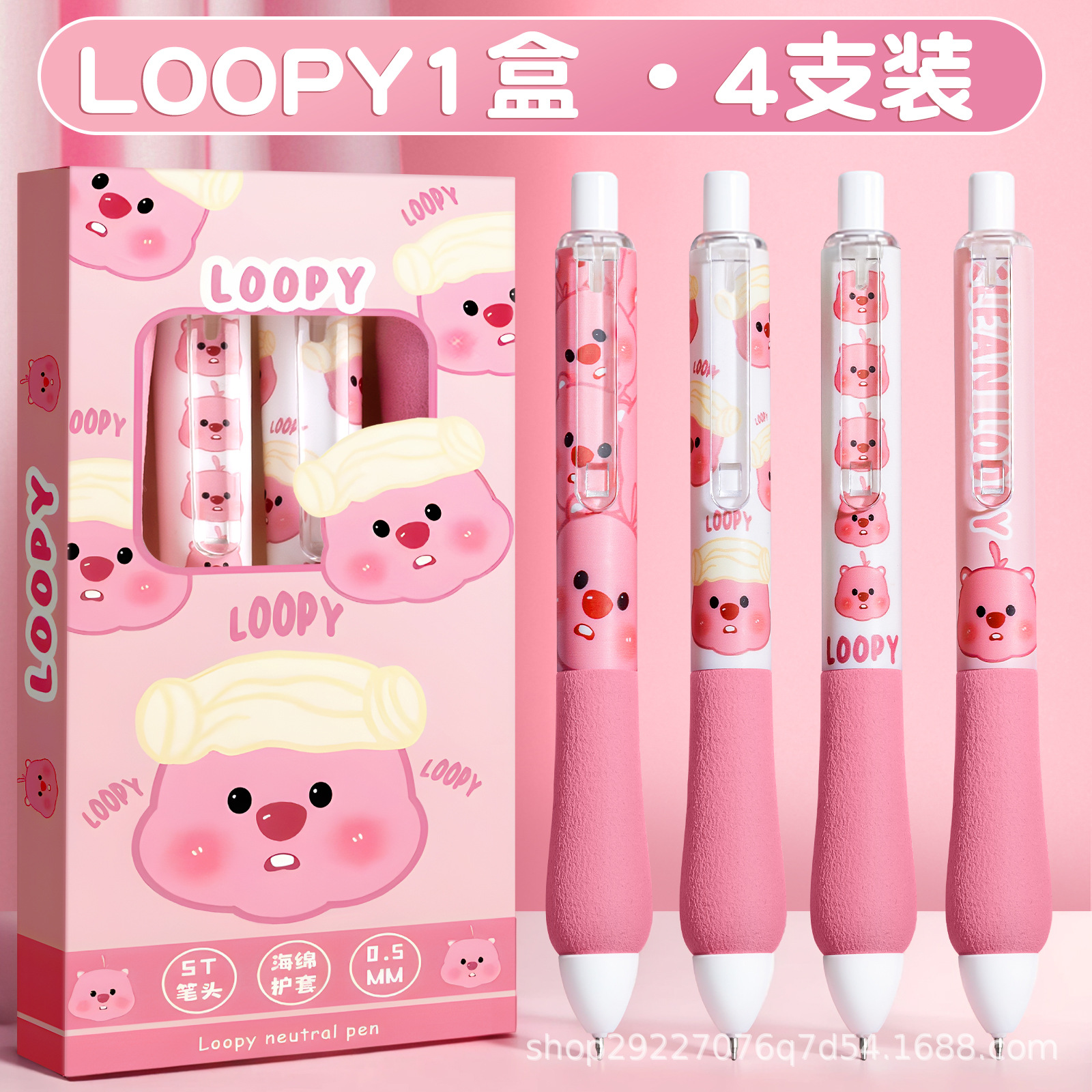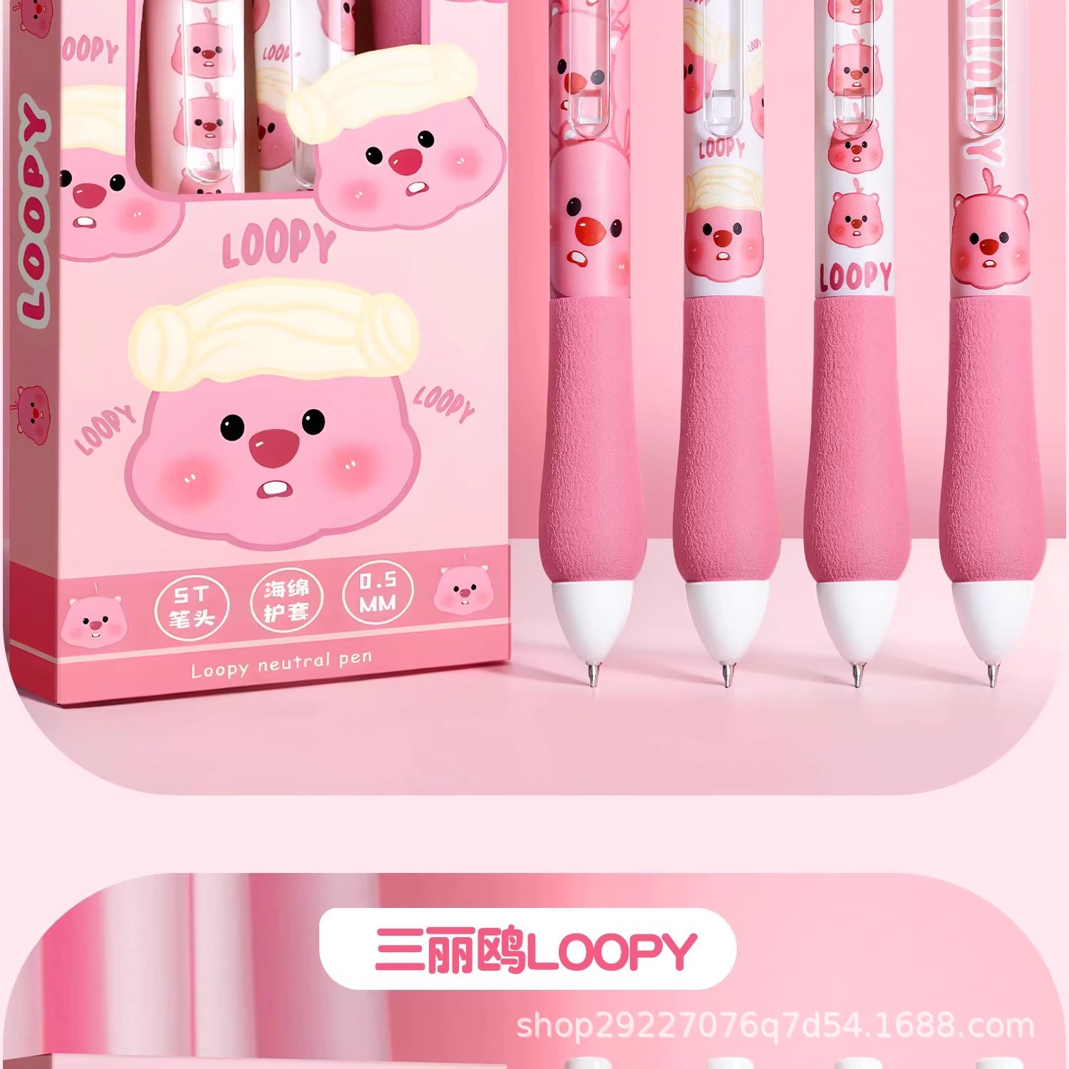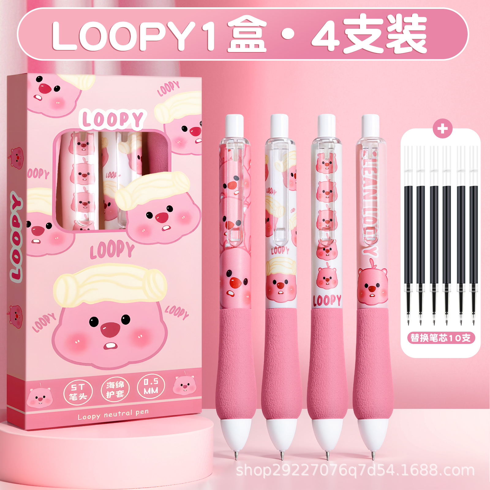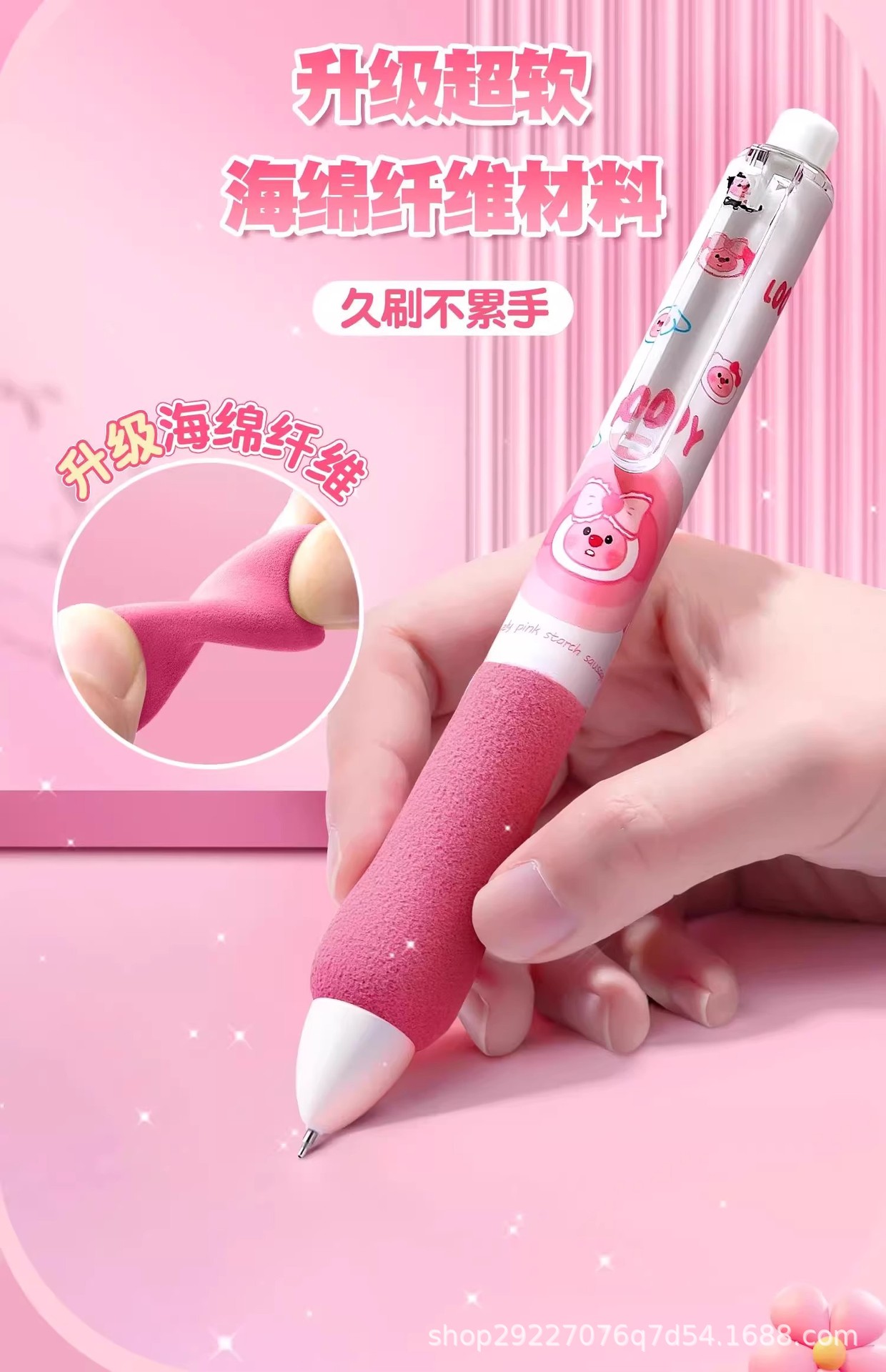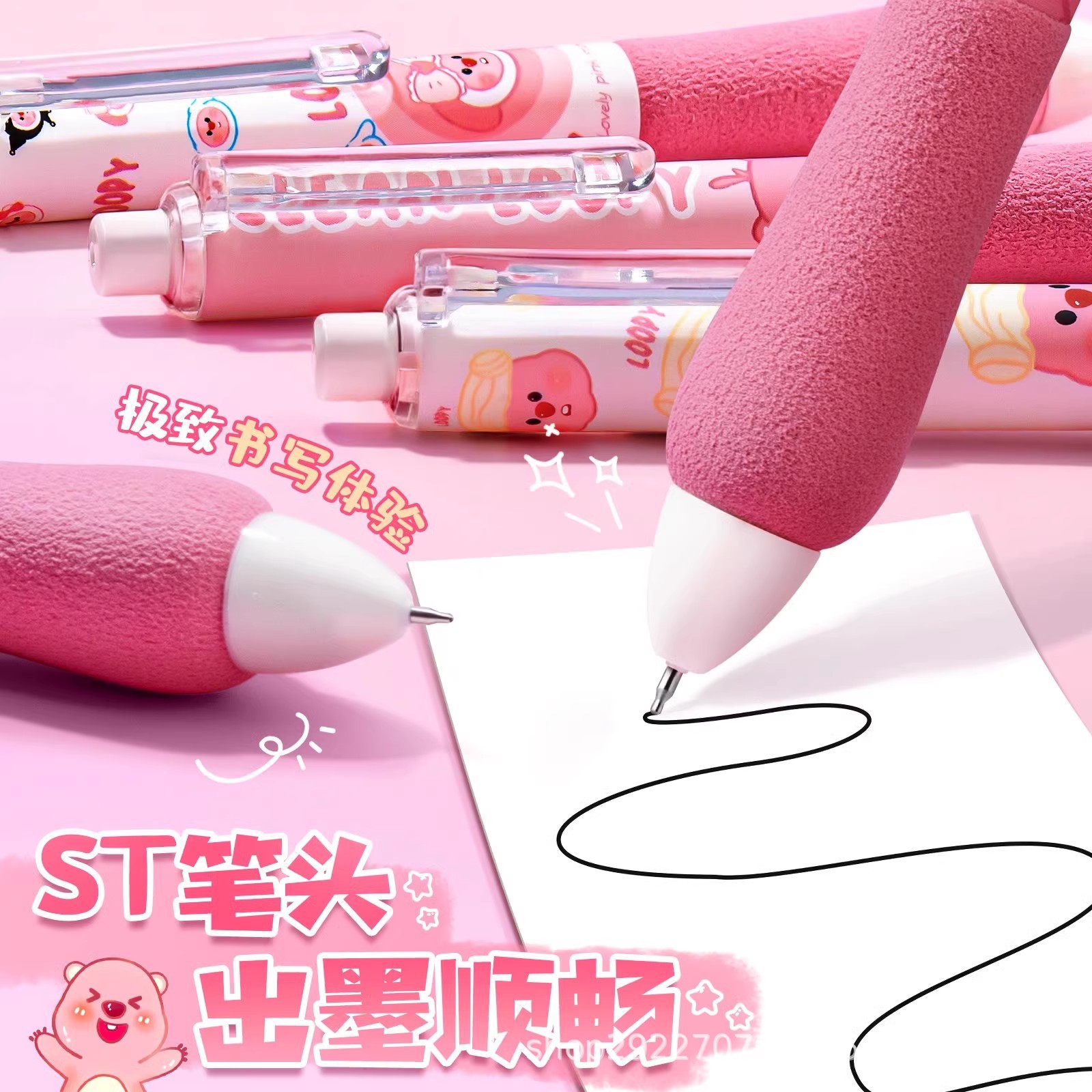 爆款LOOPY露比中性笔ST速干黑色按动笔 高颜值海绵软握学生刷题笔