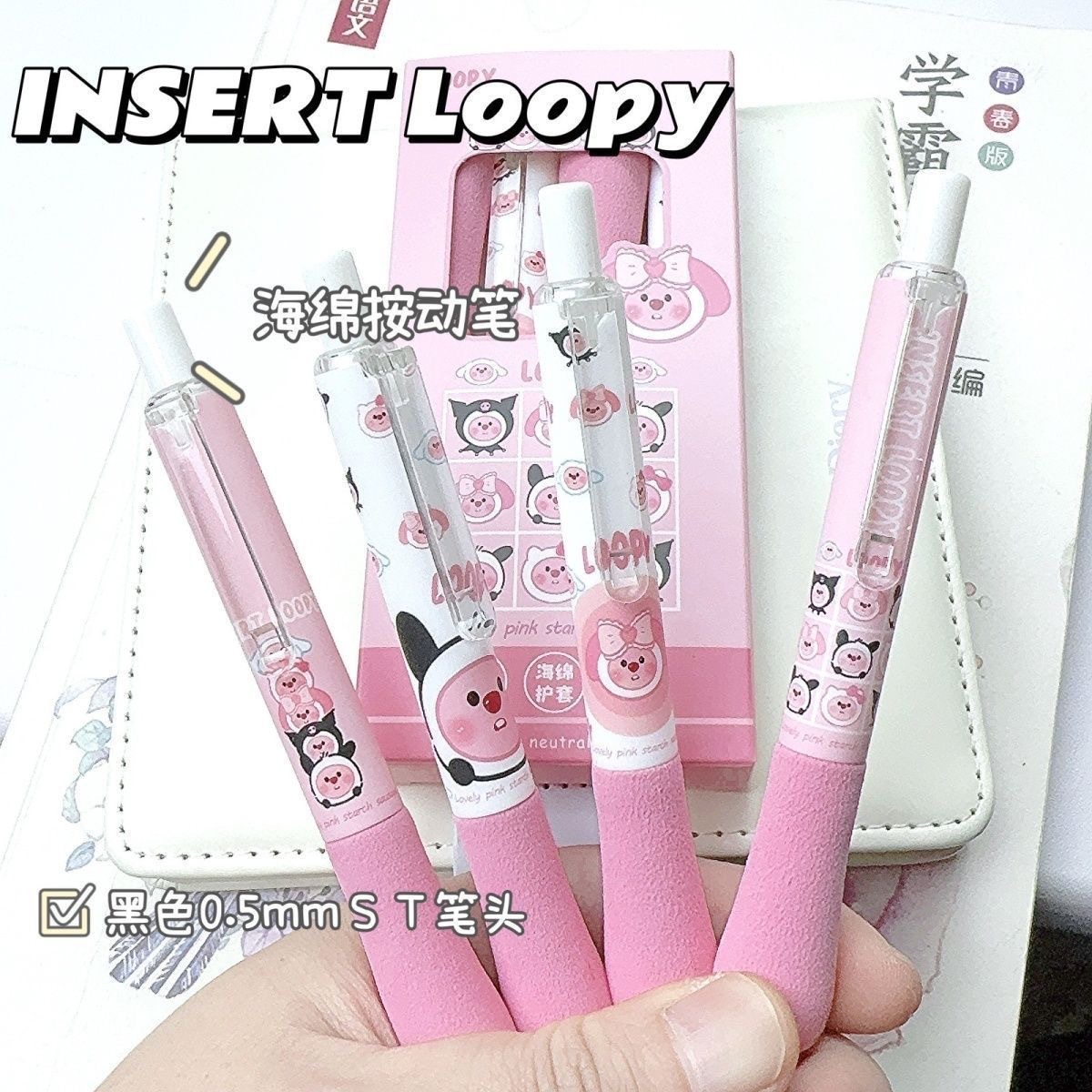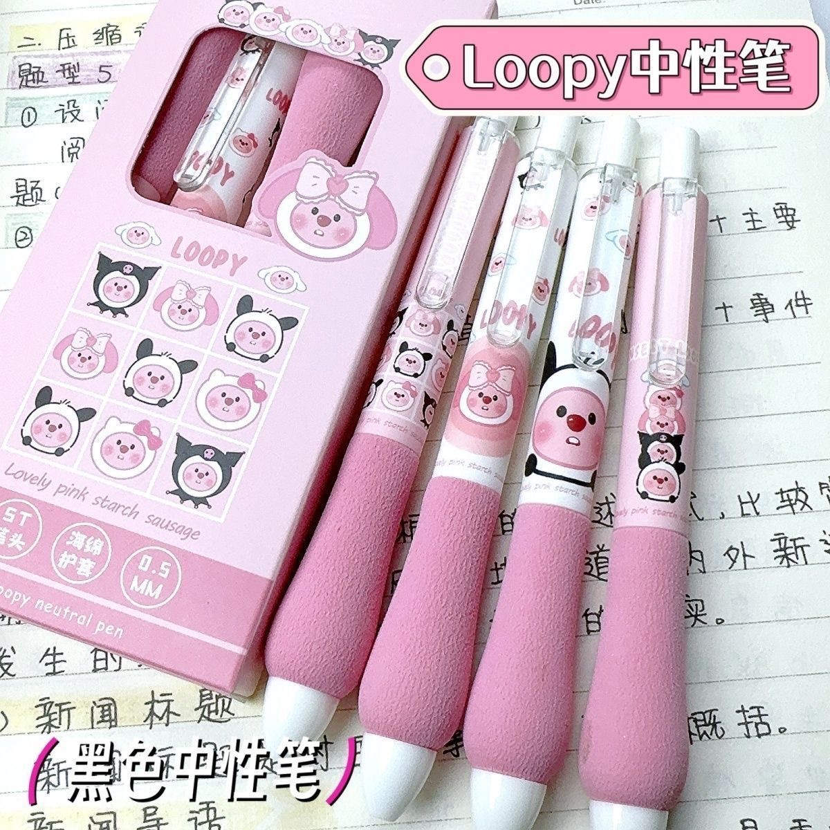 跨境爆款露比LOOPY海绵胖笔ins按动笔可爱学生速干0.5黑色中性笔