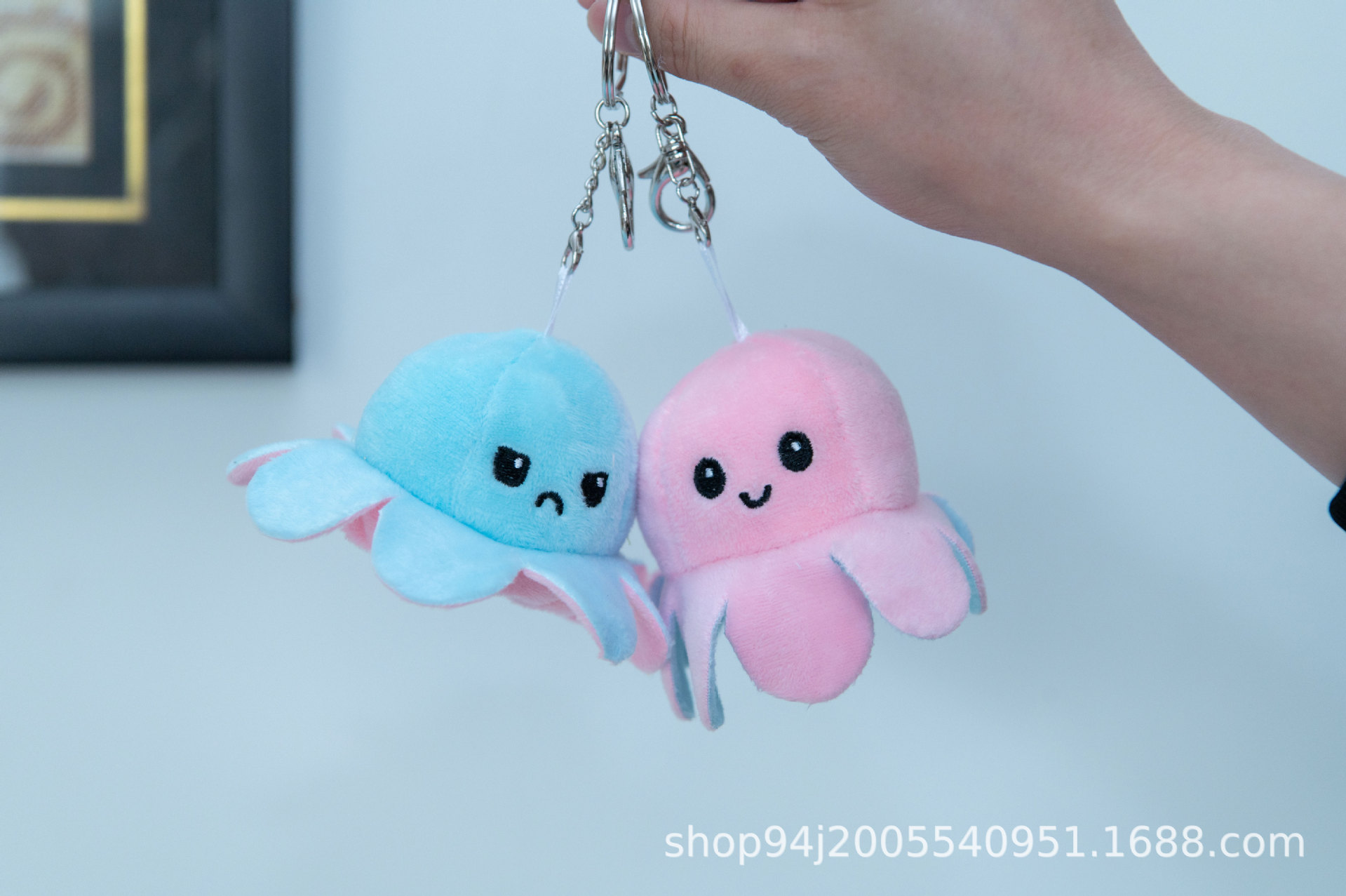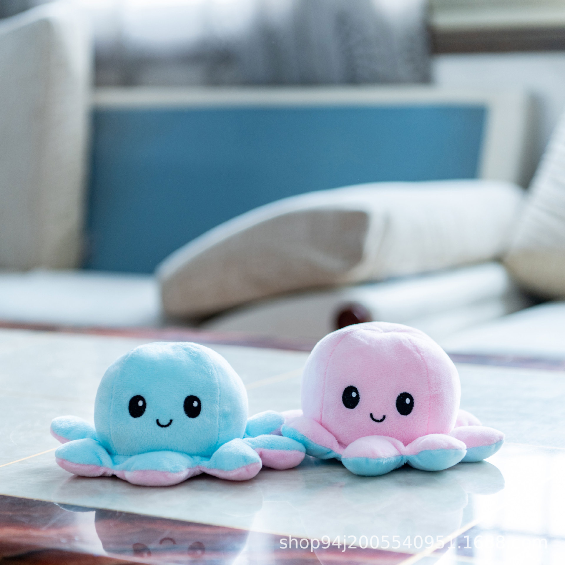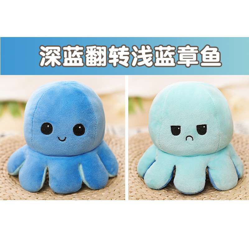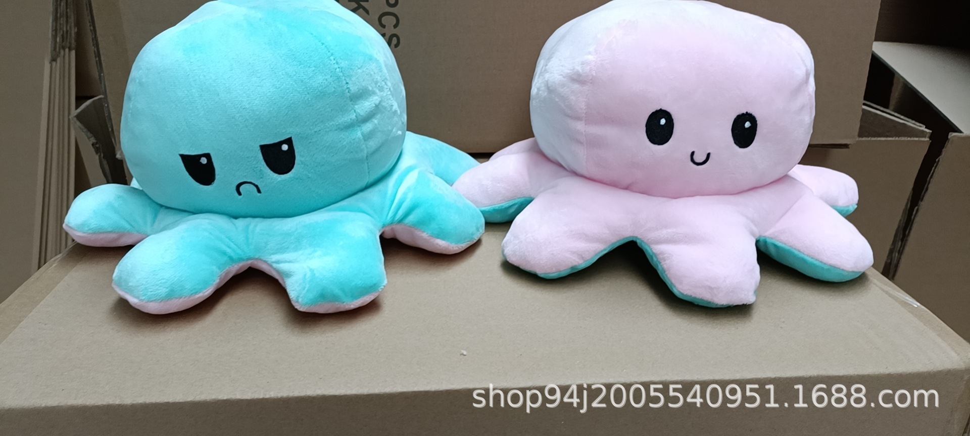翻转章鱼娃娃章鱼公仔双面变脸生气开心翻转玩偶抱枕毛绒玩具礼物