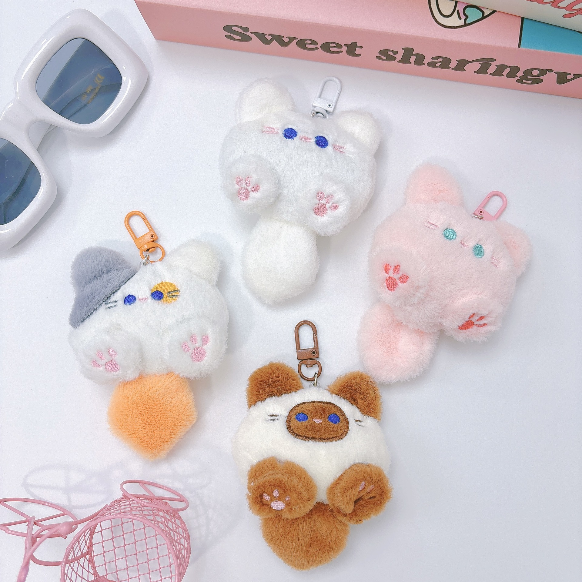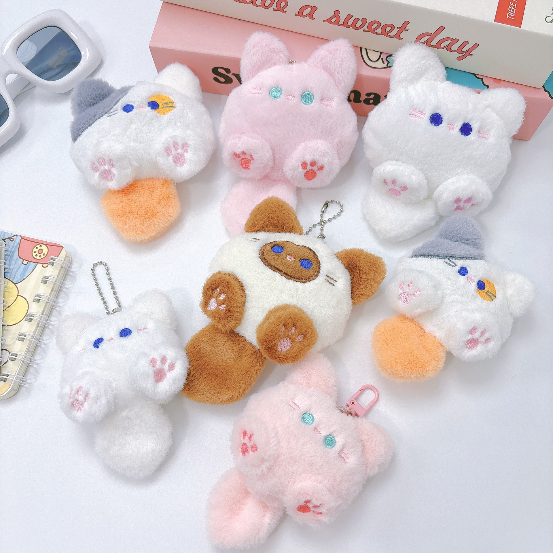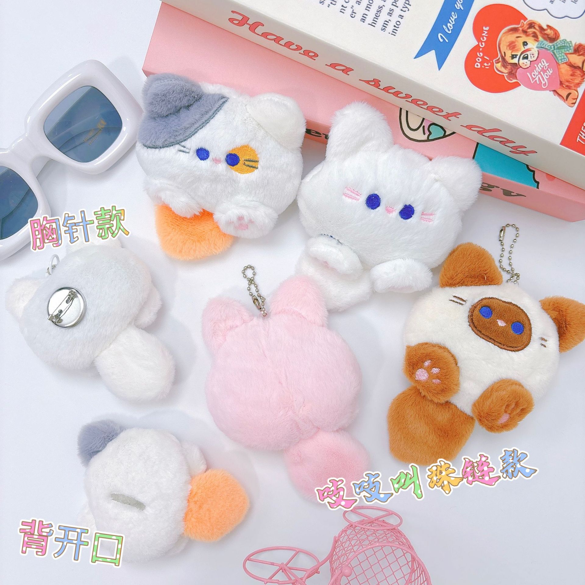 吱吱叫卡通毛绒公仔挂件团团喵玩偶钥匙扣可爱猫咪胸针服装辅料