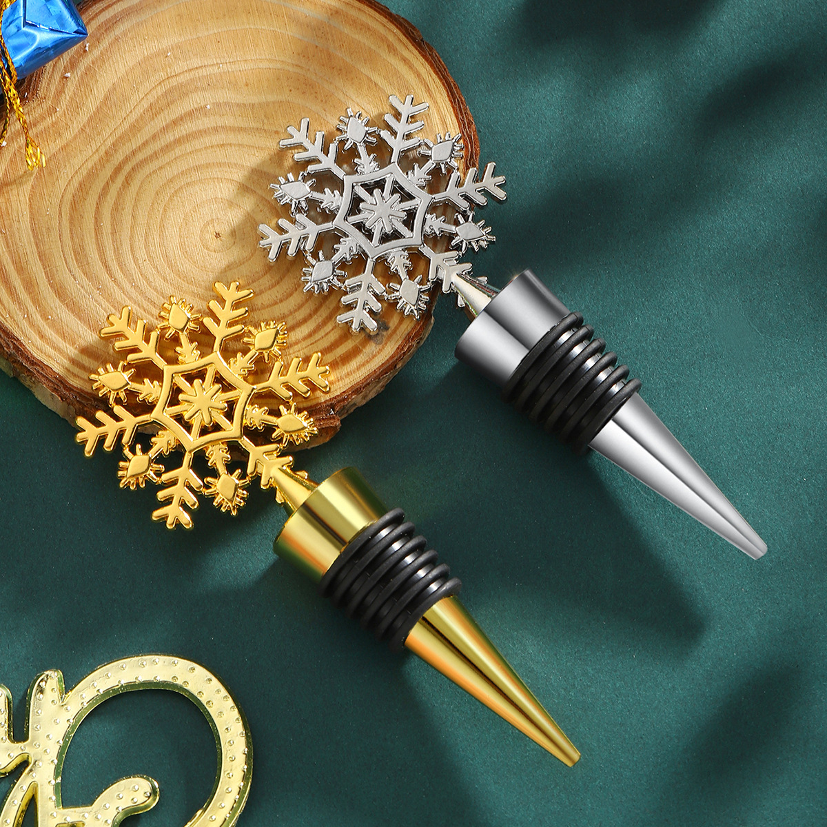 跨境圣诞雪花红酒塞锌合金香槟密封塞葡萄酒保鲜塞节日派对酒瓶塞