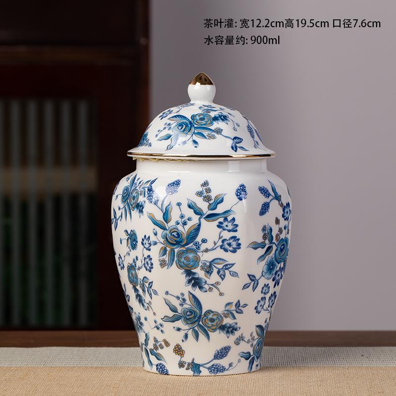 复古青花陶瓷茶叶陶瓷防潮罐精品高档茶叶罐家用送礼茶叶罐普通批