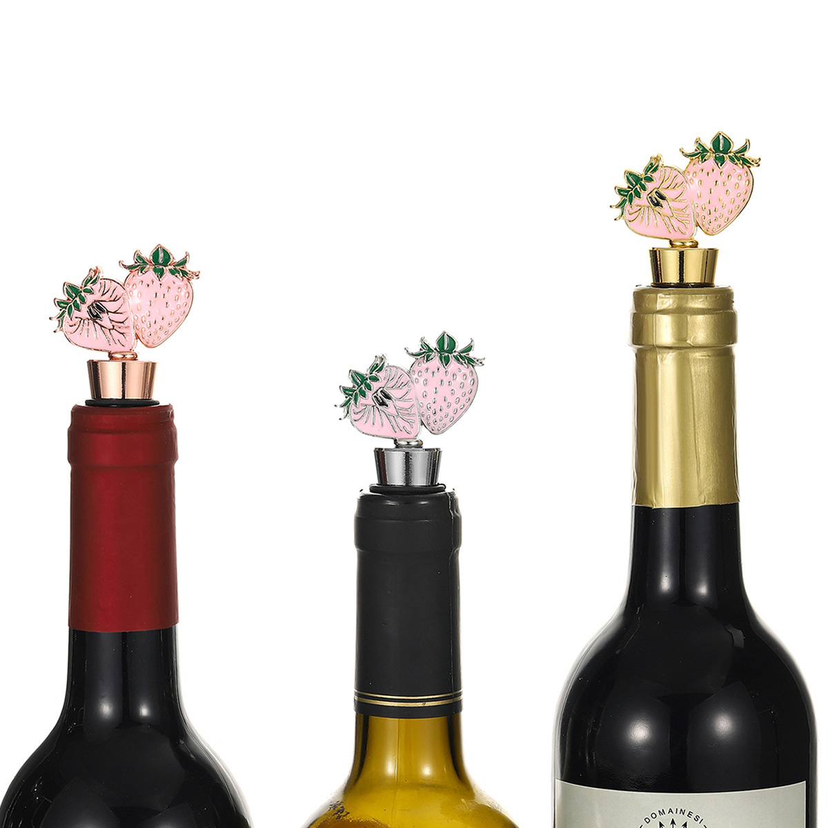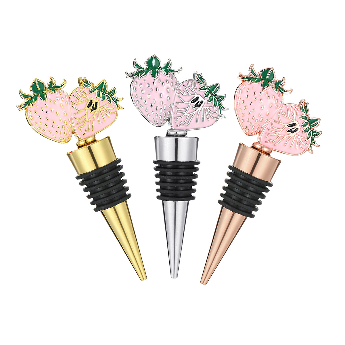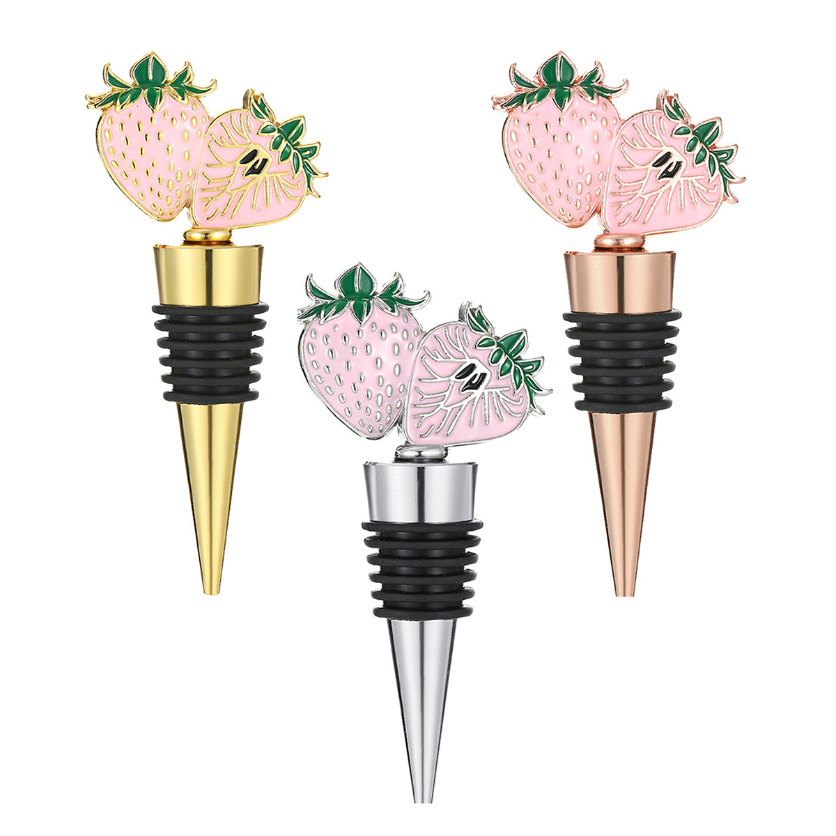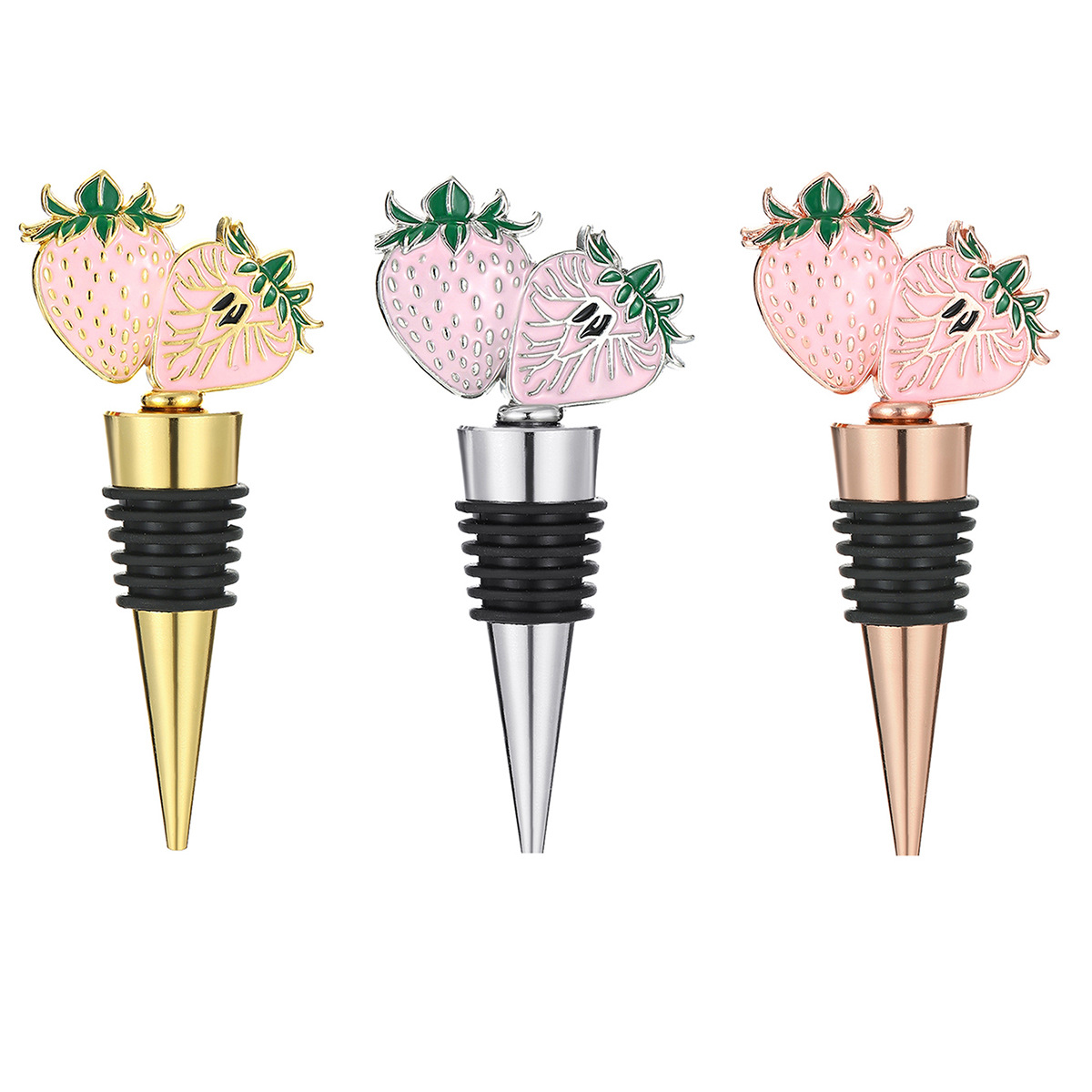 跨境新款草莓红酒塞国外婚庆节日派对用品锌合金酒瓶塞保鲜密封塞