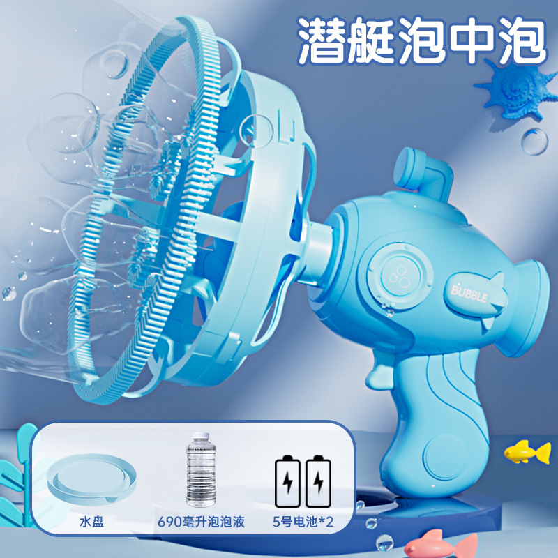 儿童潜艇泡泡枪花式泡中泡一键启动电动泡泡机卡通萌趣儿童玩具