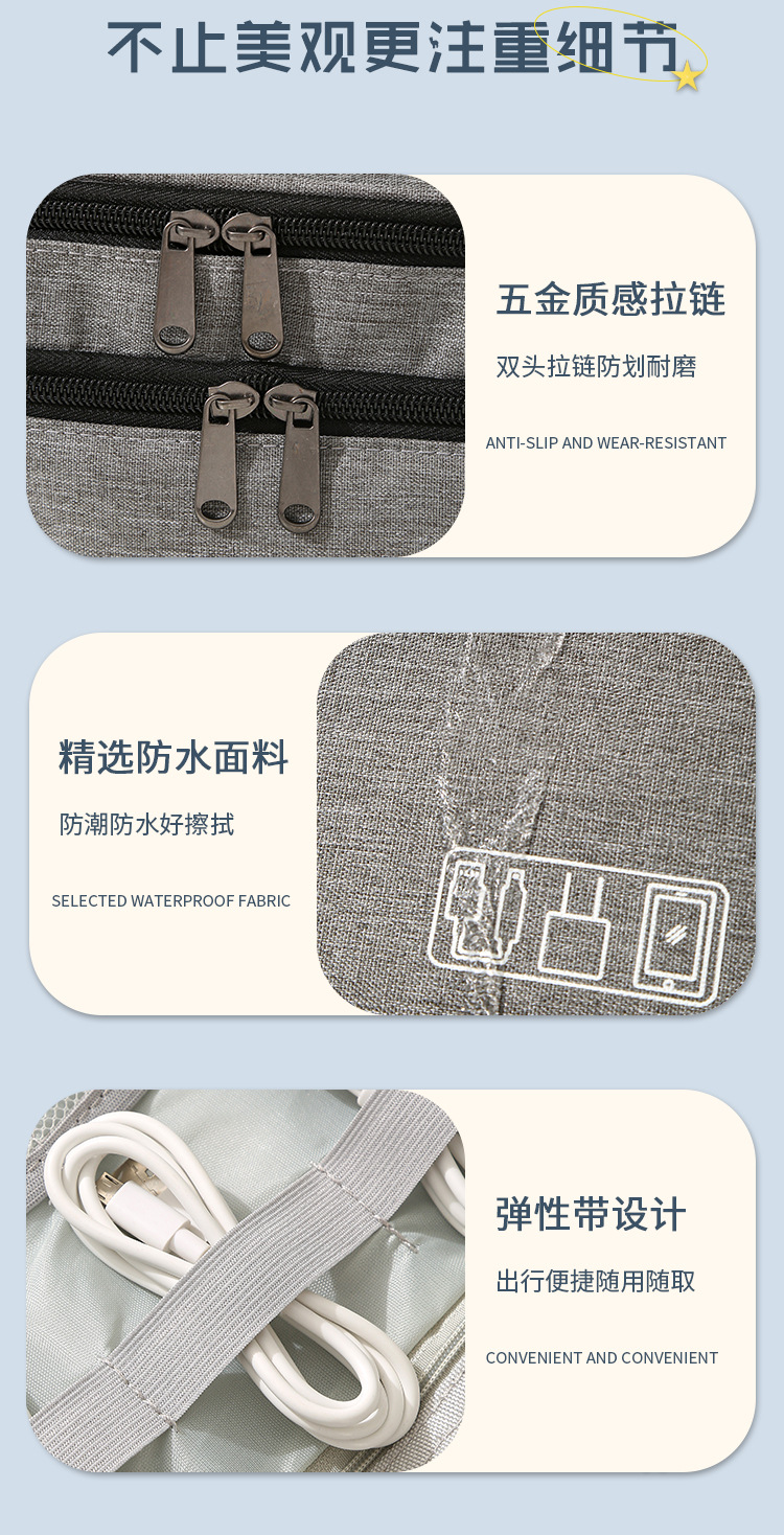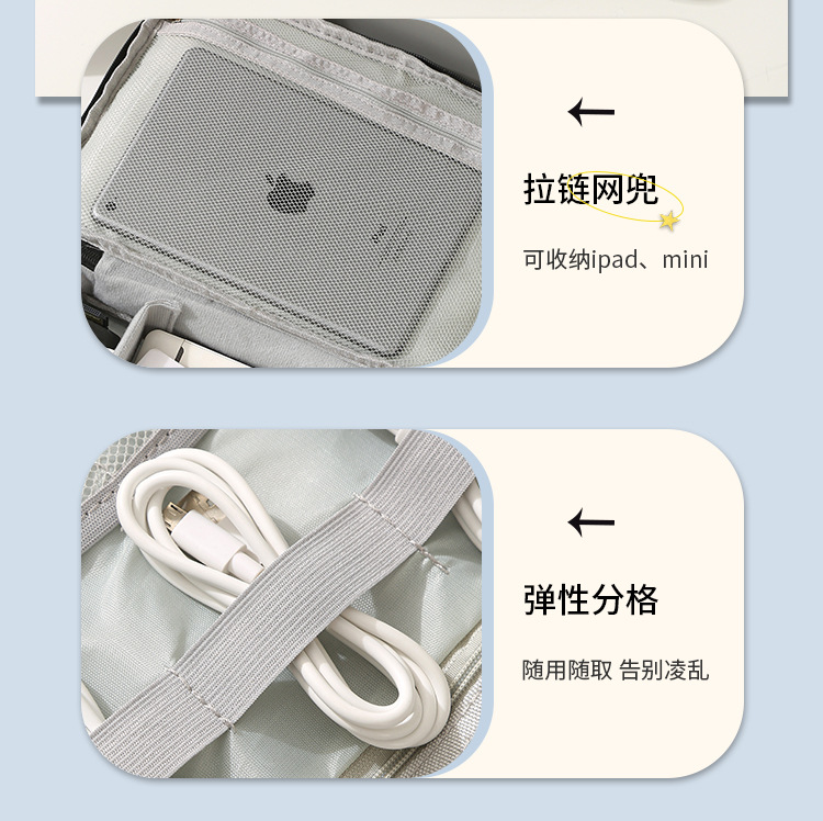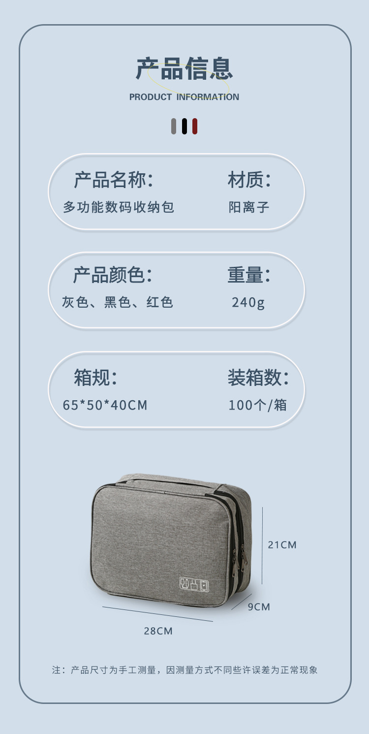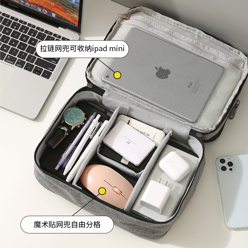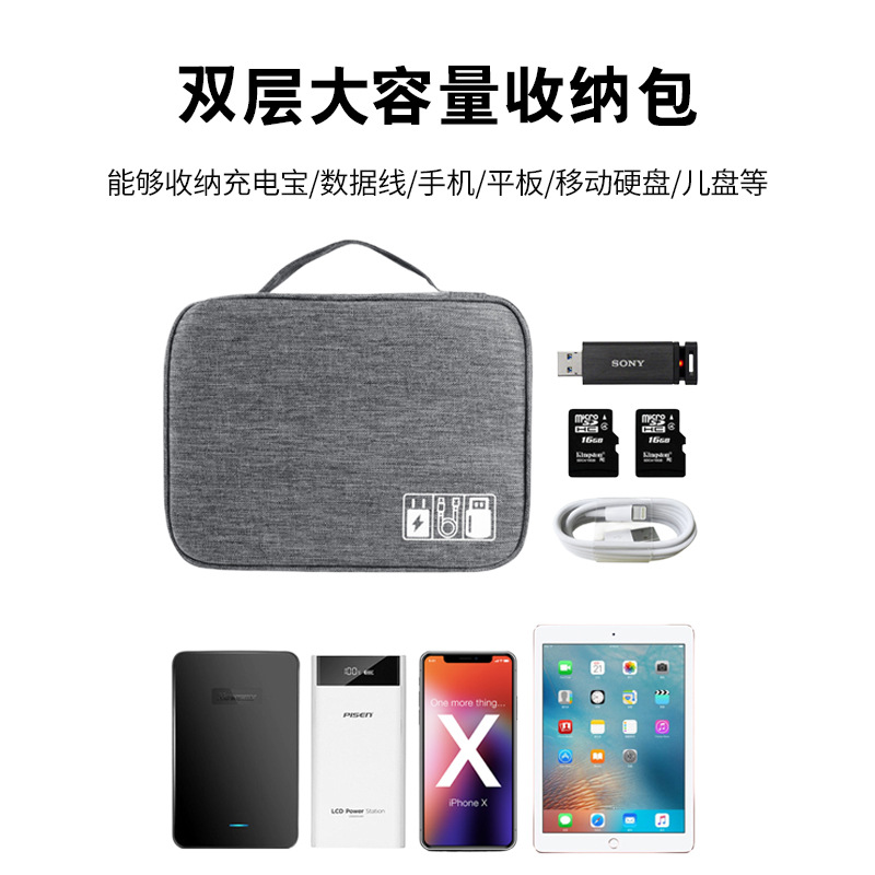 多功能双层数码收纳包大容量手机数据线便携收纳袋旅行配件杂物包