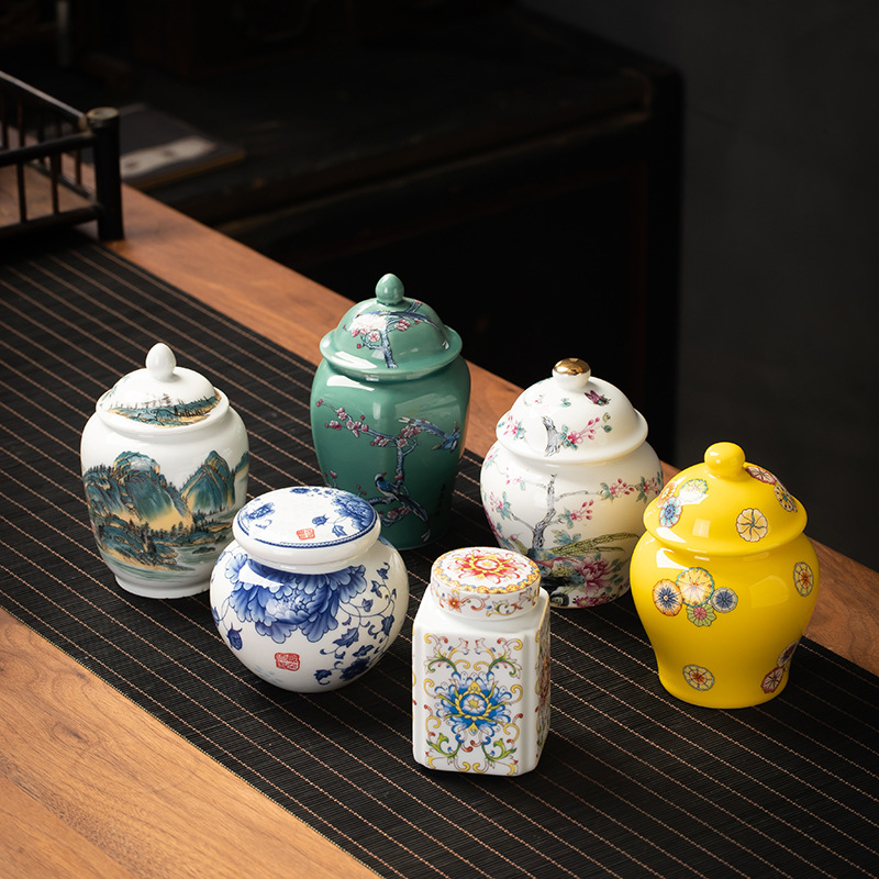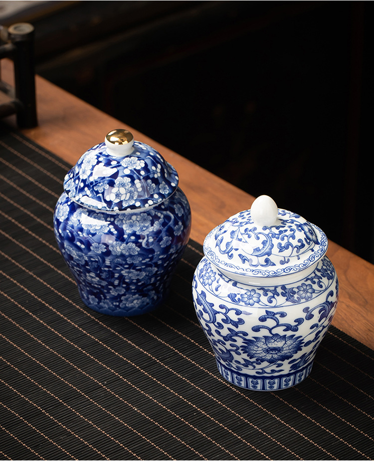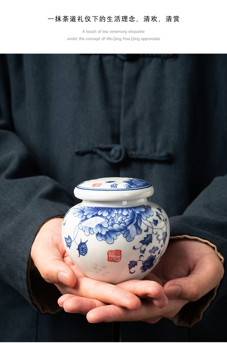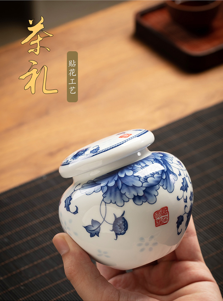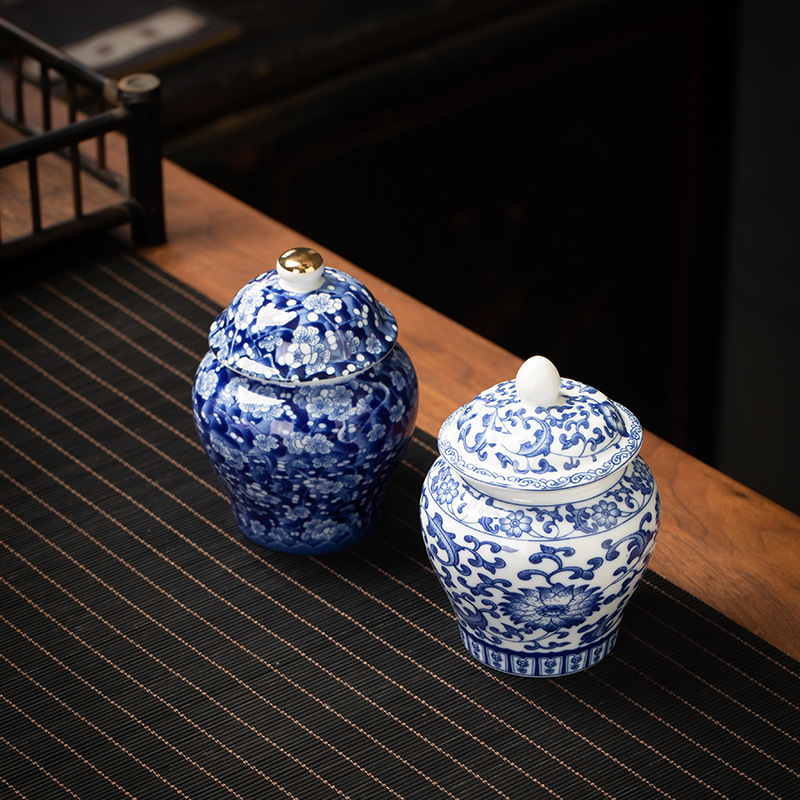 复古青花喜糖密封陶瓷茶叶小罐储物罐家用陶瓷储物小型茶叶罐批发