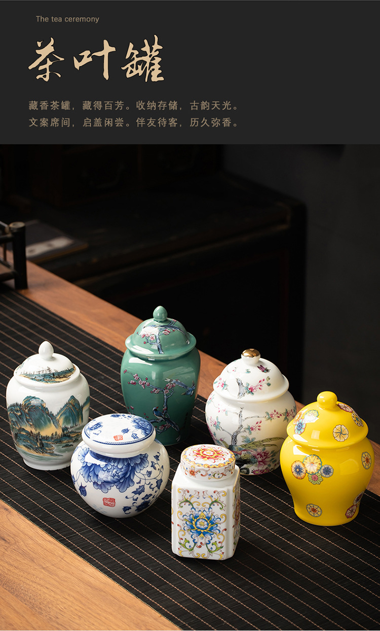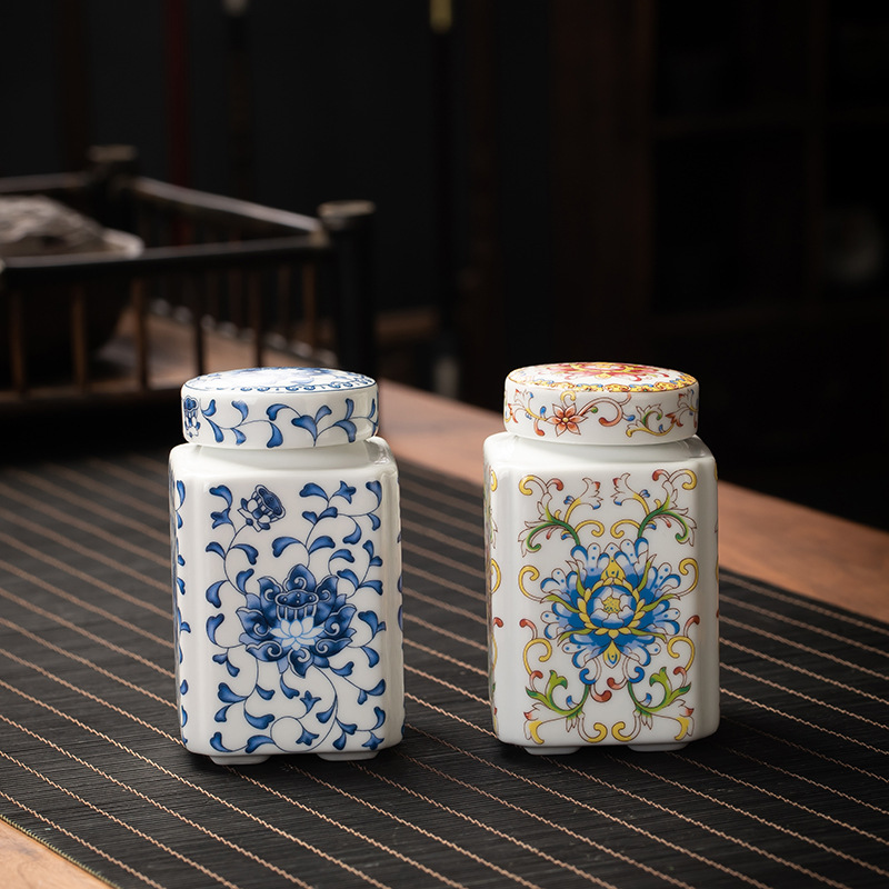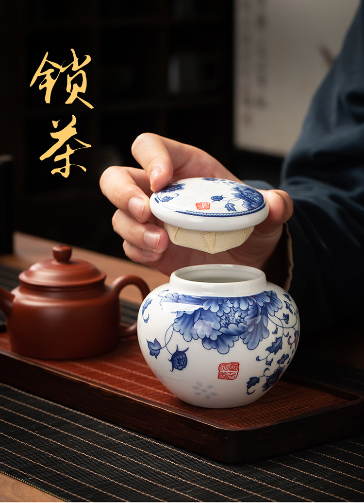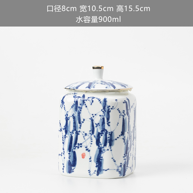 复古青花喜糖密封陶瓷茶叶小罐储物罐家用陶瓷储物小型茶叶罐批发
