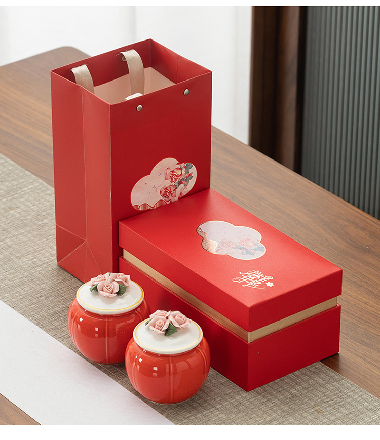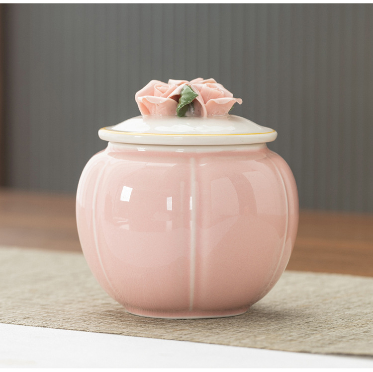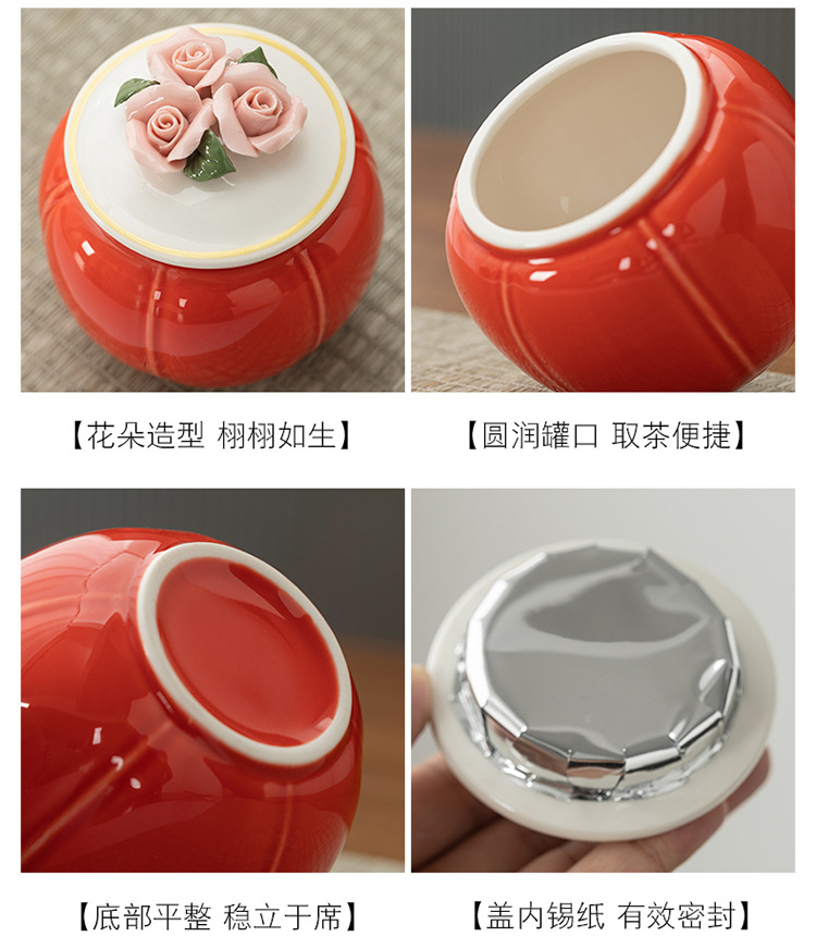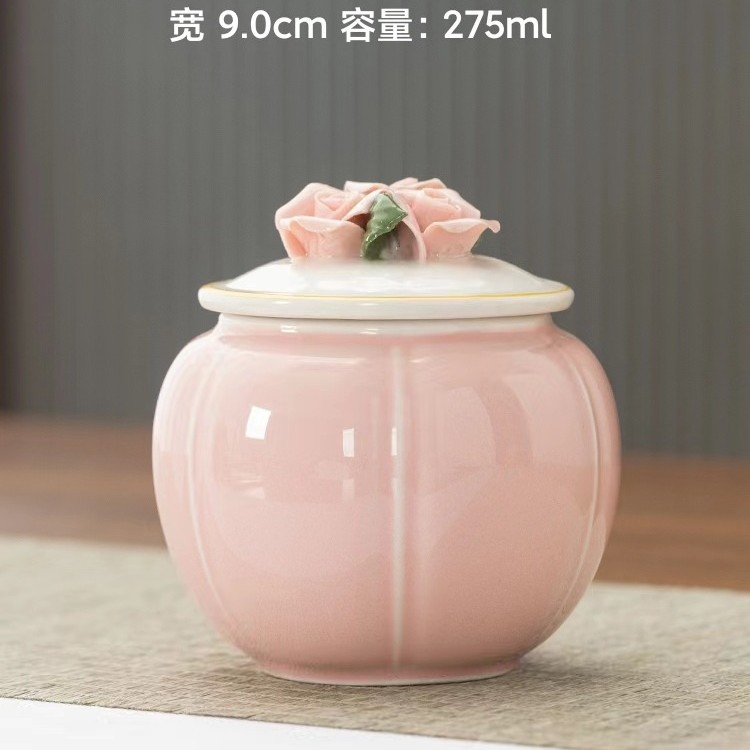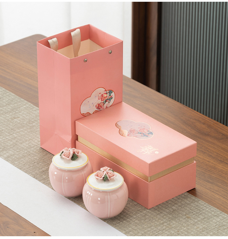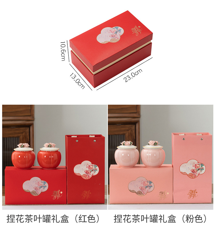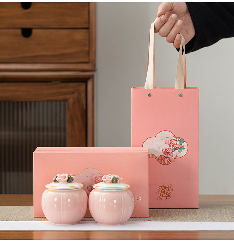 陶瓷捏花储物茶叶罐密封罐香粉首饰收纳防潮零食干果药材罐礼盒装