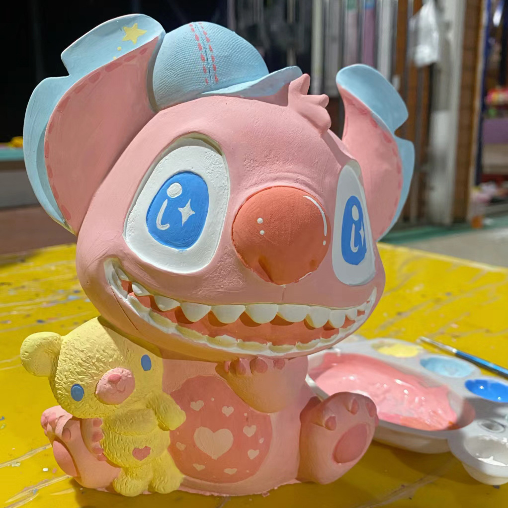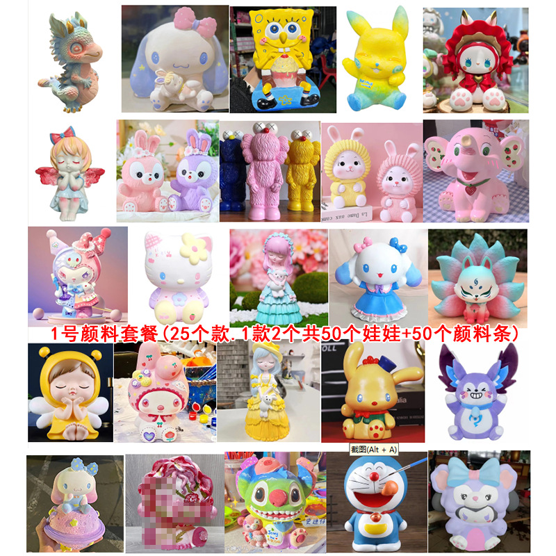 爆款石膏彩绘娃娃大号白胚涂色儿童diy卡通存钱罐石膏玩具摆摊
