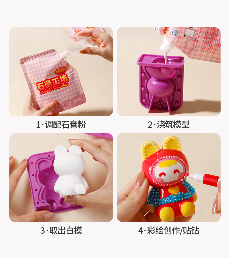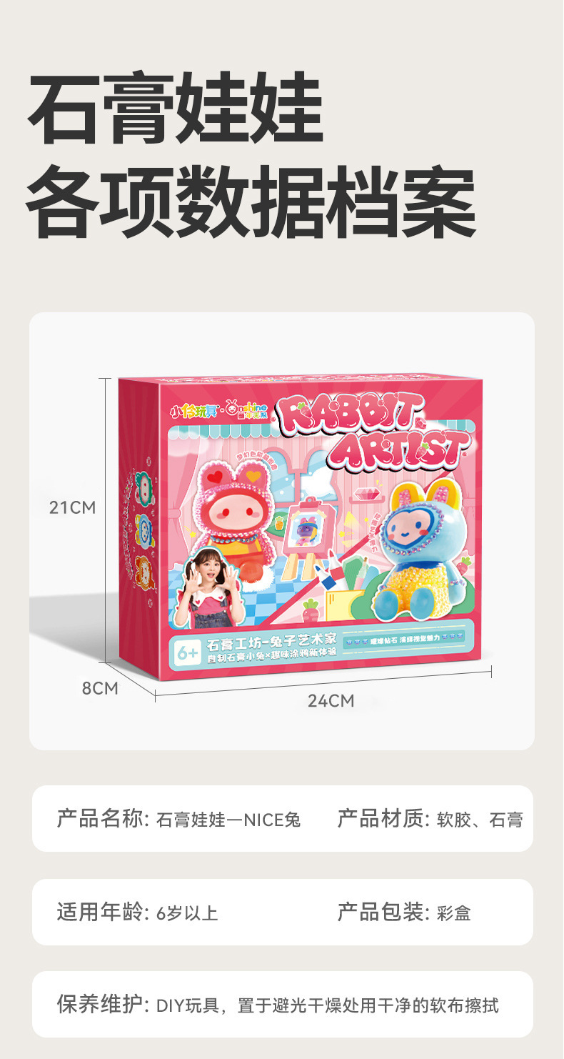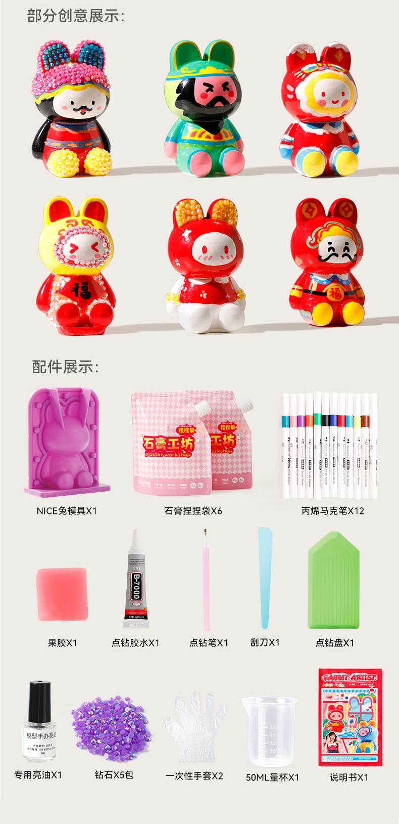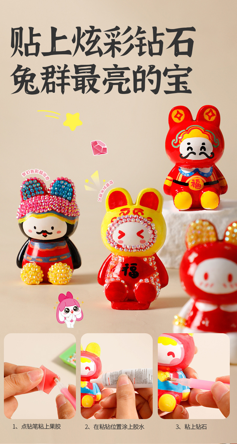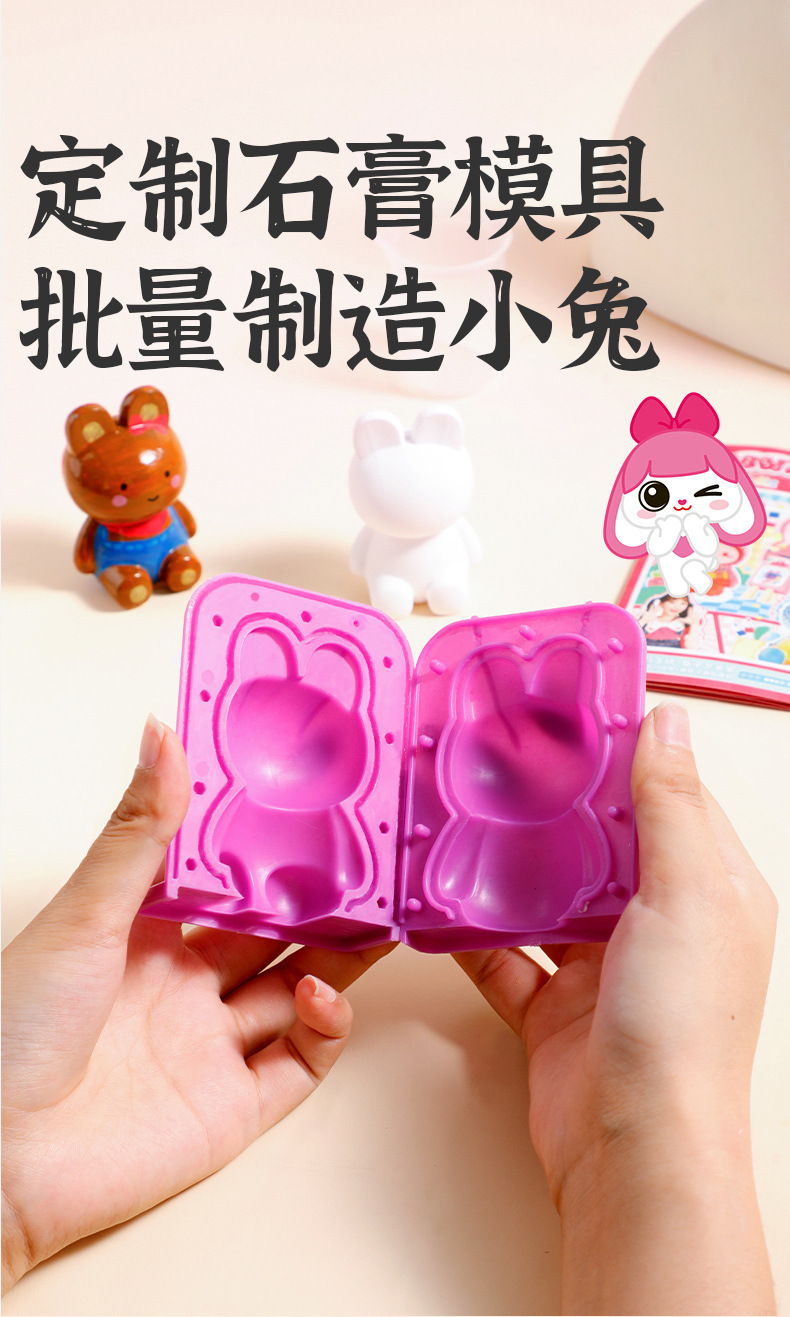 儿童石膏娃娃手工涂色贴钻兔子公仔模具diy制作石塑粘土涂鸦玩具