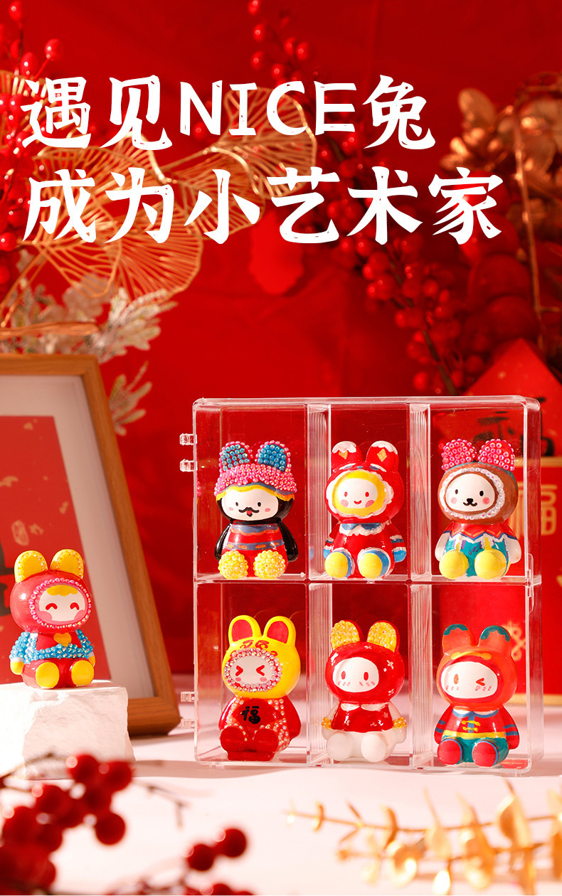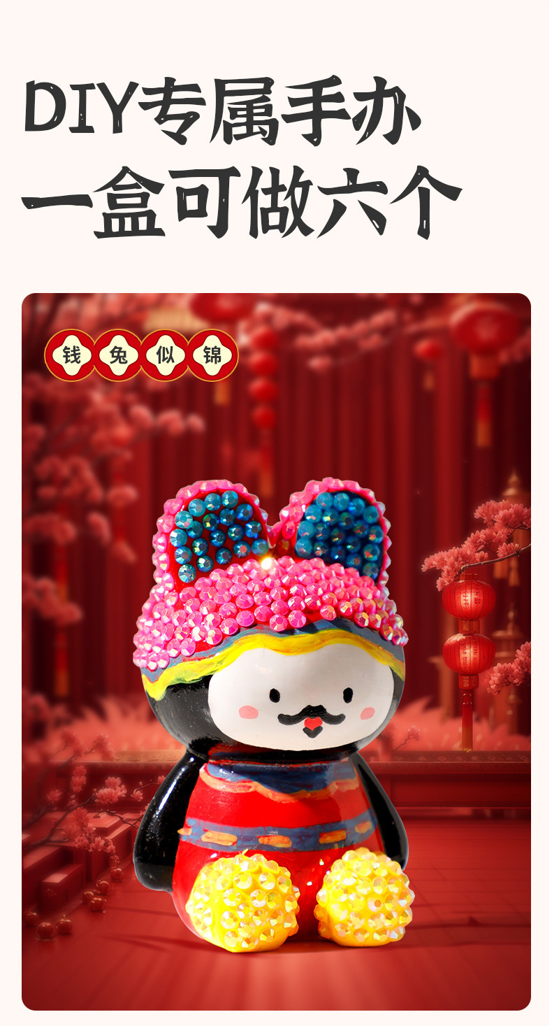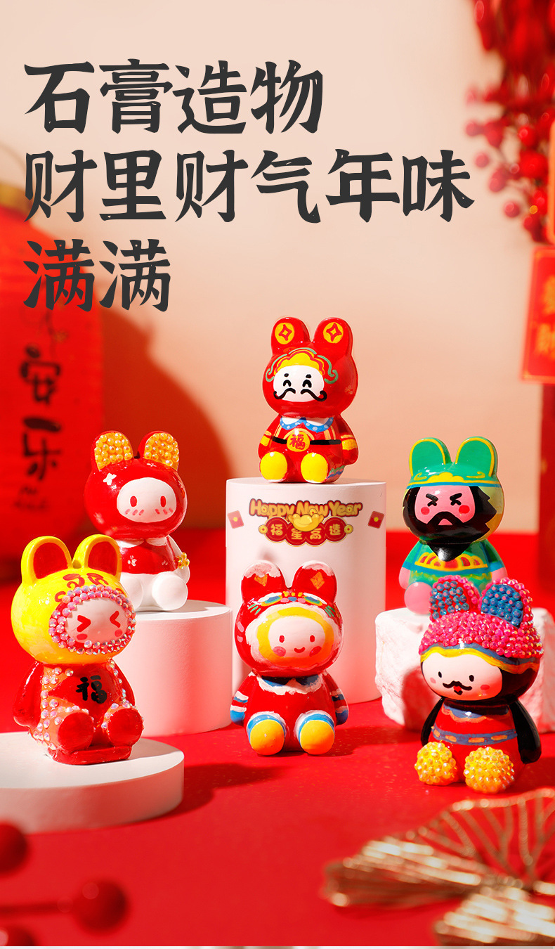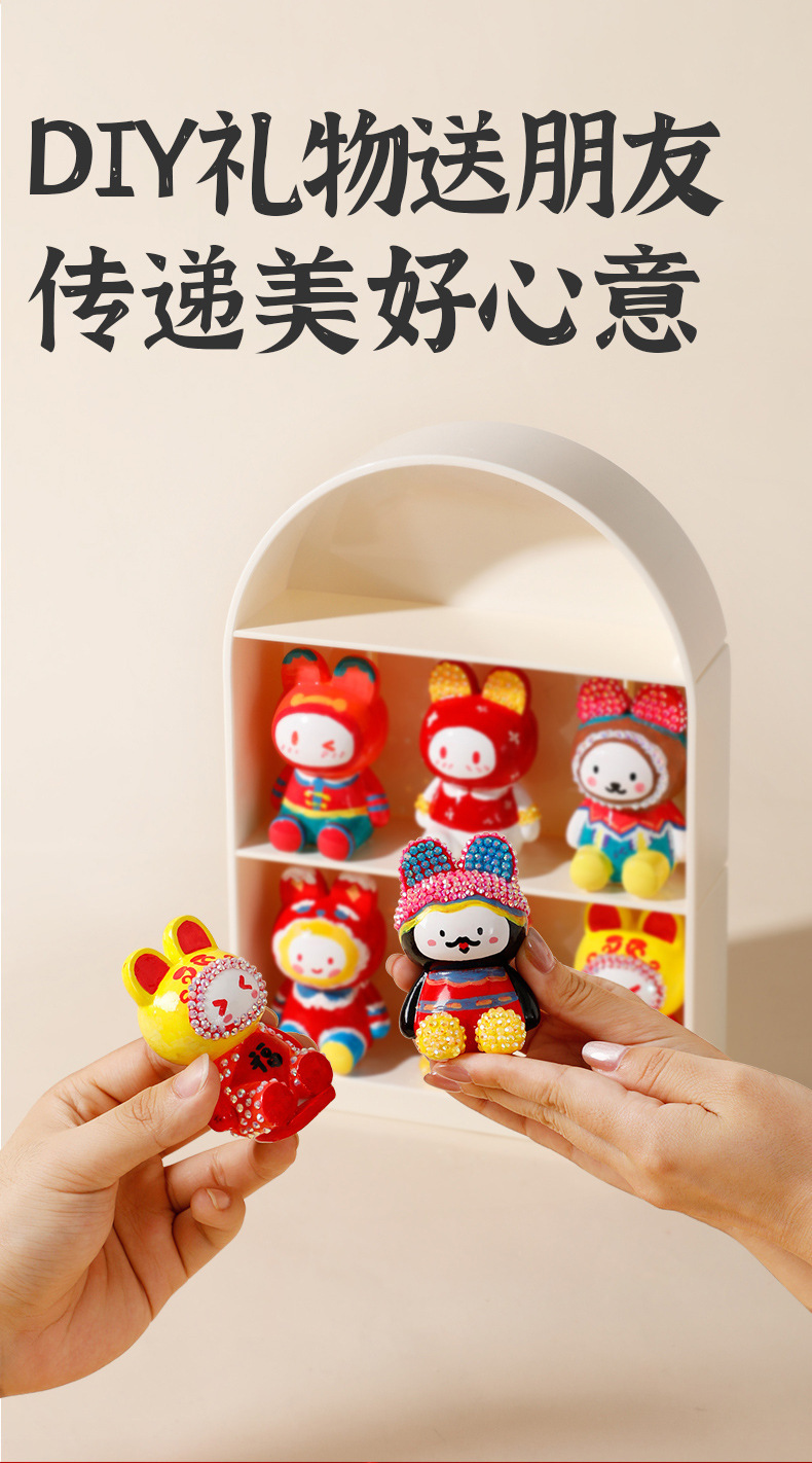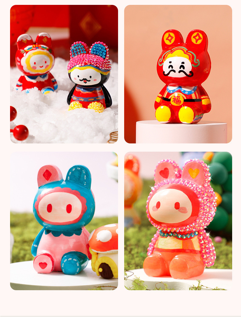 儿童石膏娃娃手工涂色贴钻兔子公仔模具diy制作石塑粘土涂鸦玩具