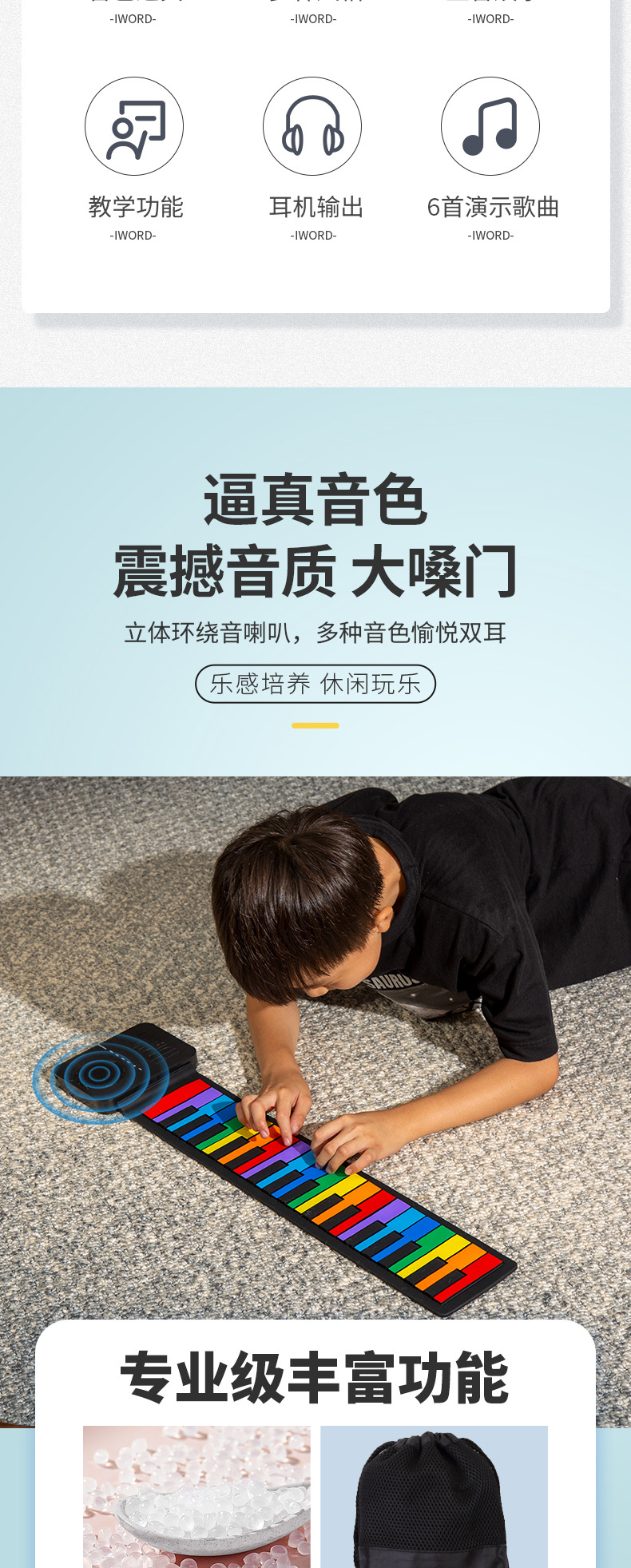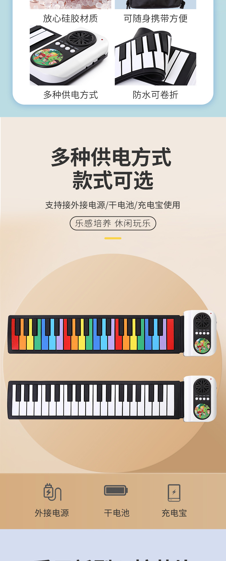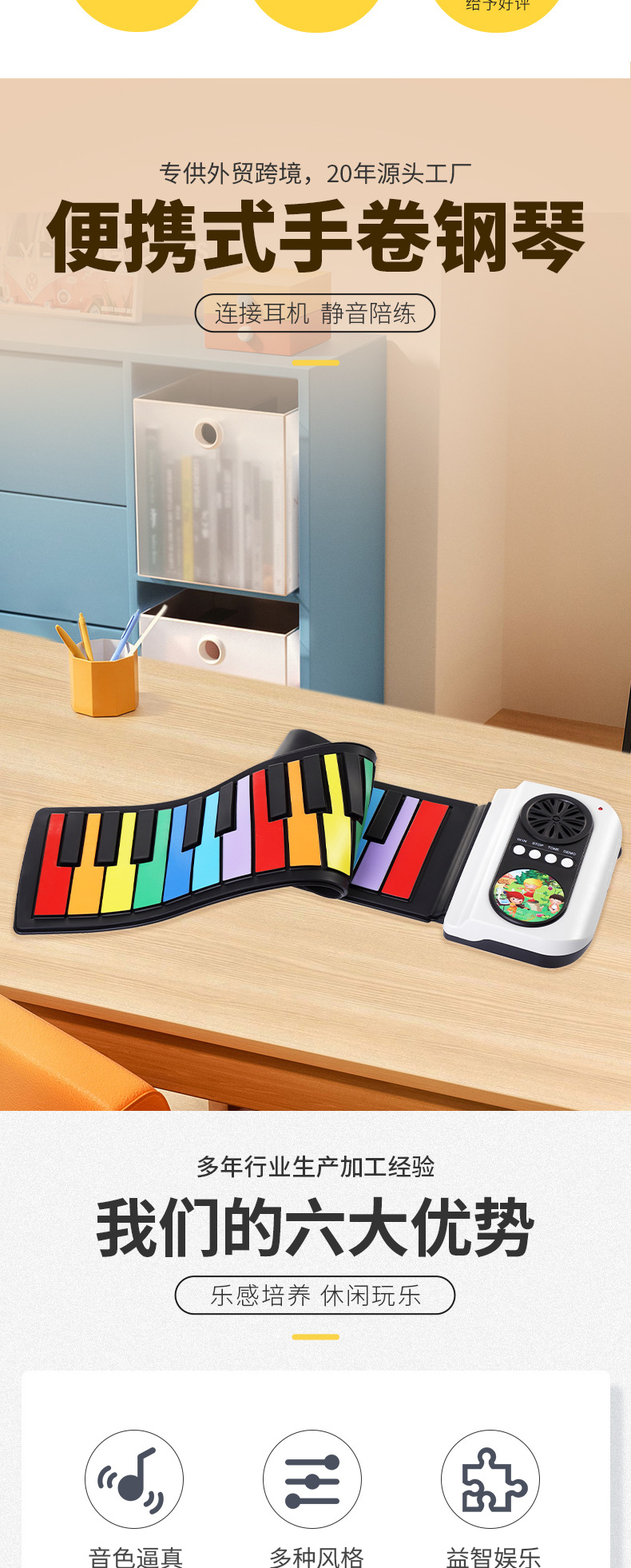 跨境平台专供手卷便携电子钢琴早教启蒙儿童乐器网红款37键电钢琴