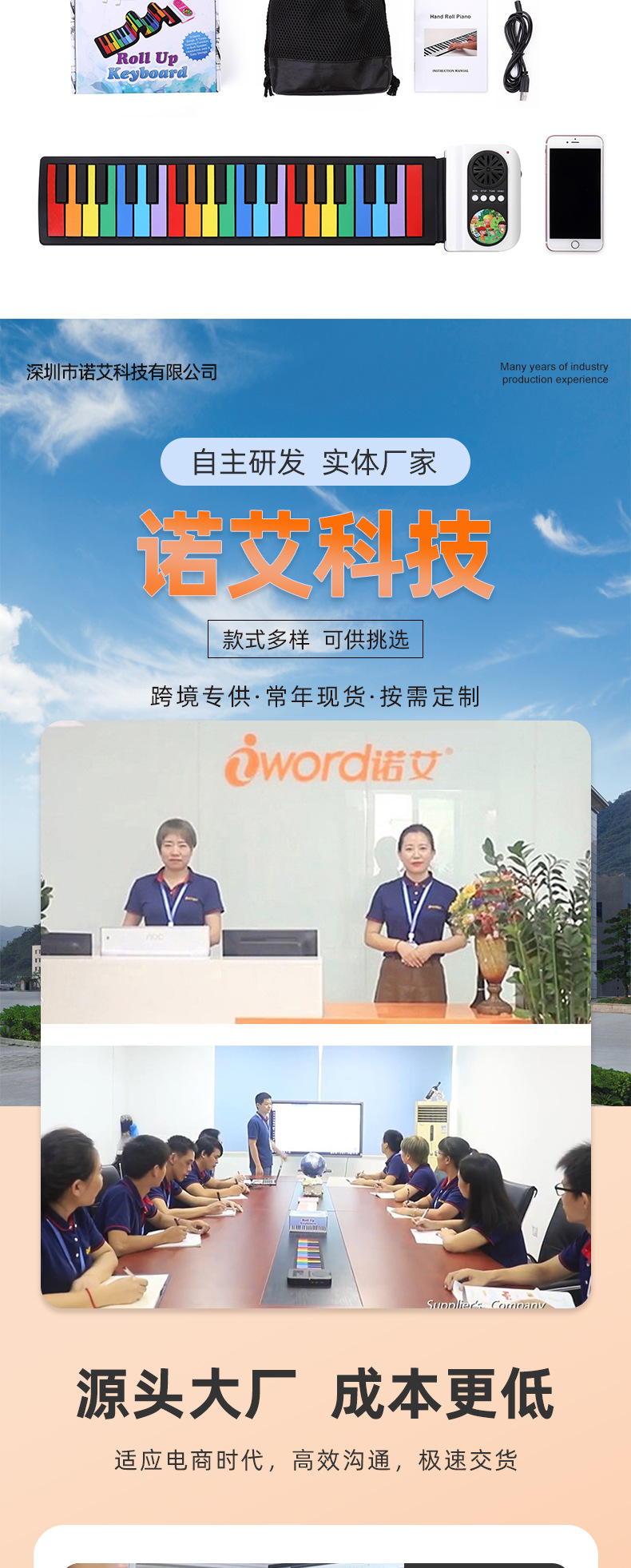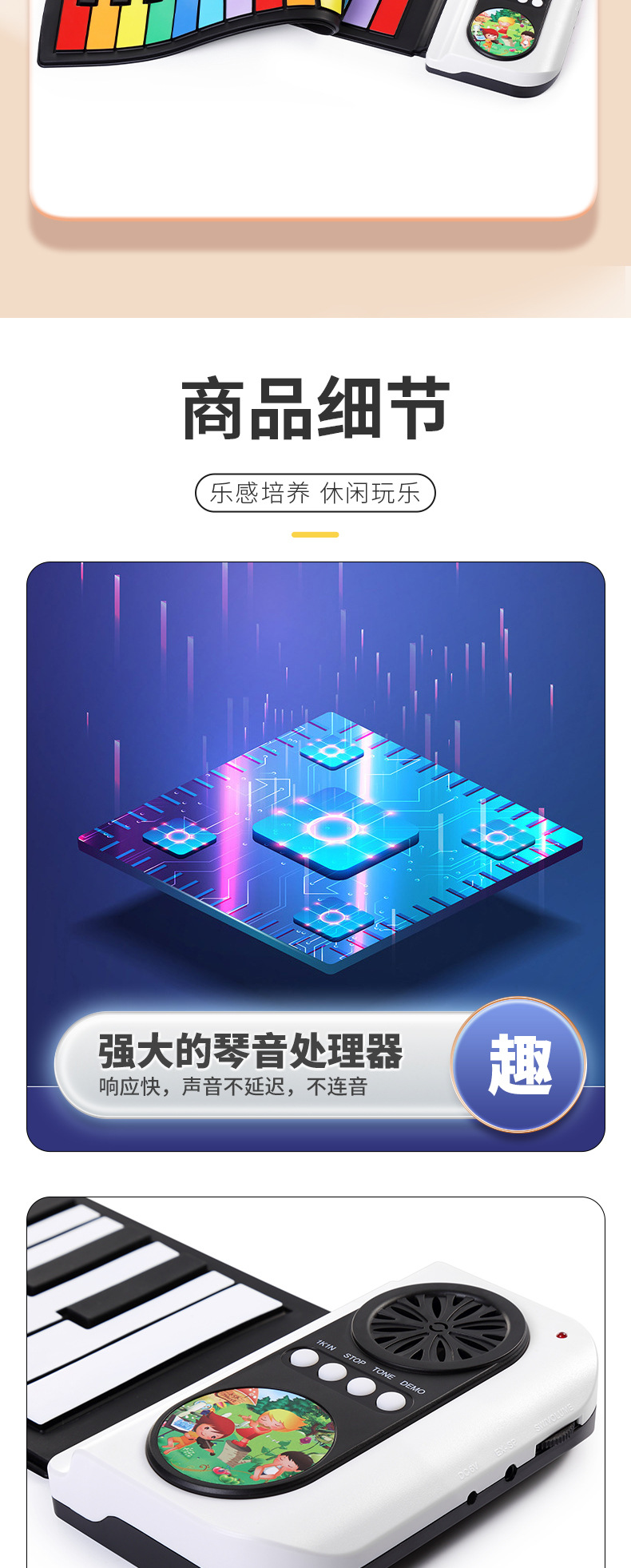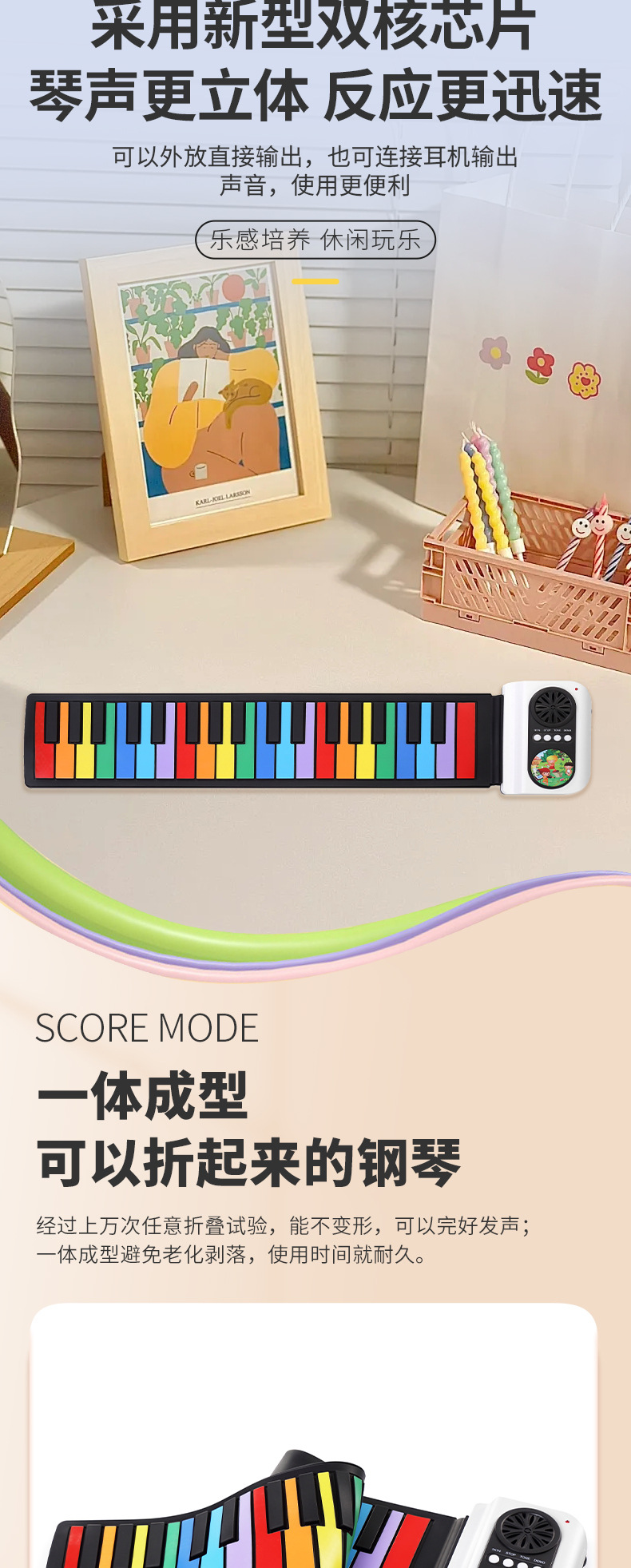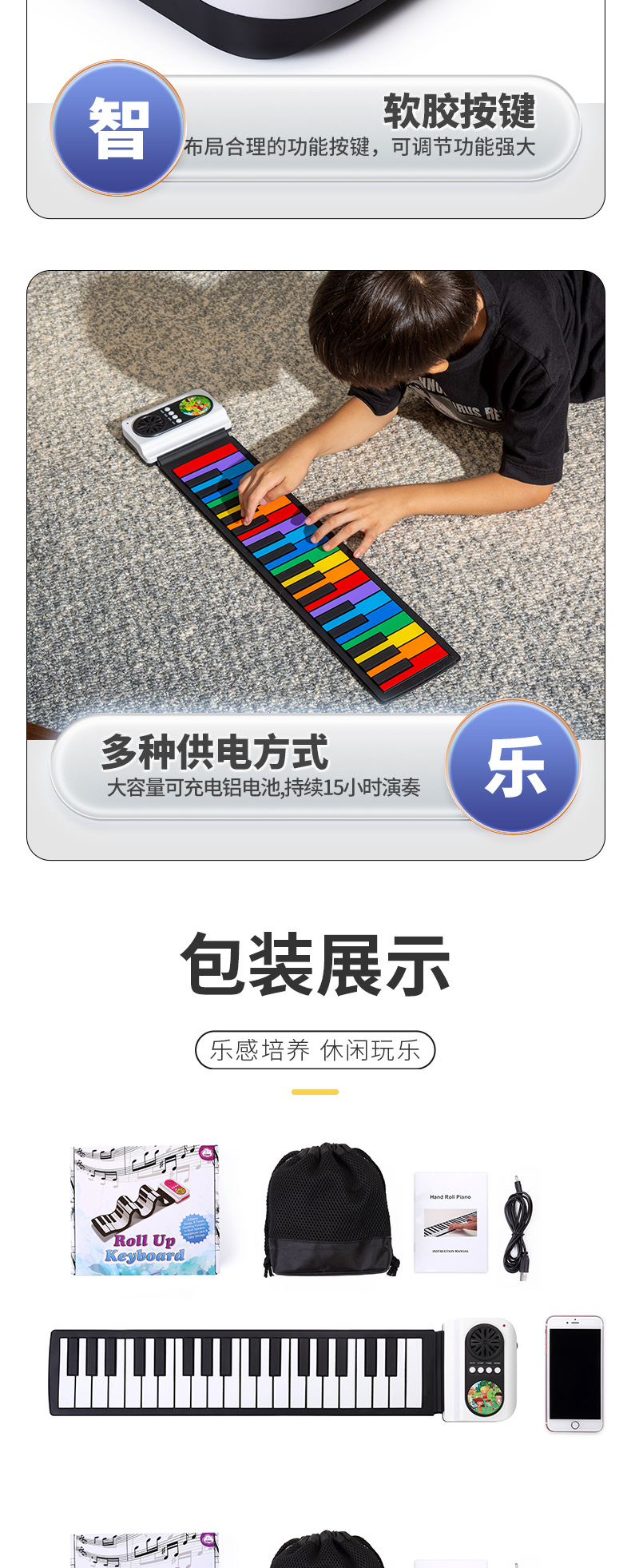 跨境平台专供手卷便携电子钢琴早教启蒙儿童乐器网红款37键电钢琴