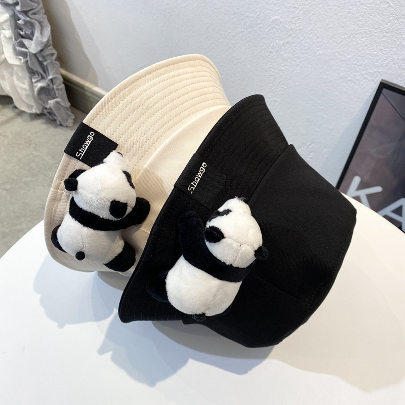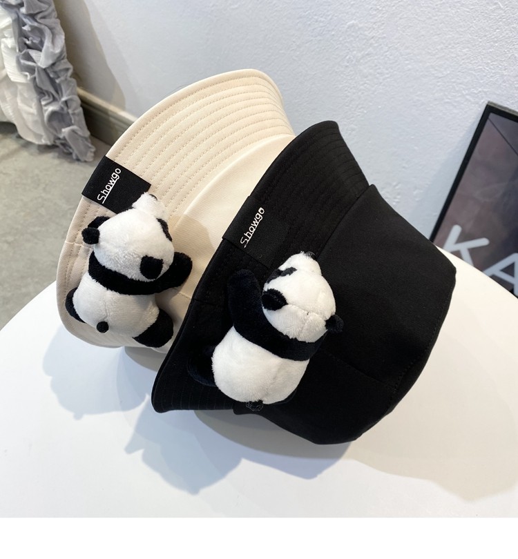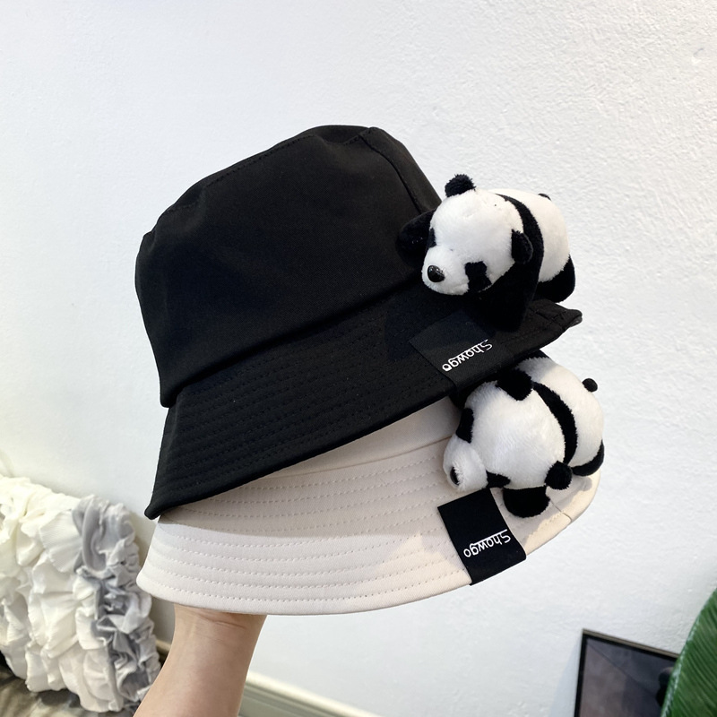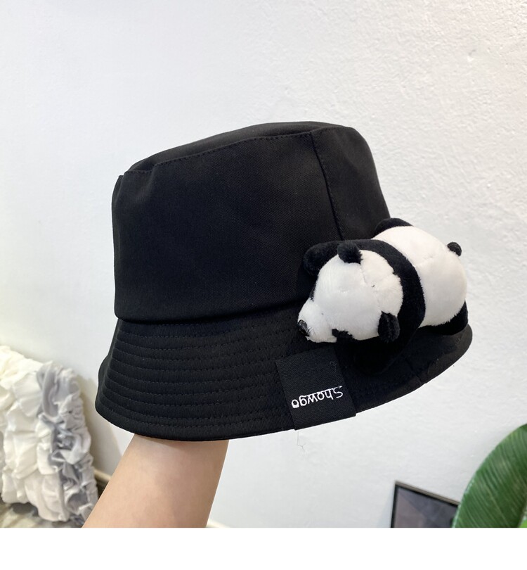 胖嘟嘟卡通可爱熊猫渔夫帽ins日系韩版设计师款小众水桶帽盆帽女