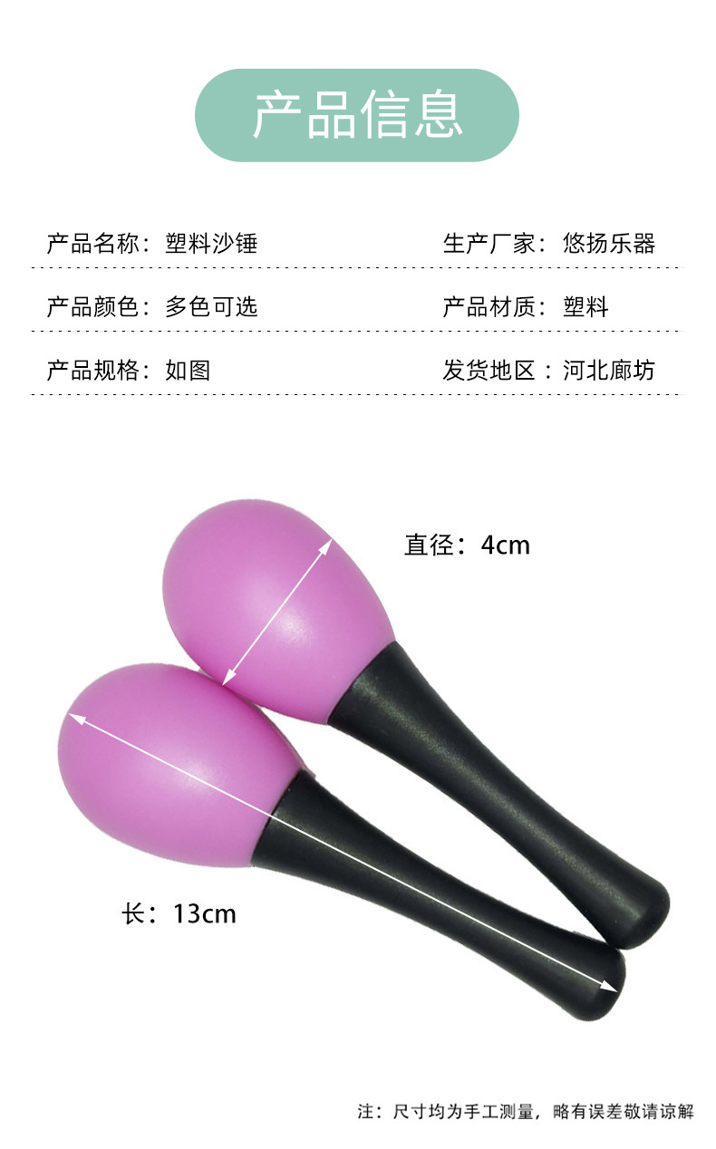 塑料彩色沙锤奥尔夫打击乐器 儿童早教音乐器材 乐队伴奏乐器
