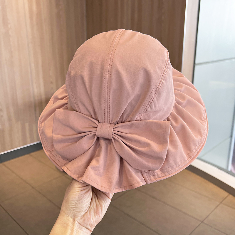 韩版渔夫帽女夏薄款出游大头围遮阳帽蝴蝶结太阳帽子遮脸防晒盆帽