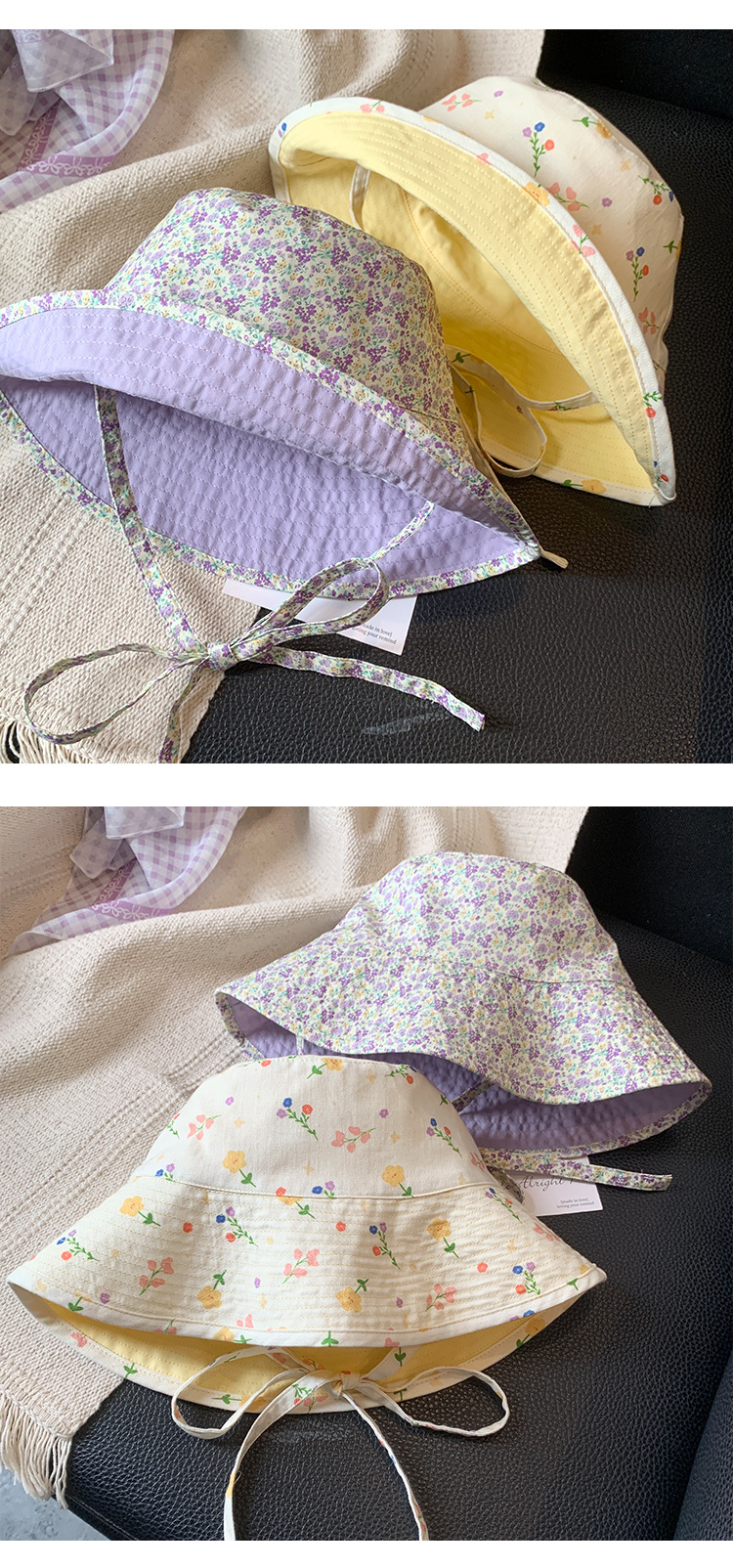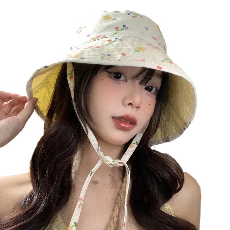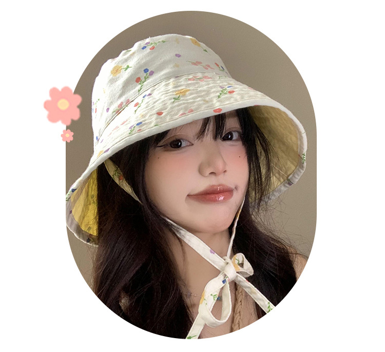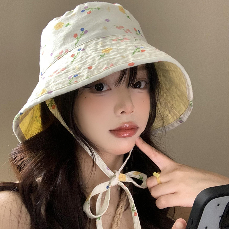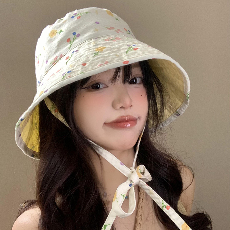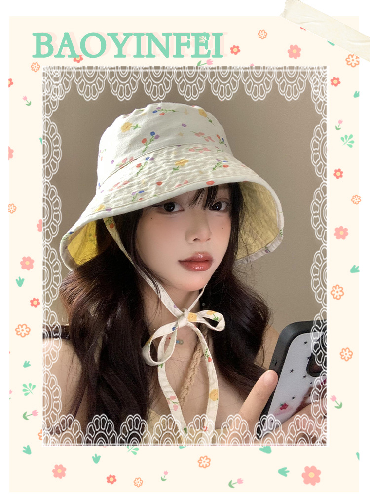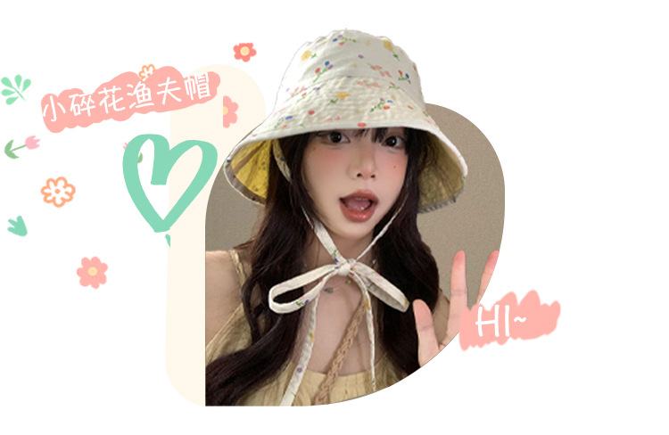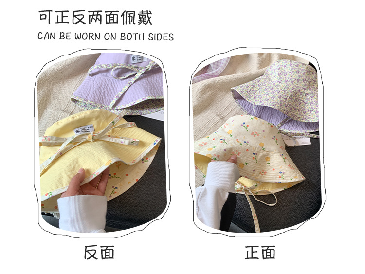 可爱碎花双面渔夫帽女夏季日系大头围水桶盆帽显脸小遮阳防晒帽子