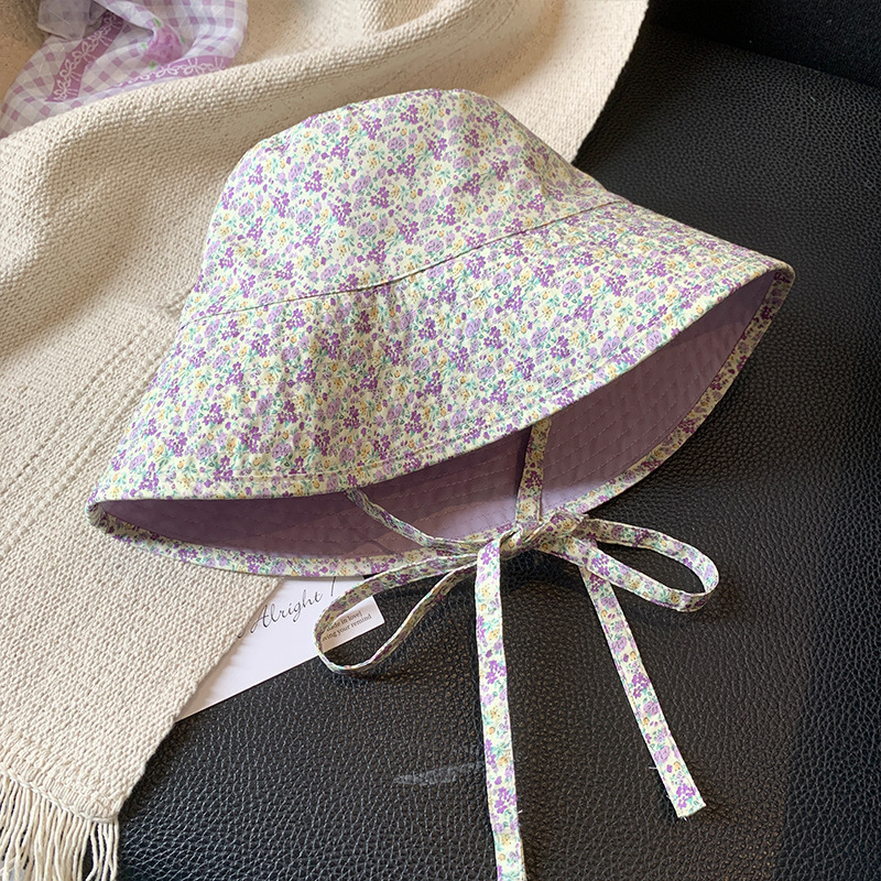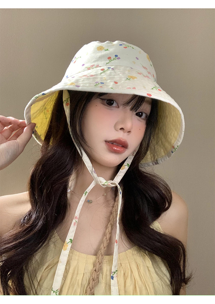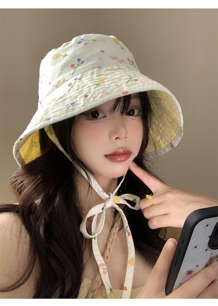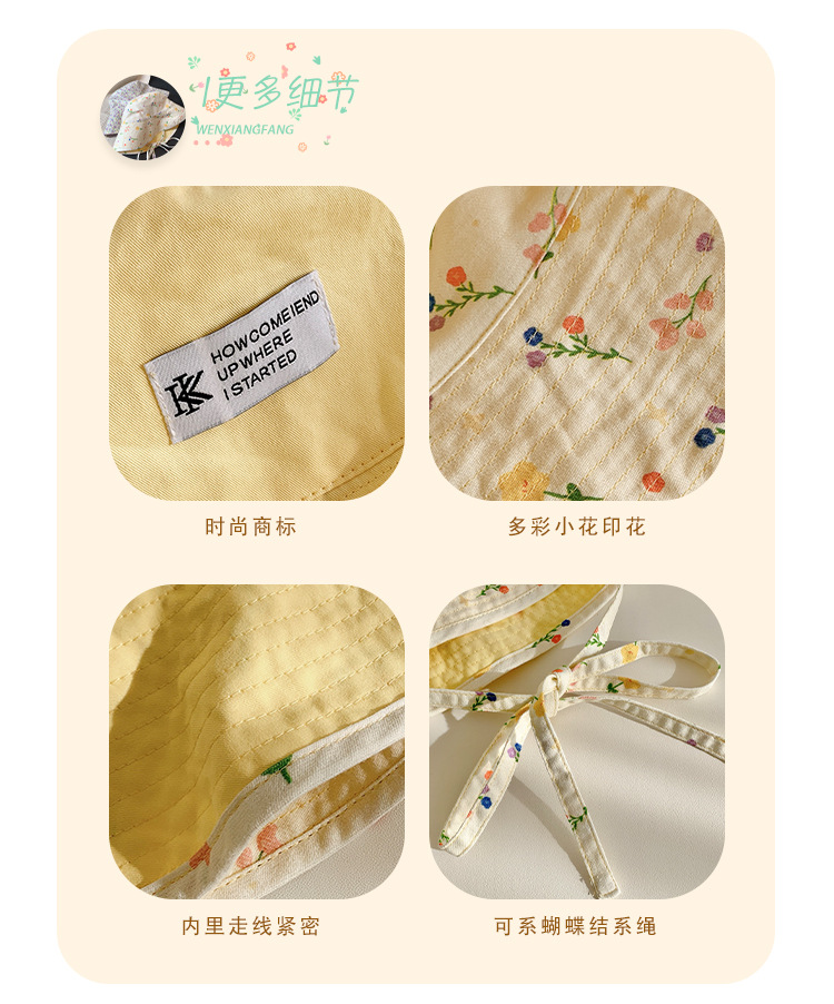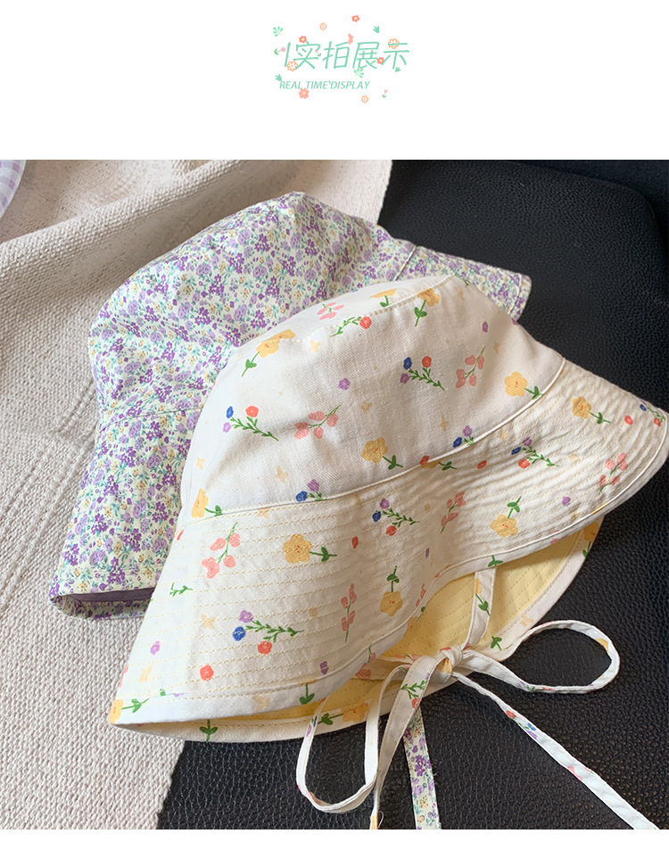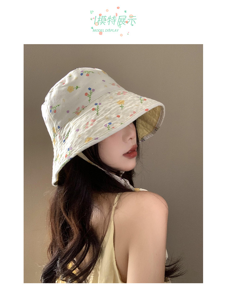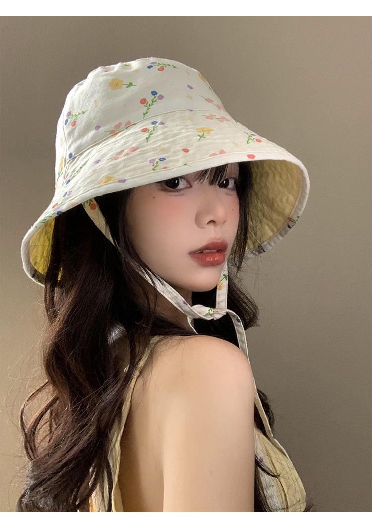 可爱碎花双面渔夫帽女夏季日系大头围水桶盆帽显脸小遮阳防晒帽子