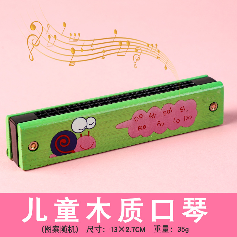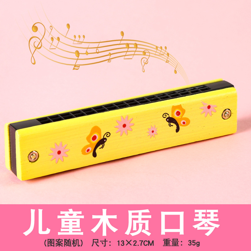 儿童木制彩绘口琴初学者16孔吹奏乐器早教音乐玩具幼儿园口风琴