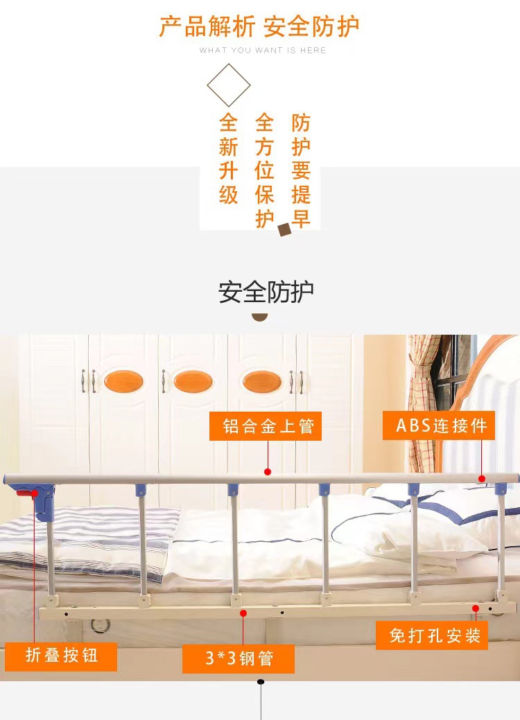 老人防摔床边护栏围栏儿童防掉床单边铝合金可折叠通用多档免打孔
