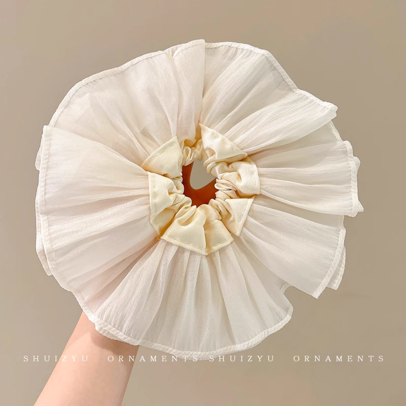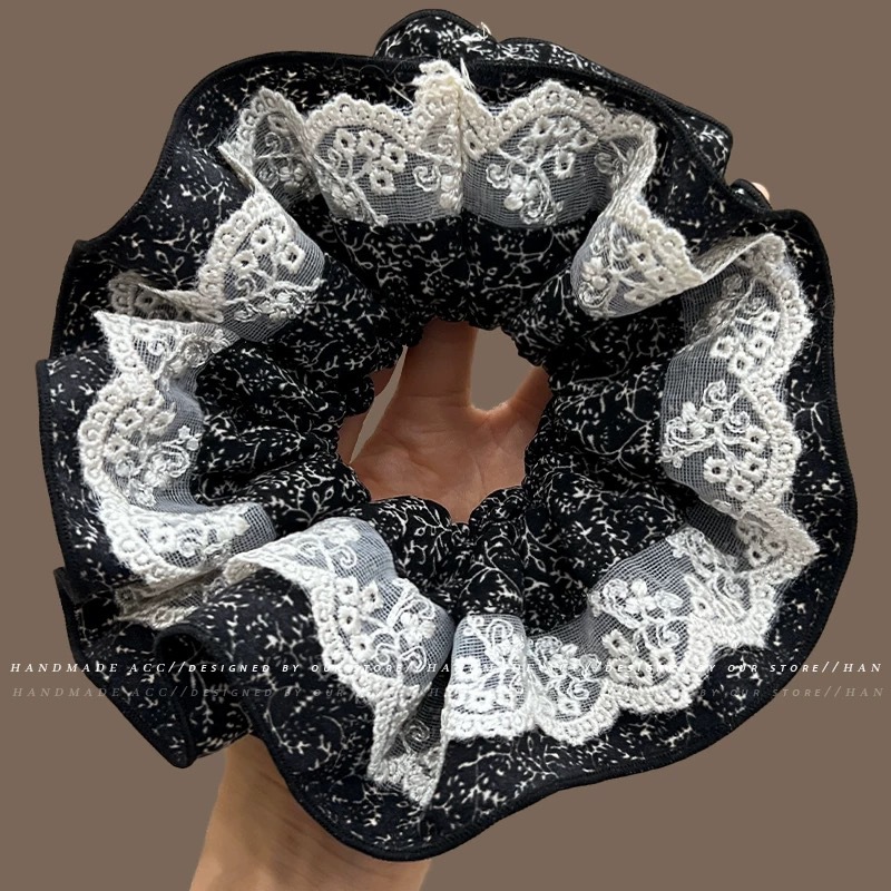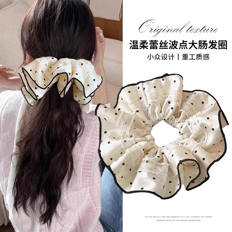 法式蕾丝花边大肠发圈女感超大头花扎马尾发绳百搭不伤发头绳