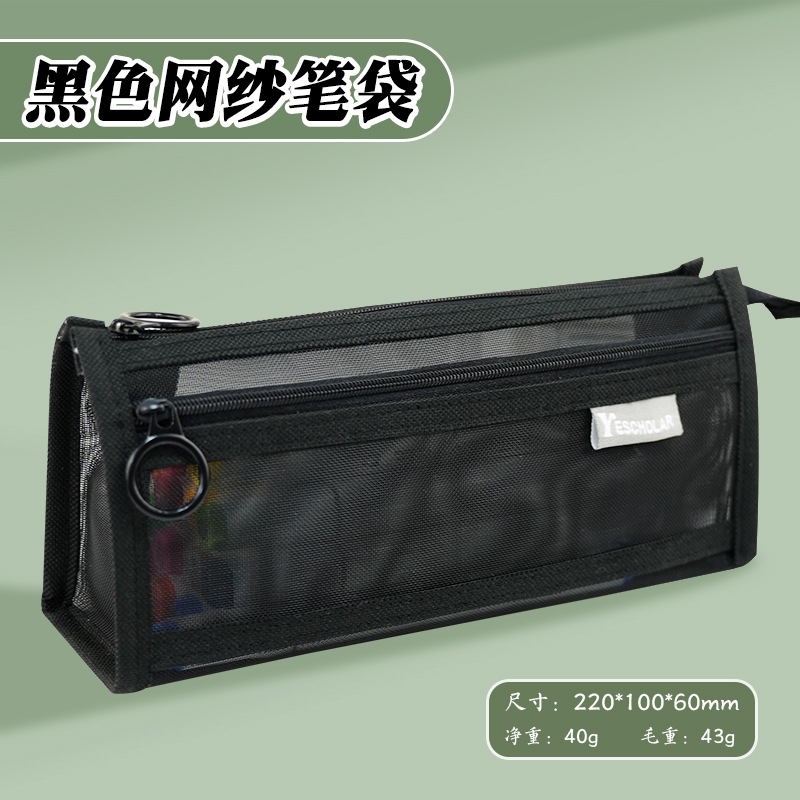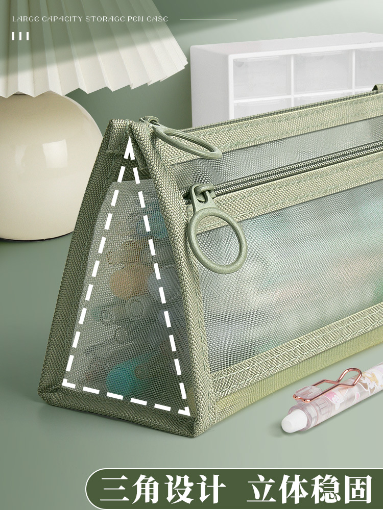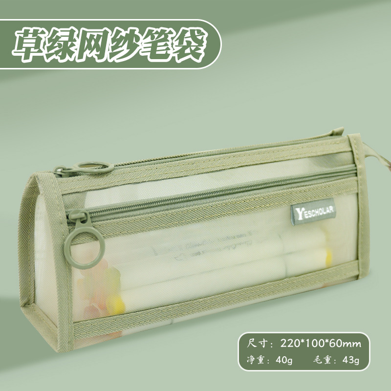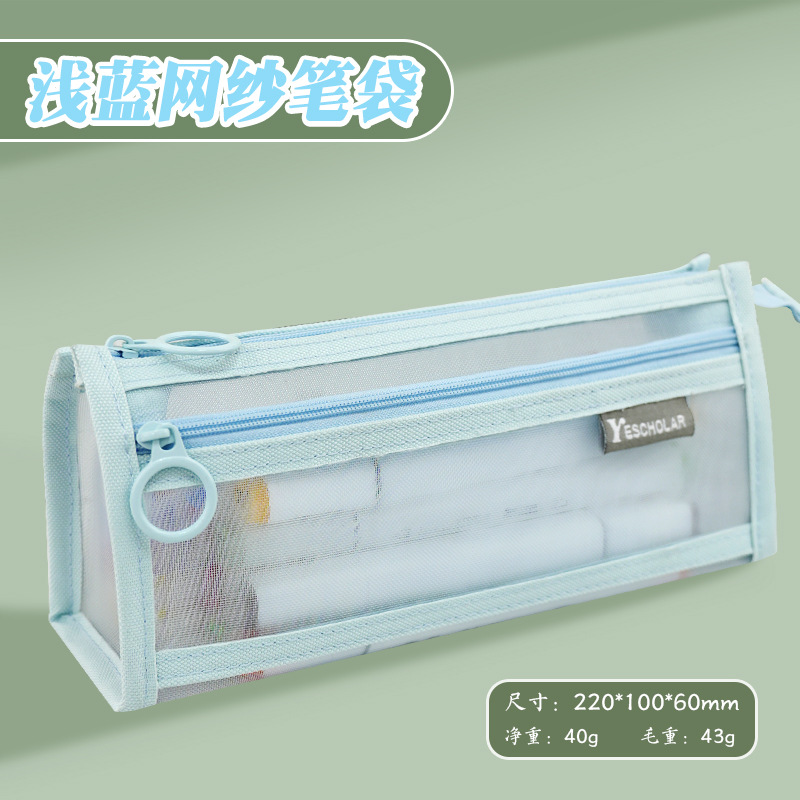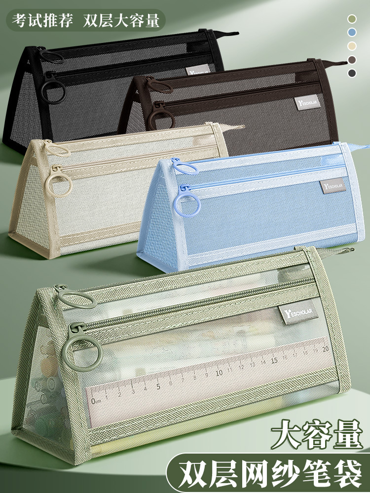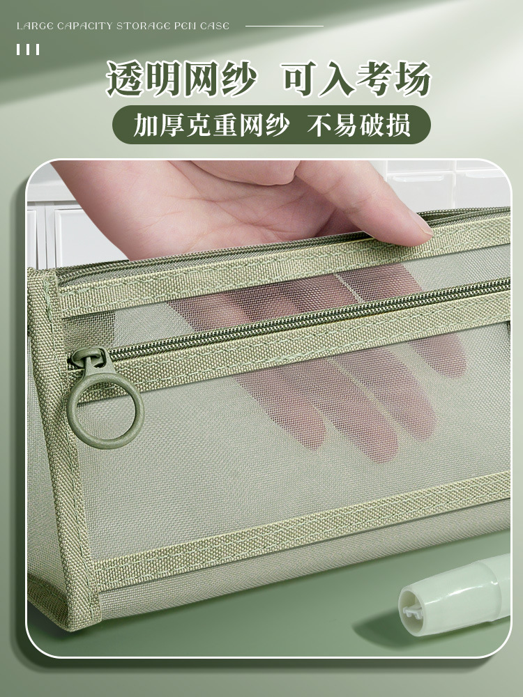 大容量笔袋简约日系透明网纱小学生笔袋考试专业收纳袋日系文具袋