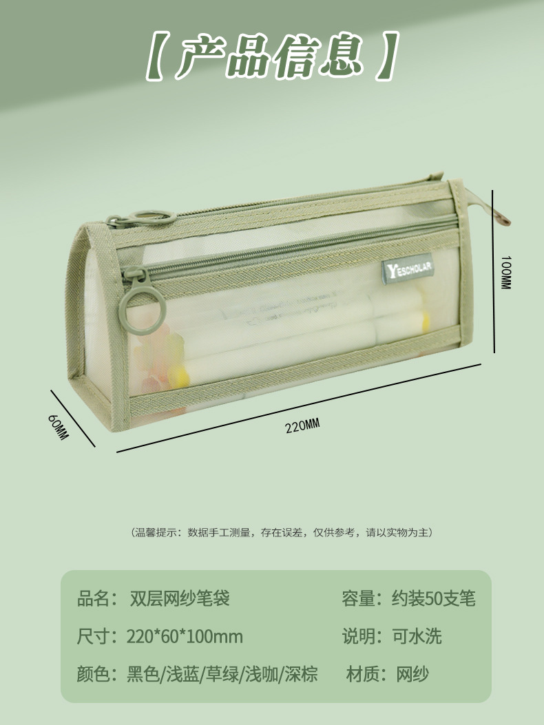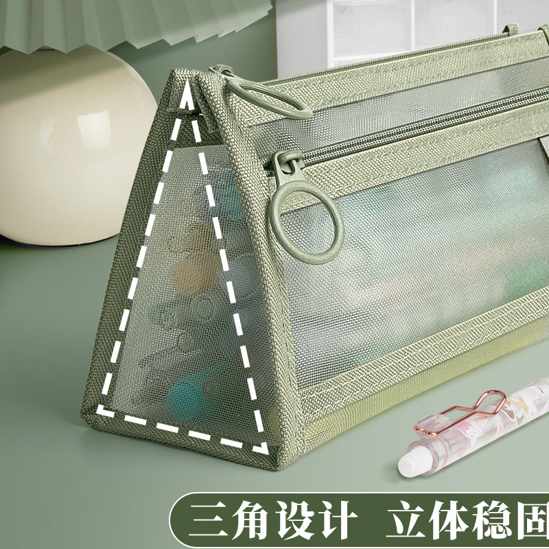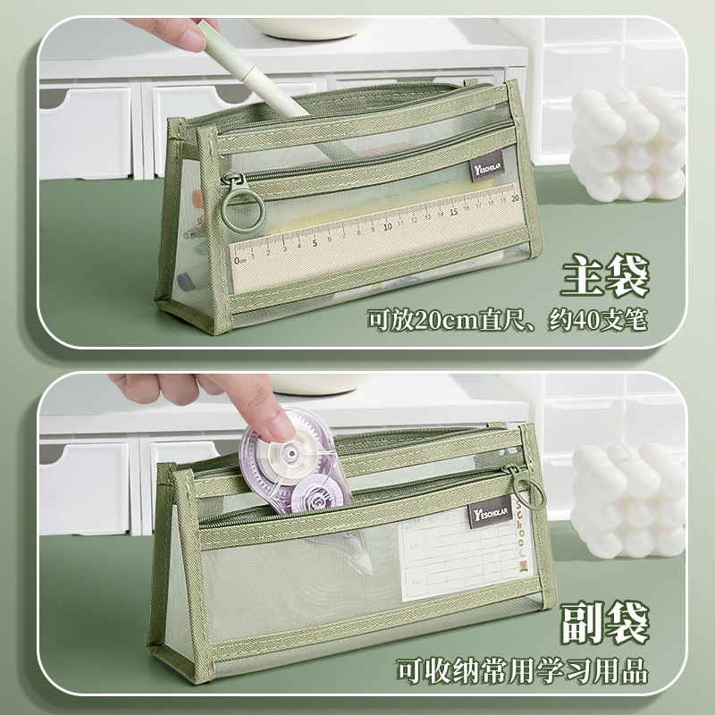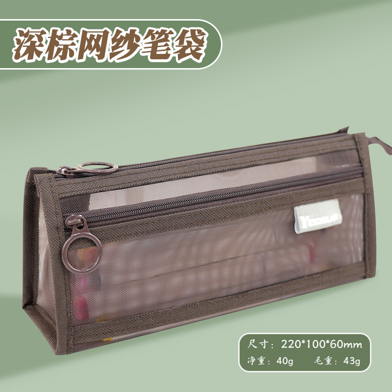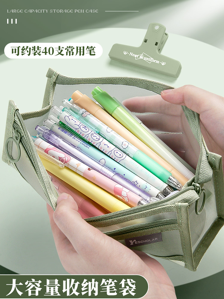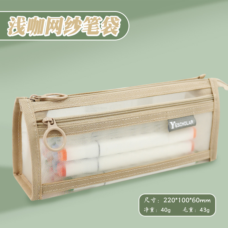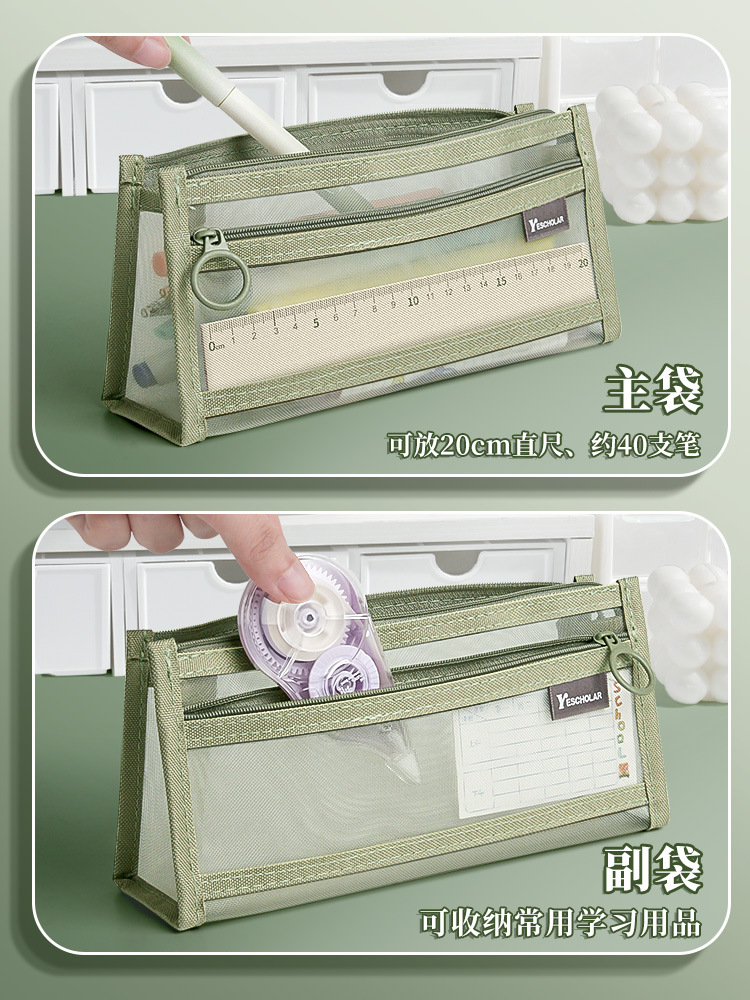 大容量笔袋简约日系透明网纱小学生笔袋考试专业收纳袋日系文具袋