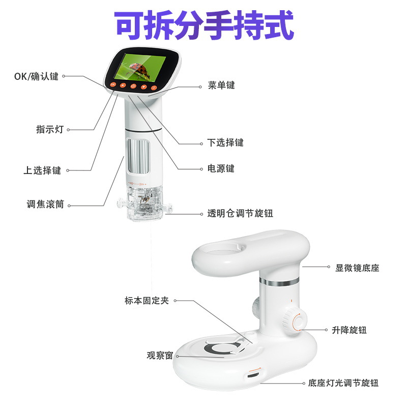 源头光学高清数码电子显微镜专业级放大镜儿童可看细胞初中生专用