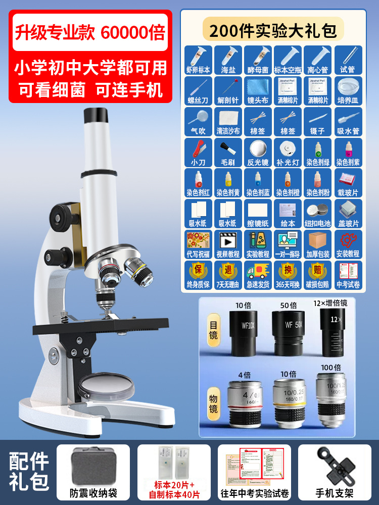 光学显微镜50000生物儿童科学实验中学生10000家用小学生初中生电