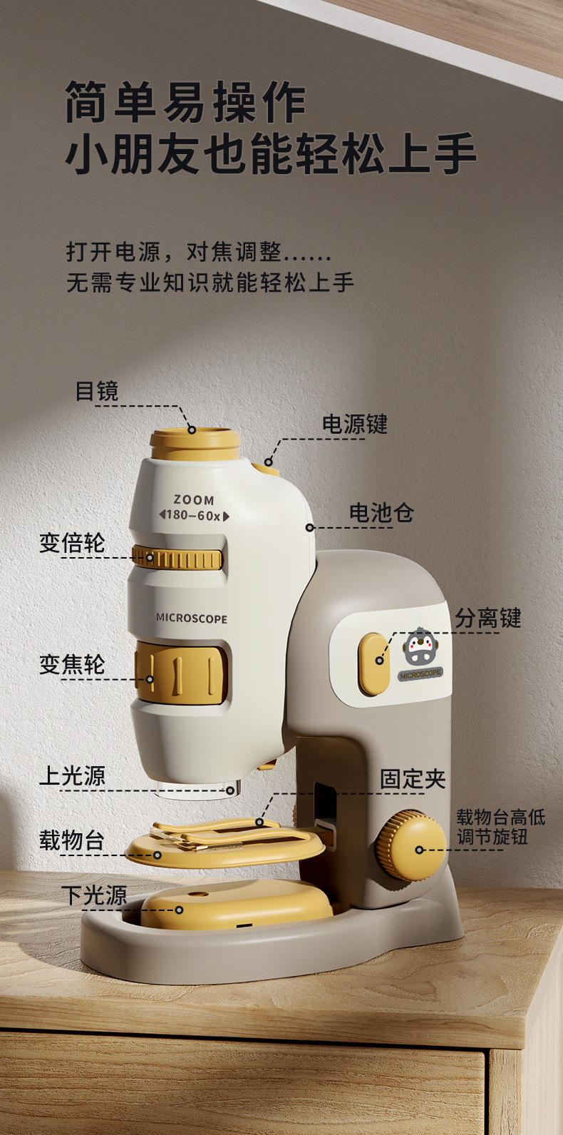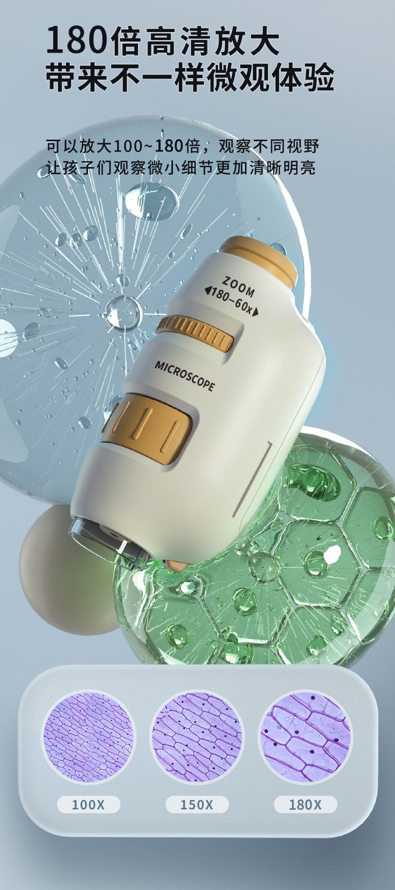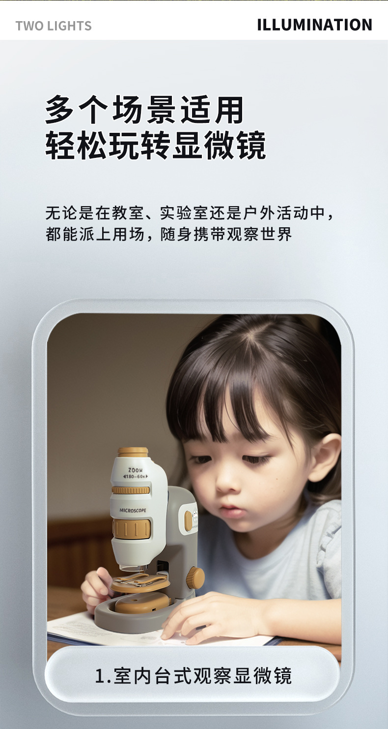 便携式儿童显微镜200倍高清科学实验套装小学生显微镜实验玩具